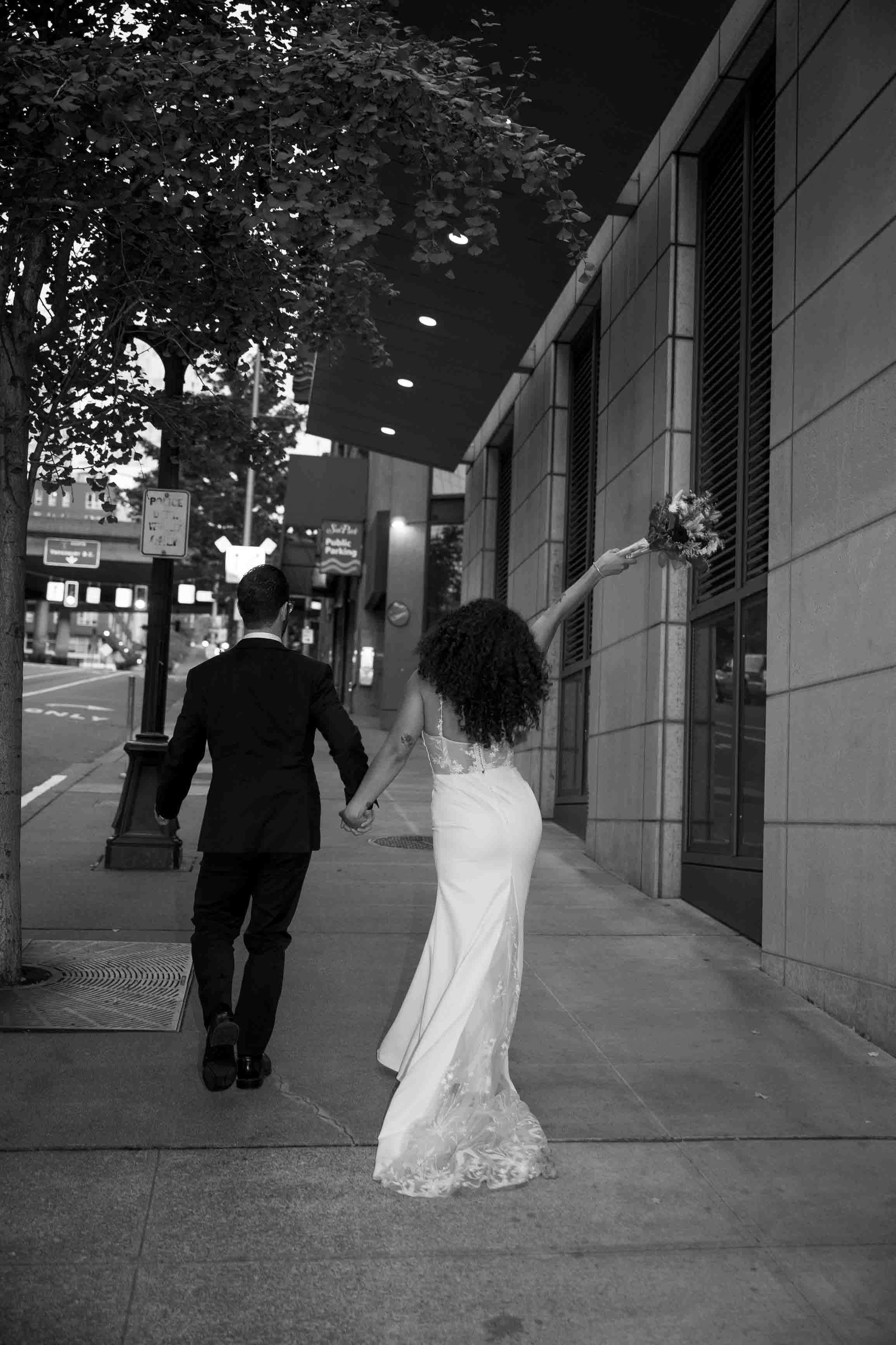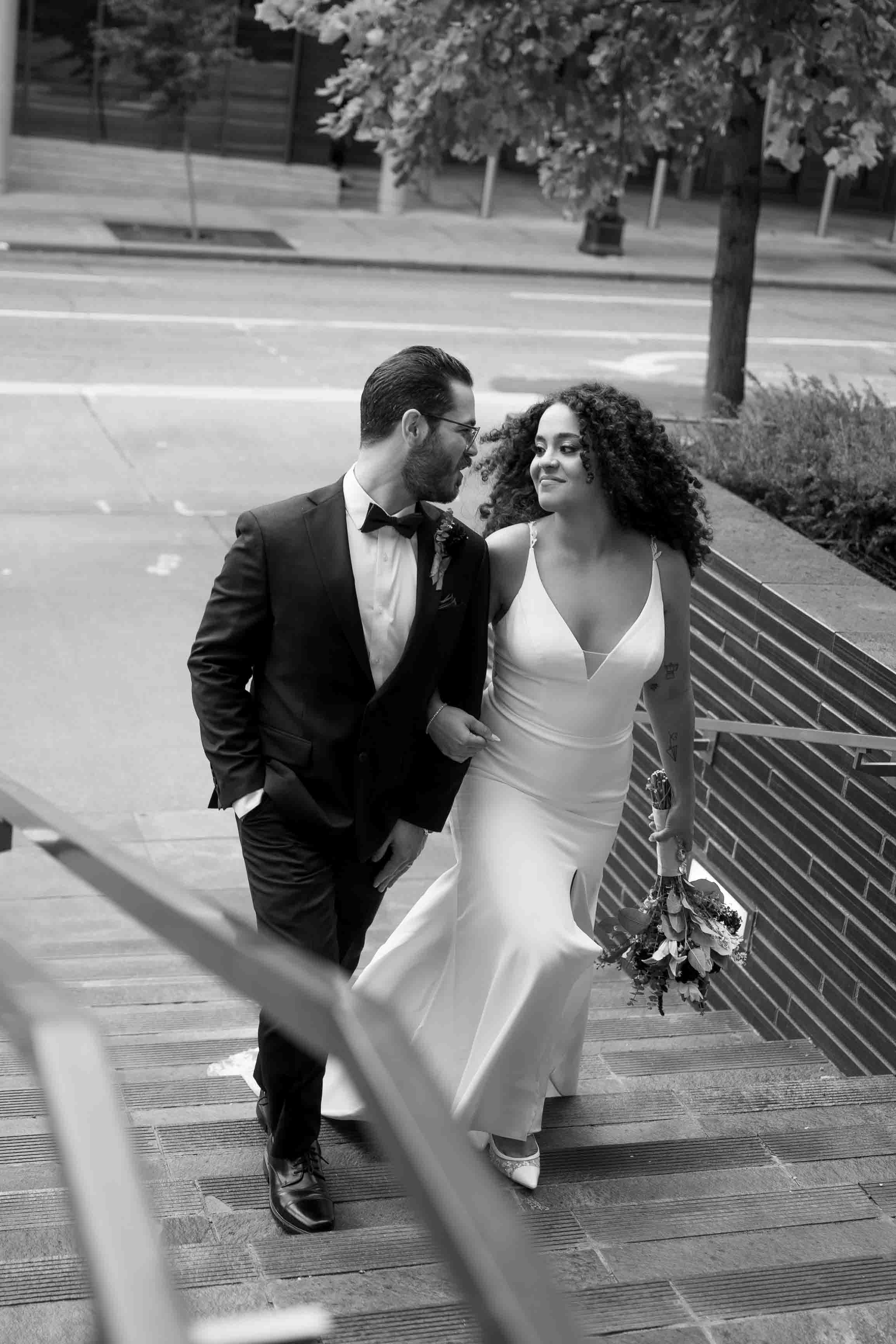 Traveling from New Jersey, Sasha and William chose to elope in Seattle, Washington without ever having visited before. Drawn in by photographs of the Pacific Northwest — misty coastlines, dramatic architecture, and mountain views — they trusted Seattle to deliver something meaningful, intimate, and unforgettable. It absolutely did.