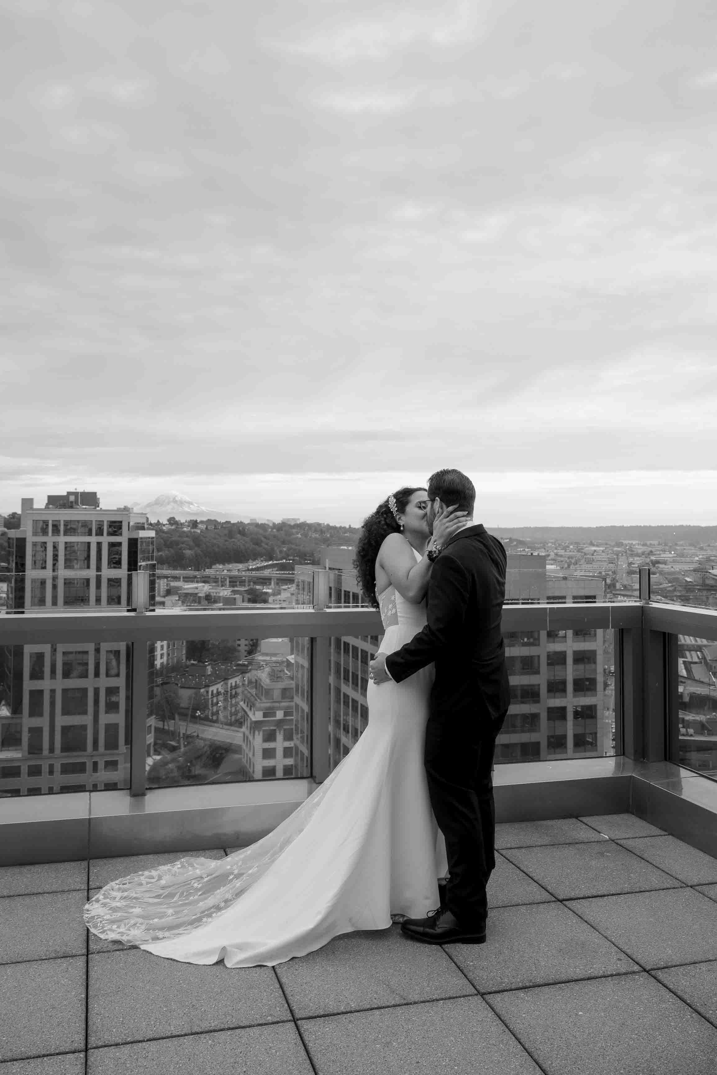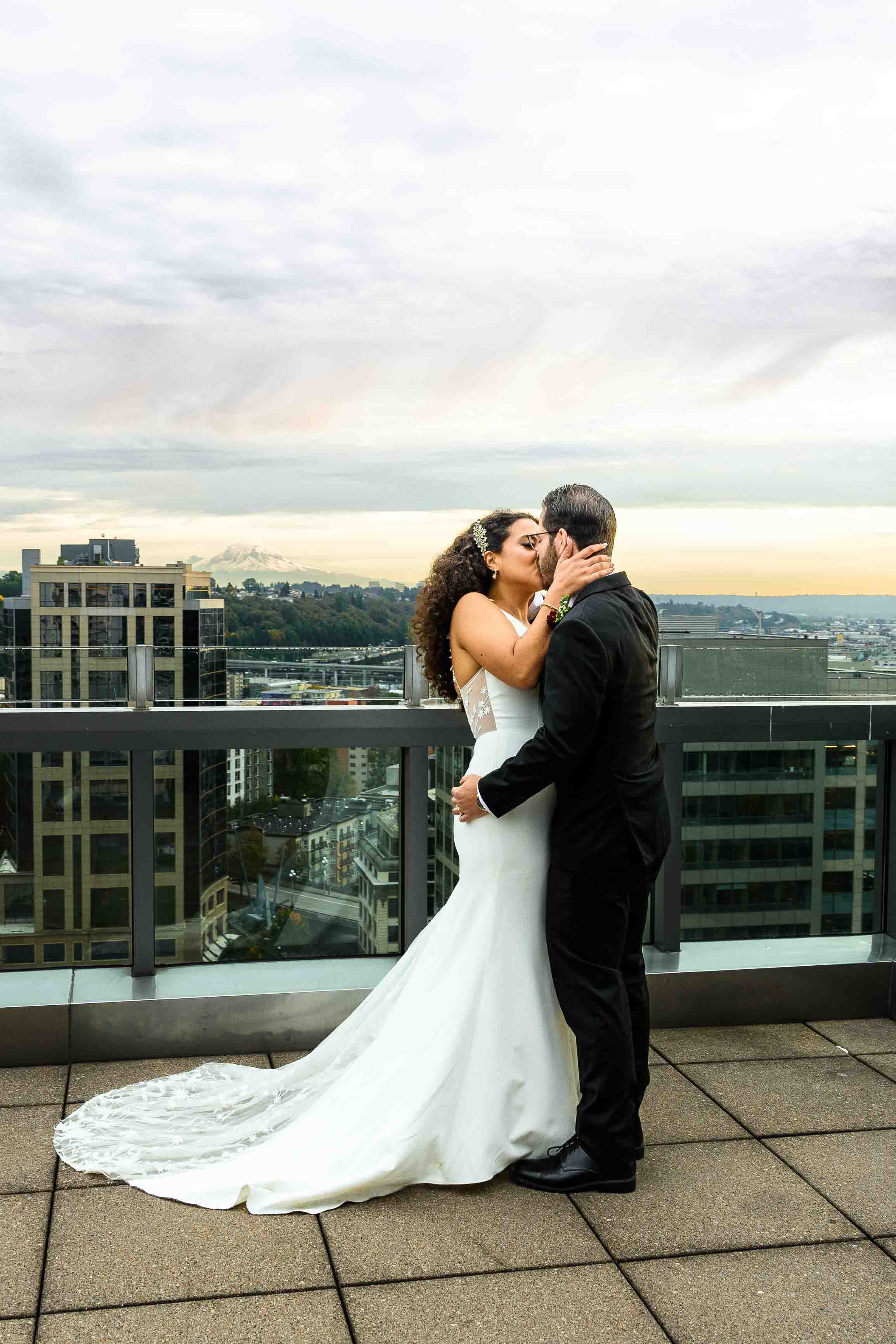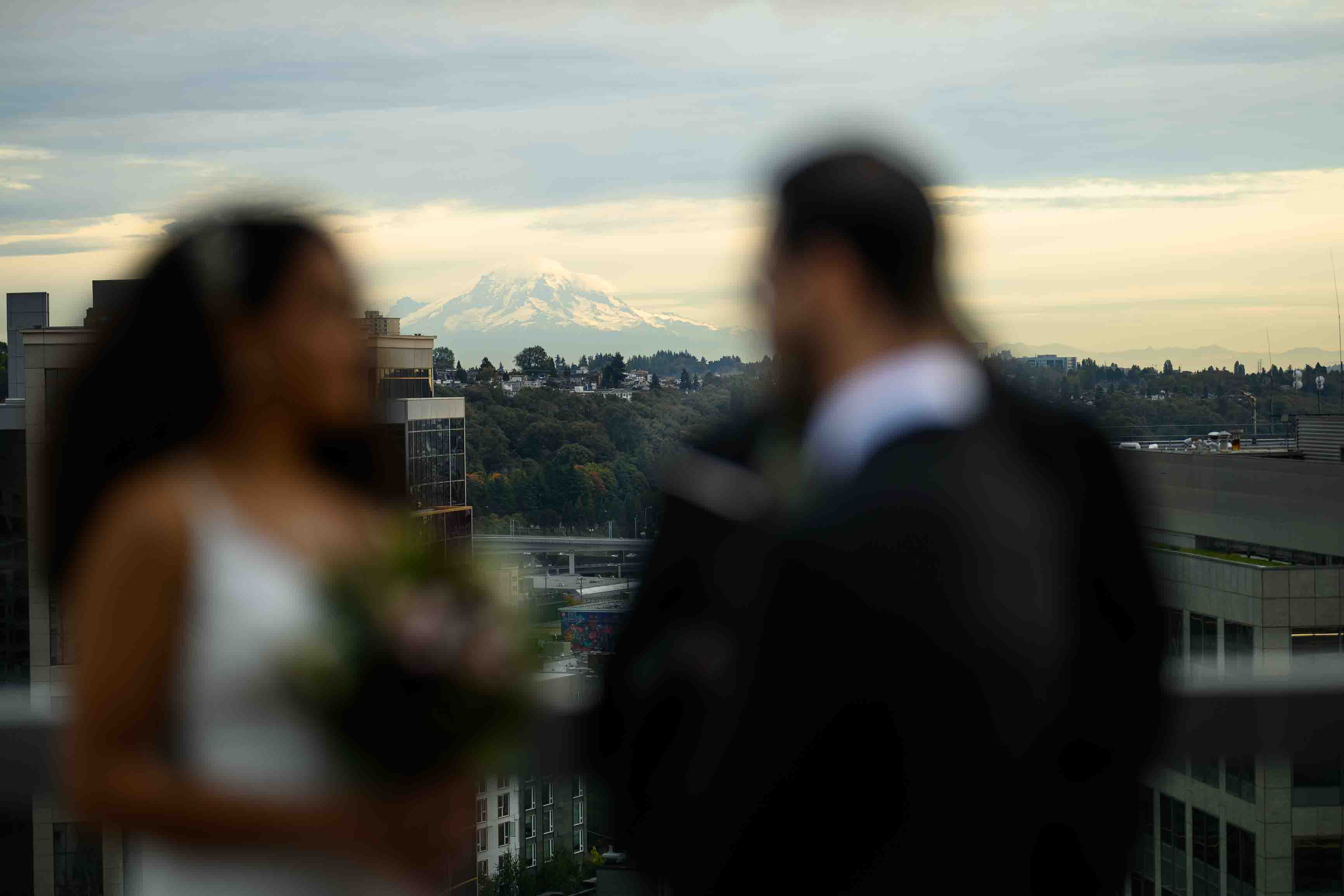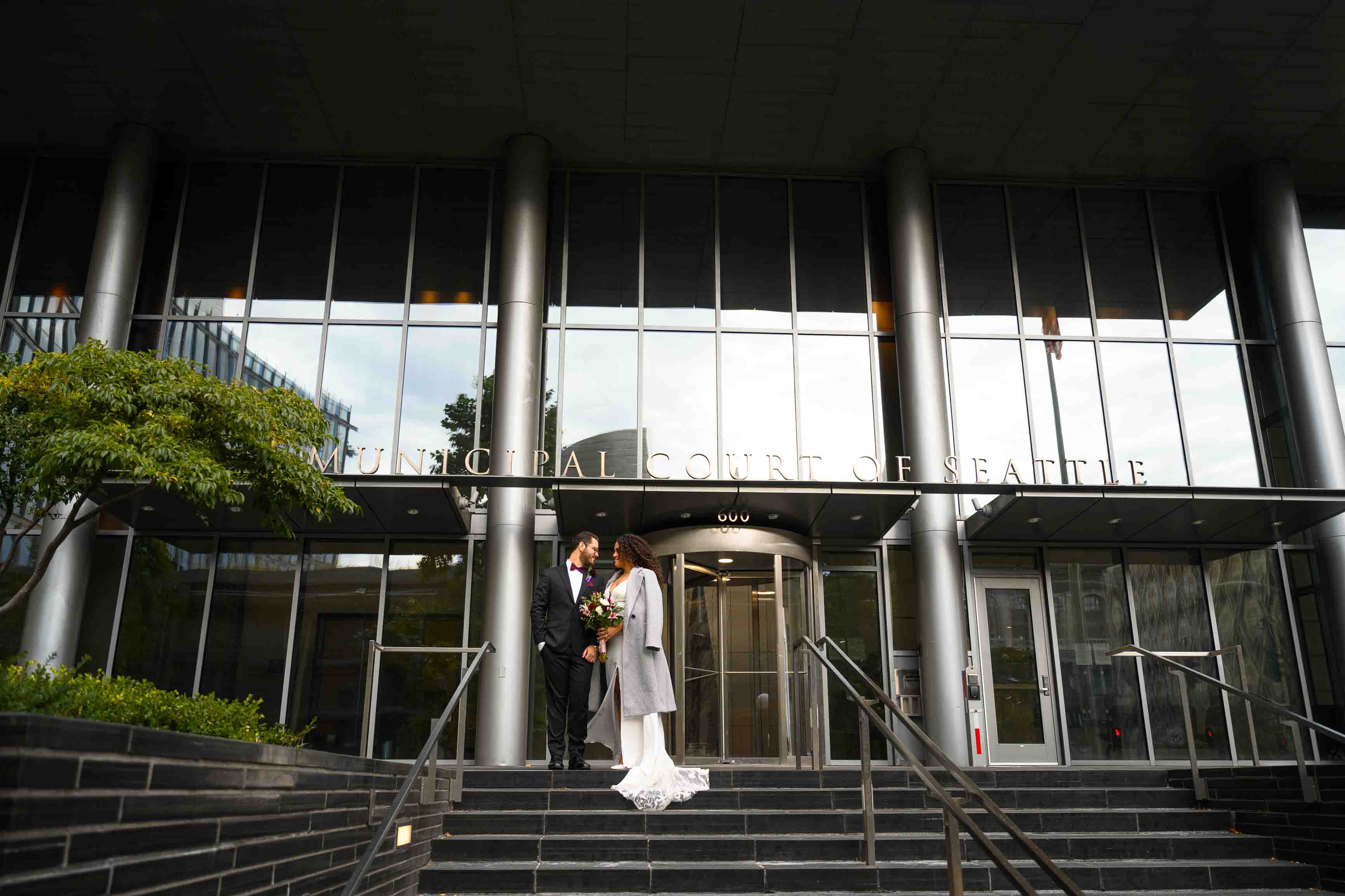 The final stop of the day was the Seattle Municipal Courthouse, where Sasha and William were joined by their immediate family and closest friends for their civil ceremony. The ceremony takes place on the rooftop, offering open city views and, on clear days, a clear view of Mount Rainier in the distance.