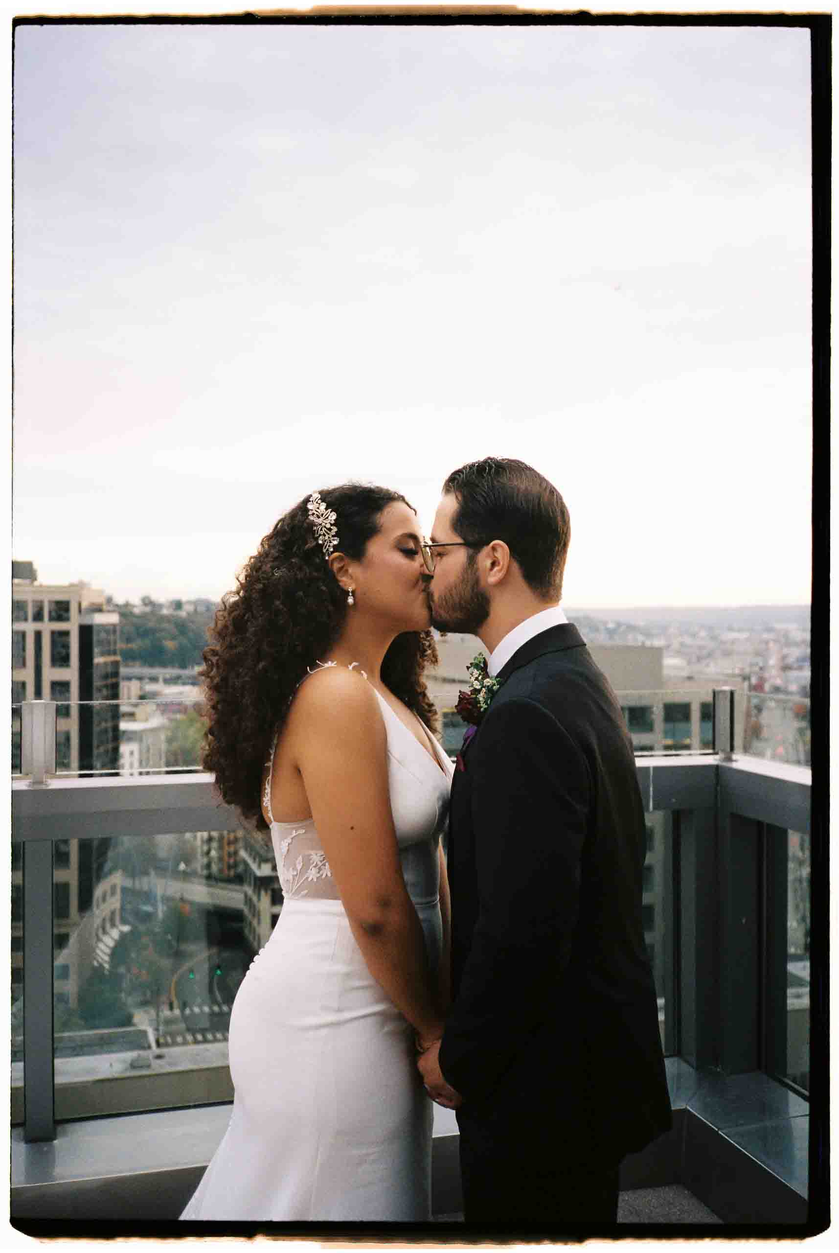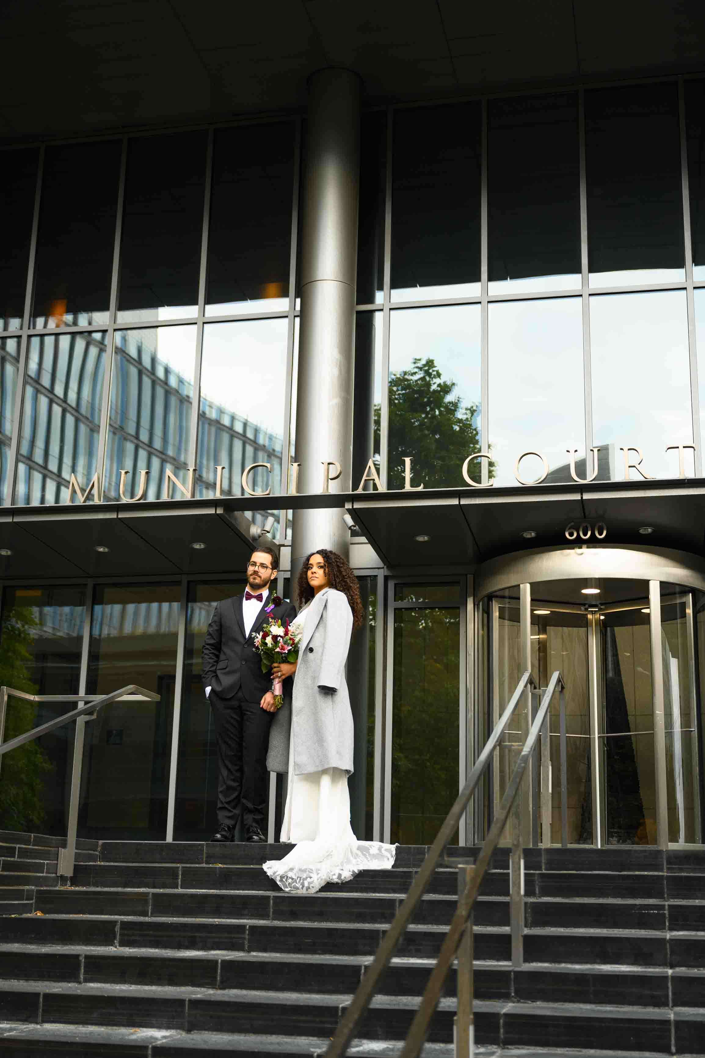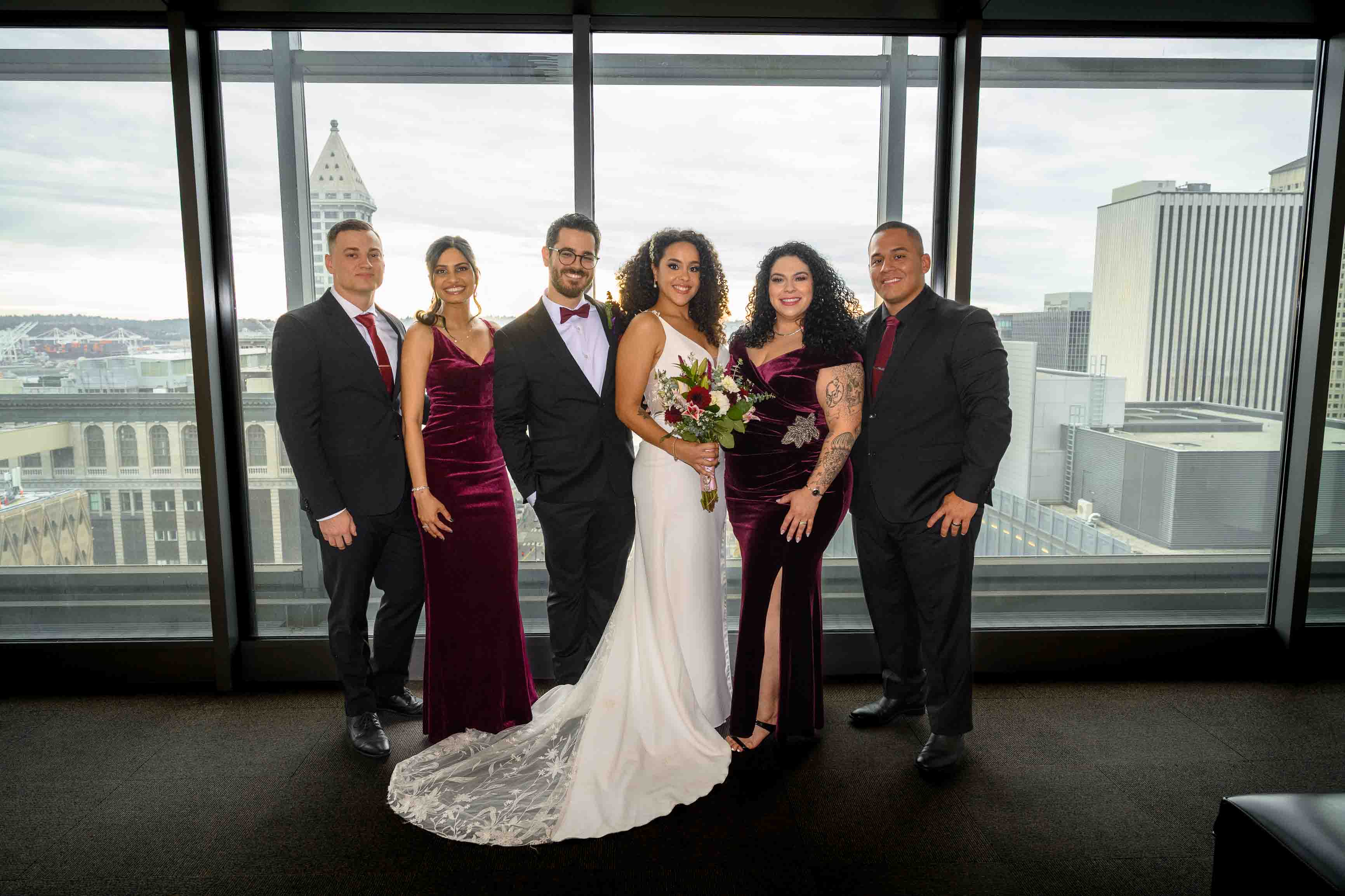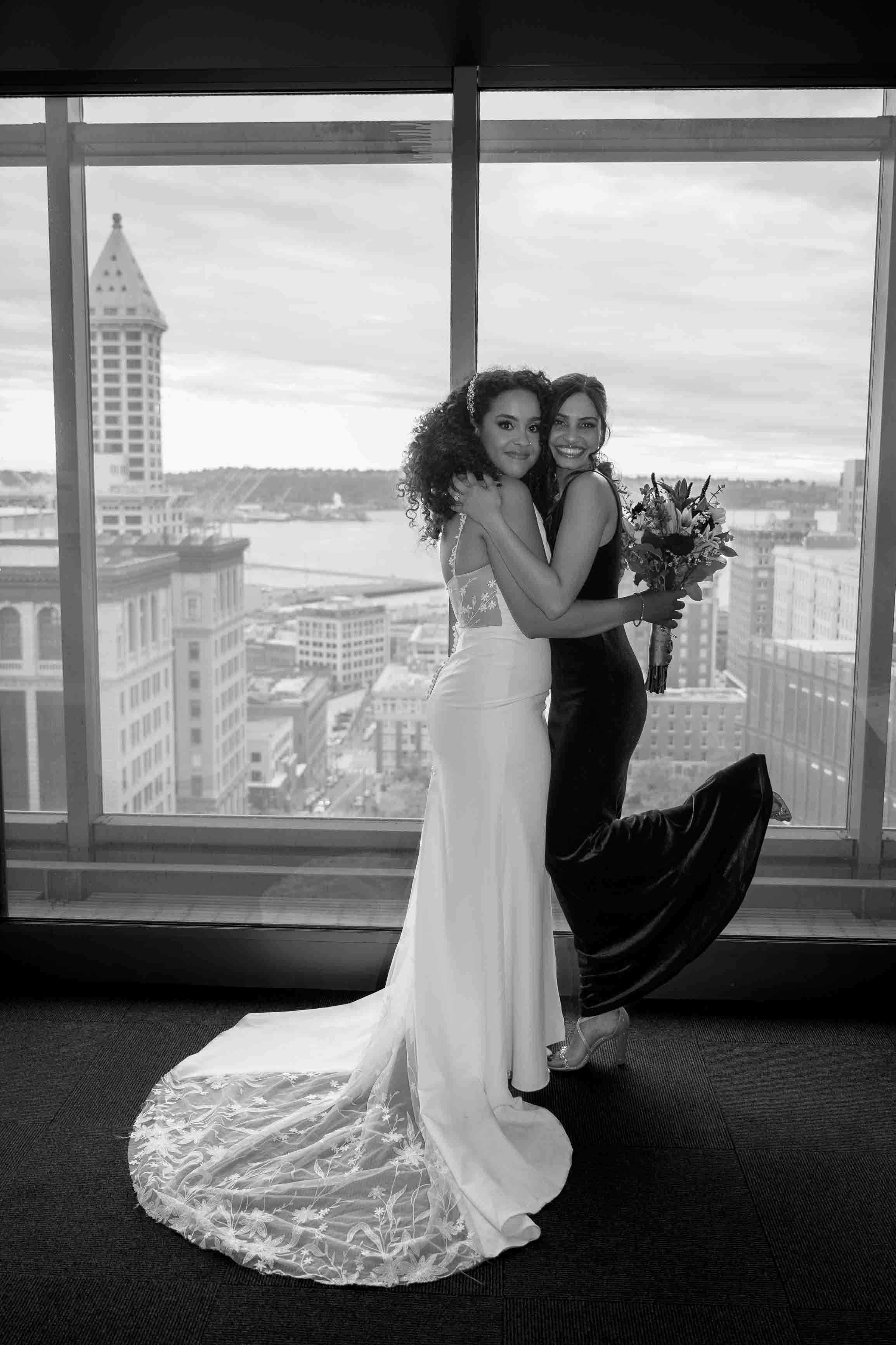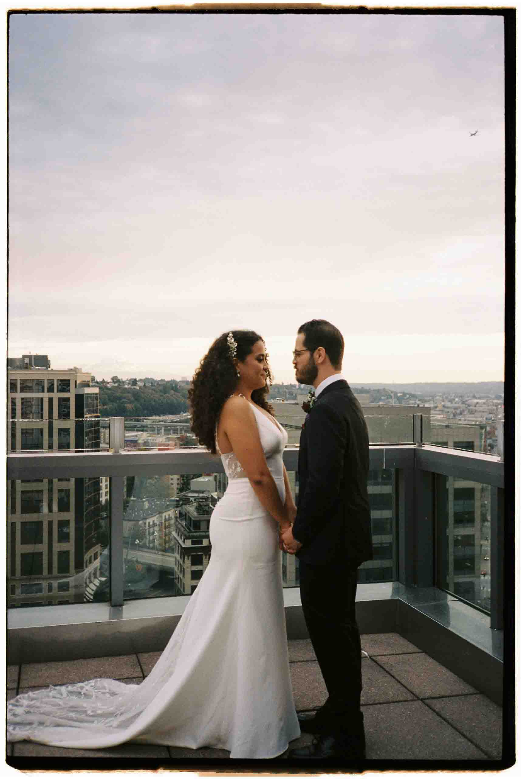 The final stop of the day was the Seattle Municipal Courthouse, where Sasha and William were joined by their immediate family and closest friends for their civil ceremony. The ceremony takes place on the rooftop, offering open city views and, on clear days, a clear view of Mount Rainier in the distance.