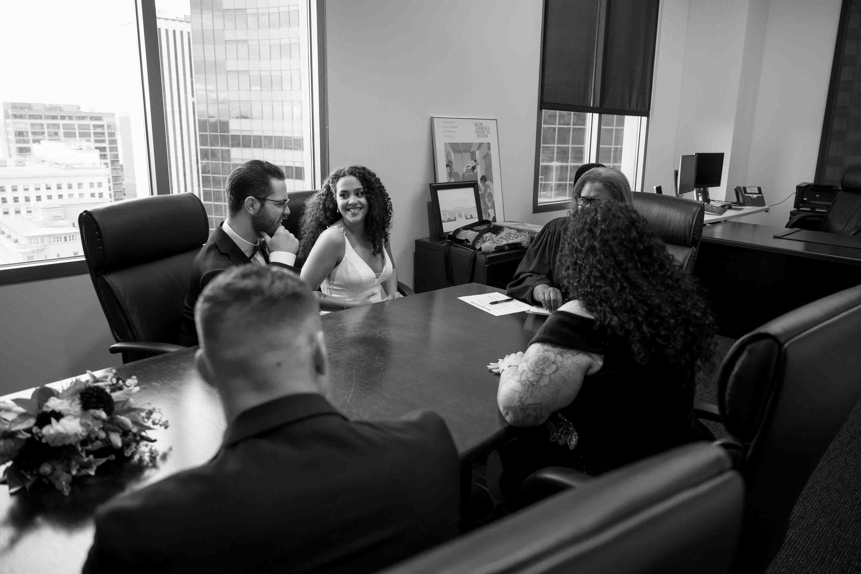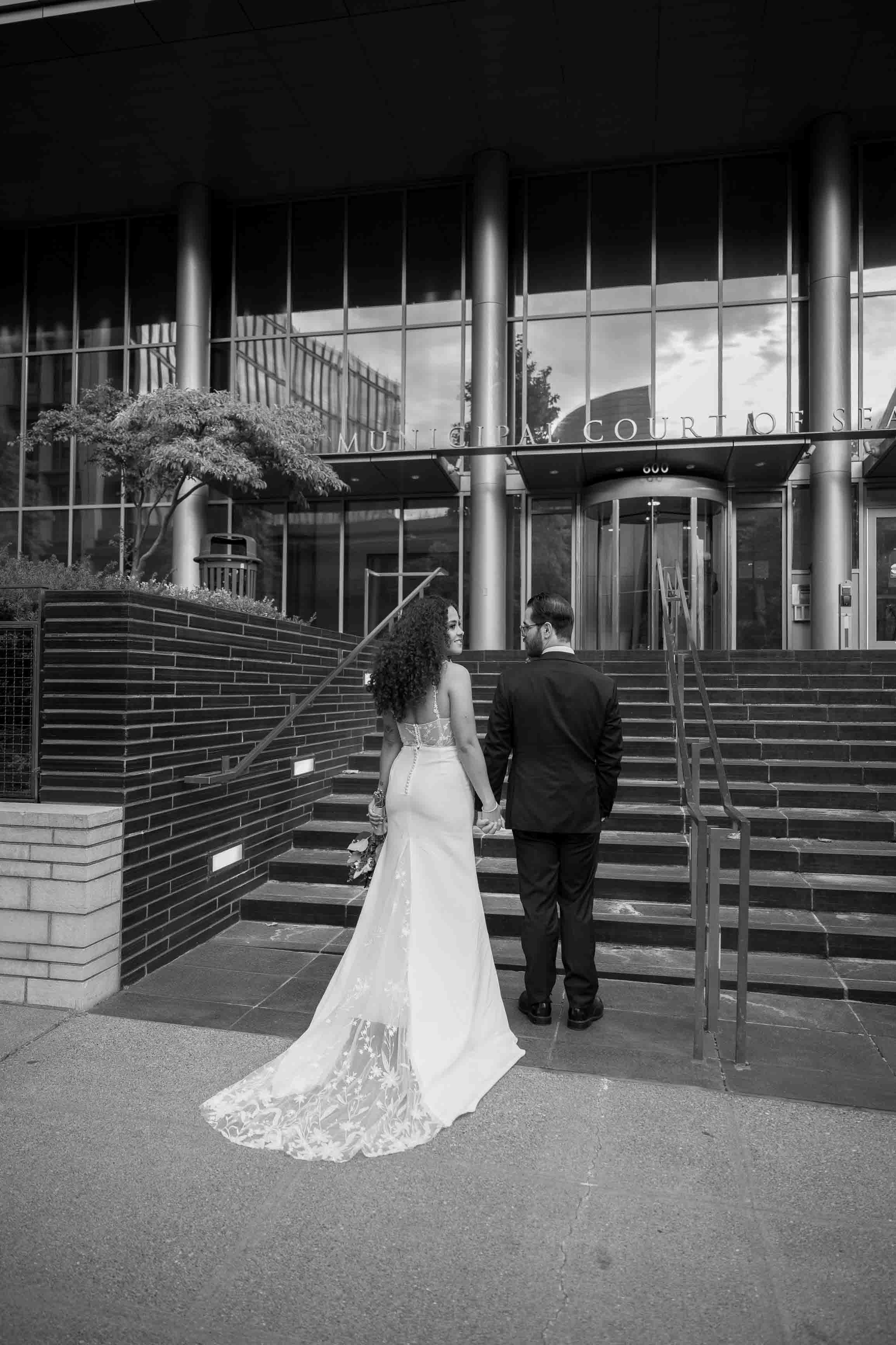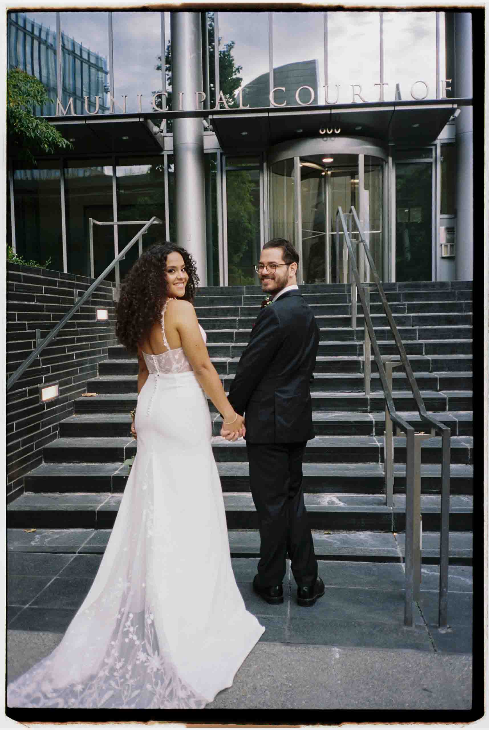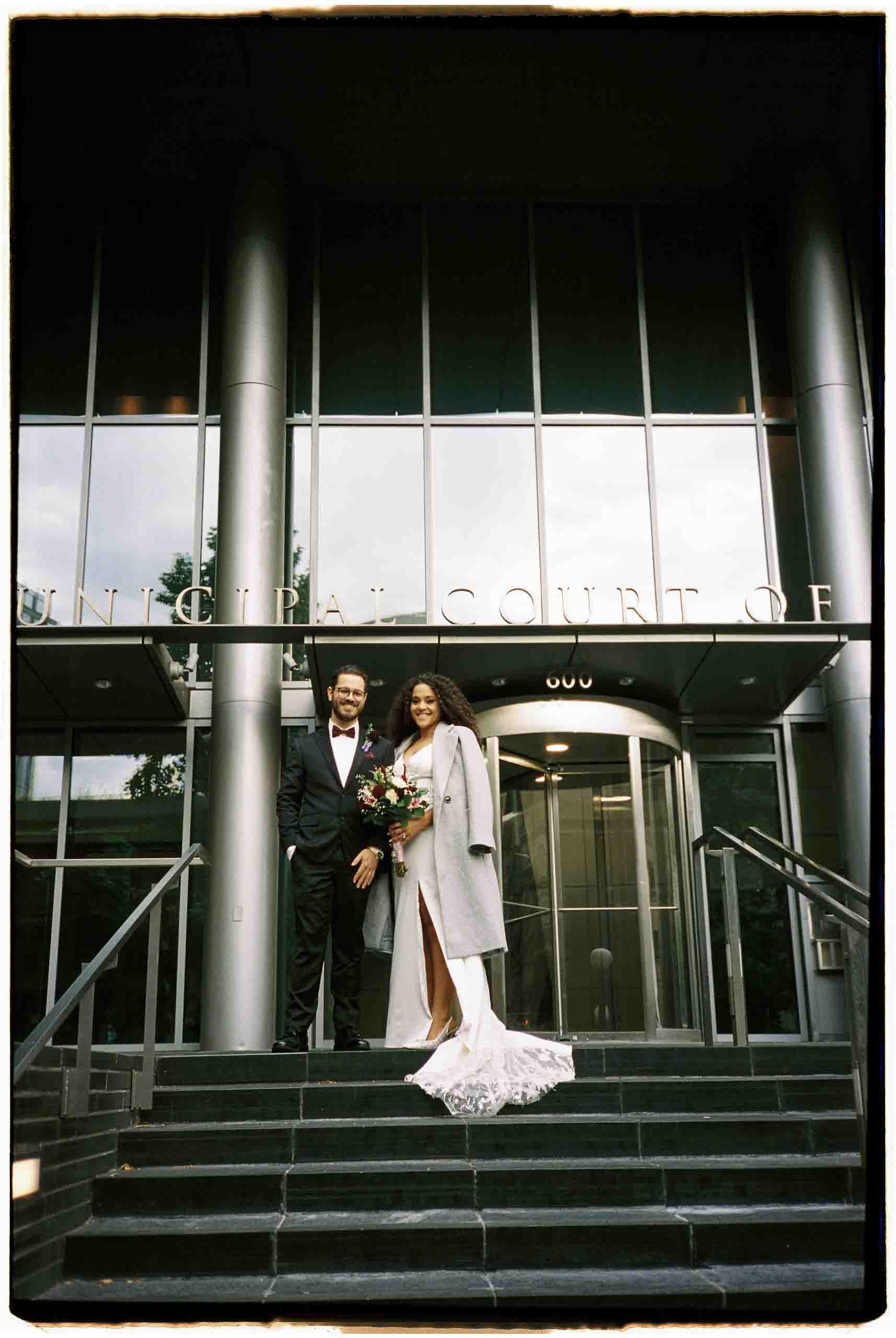 The final stop of the day was the Seattle Municipal Courthouse, where Sasha and William were joined by their immediate family and closest friends for their civil ceremony. The ceremony takes place on the rooftop, offering open city views and, on clear days, a clear view of Mount Rainier in the distance.