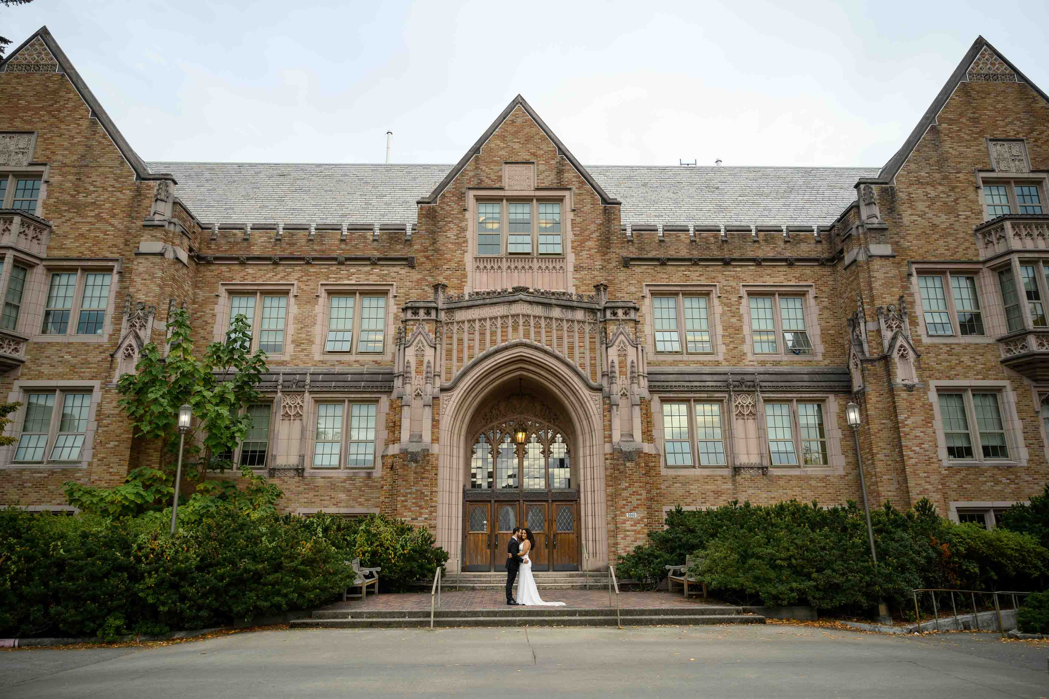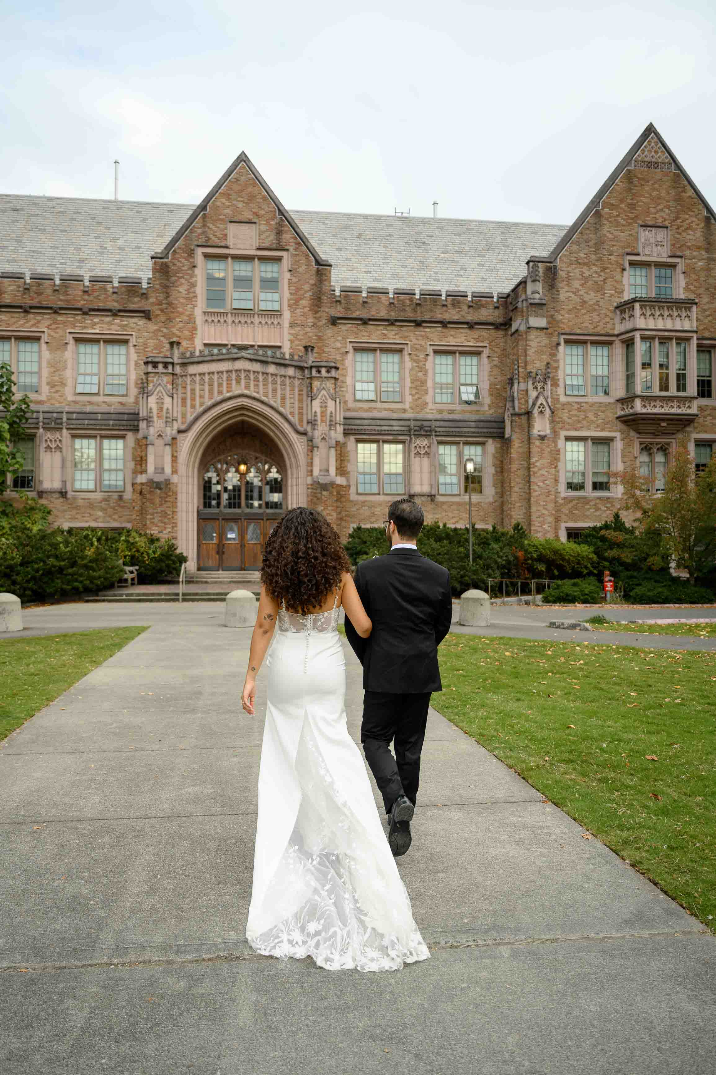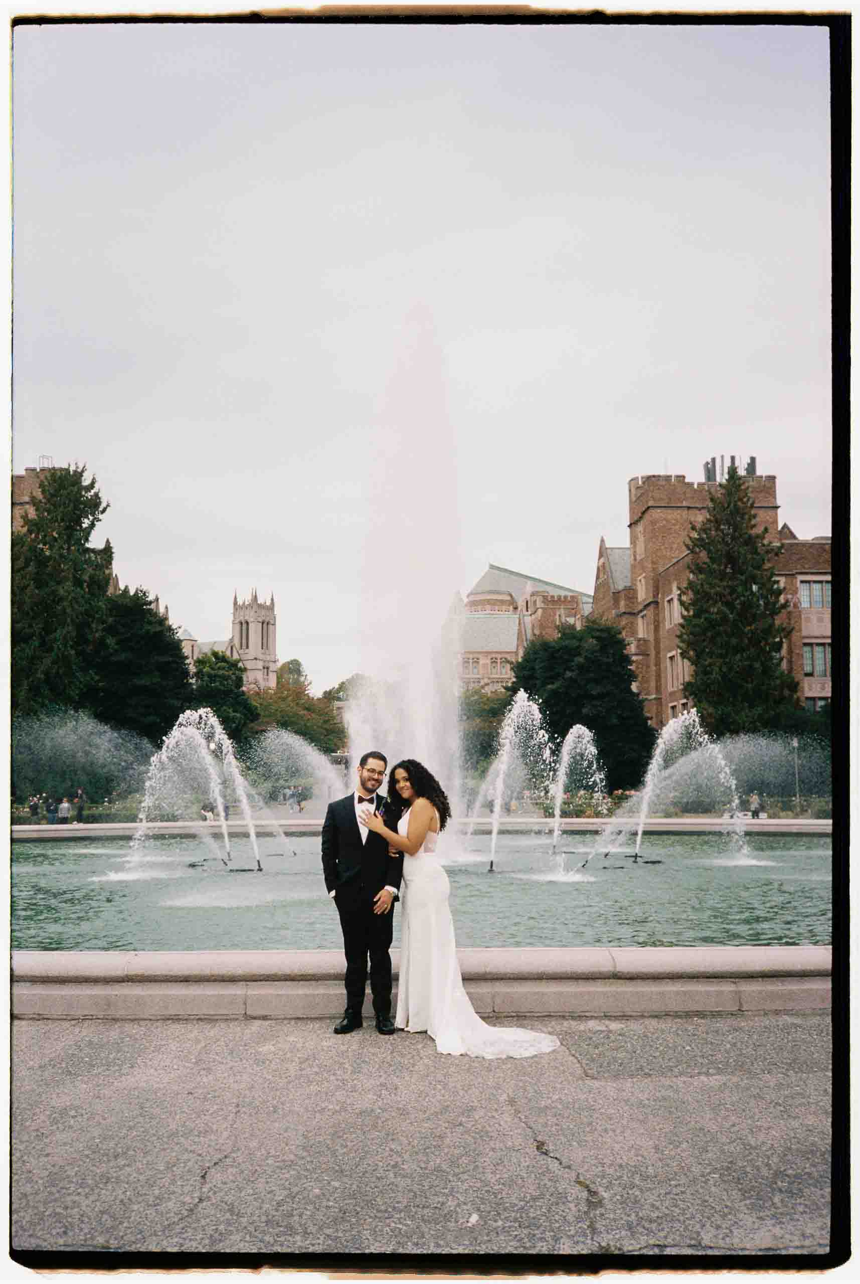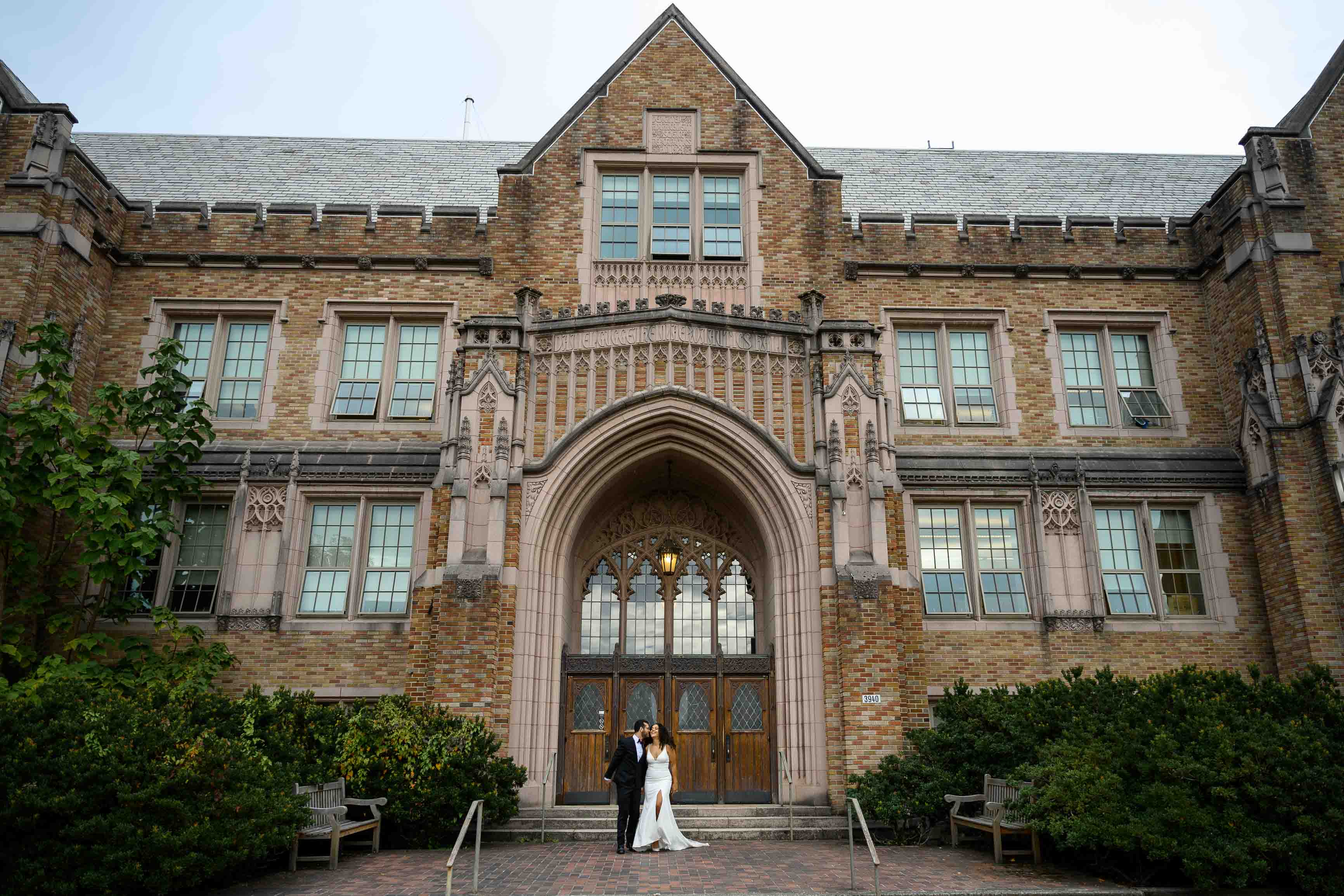 From there, we headed to the University of Washington campus for portraits. The shift from the beach to the architecture was seamless and added so much variety to their gallery. The campus offers a mix of historic buildings, quiet walkways, and unique vantage points that feel elevated without being formal.