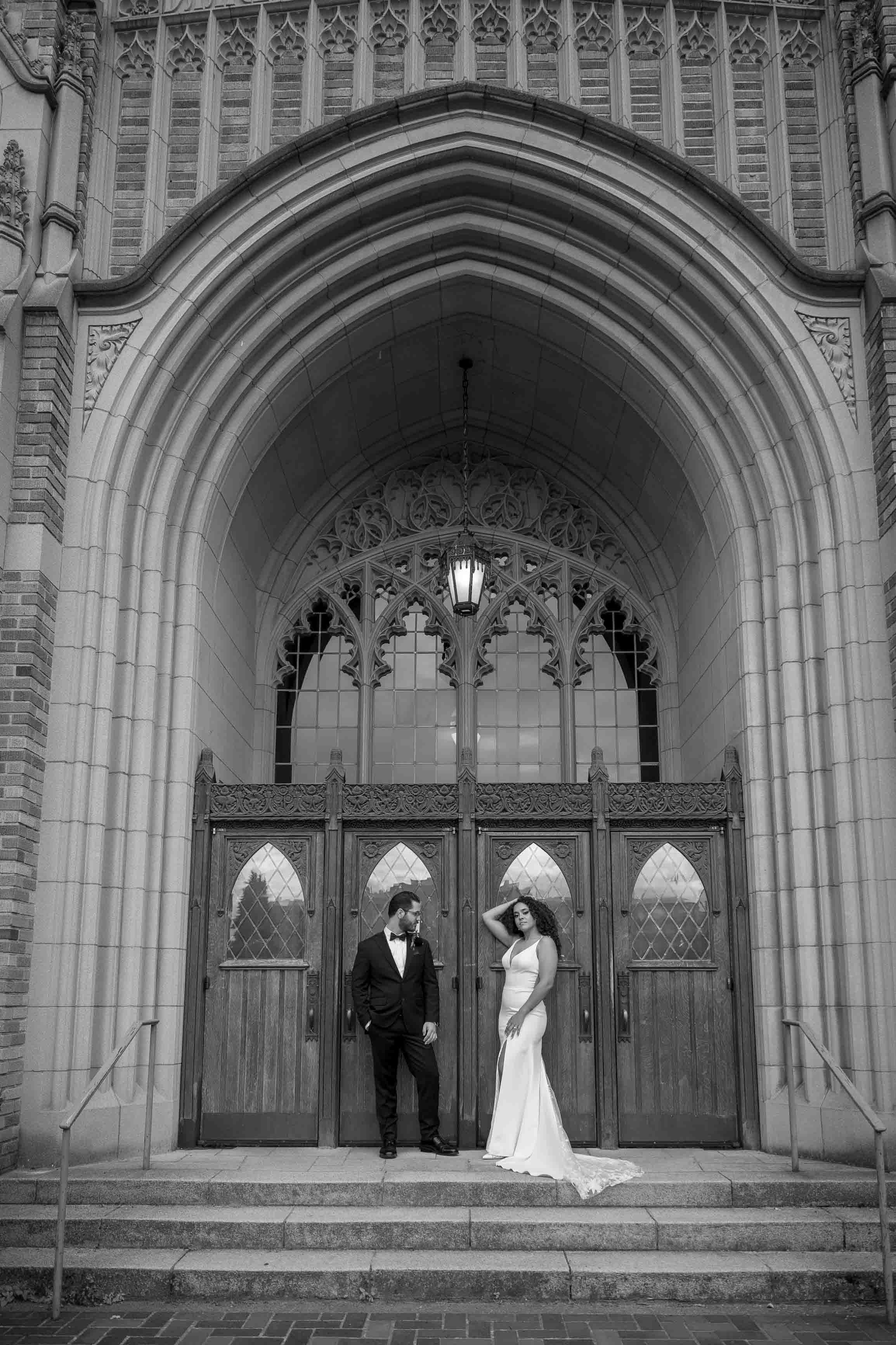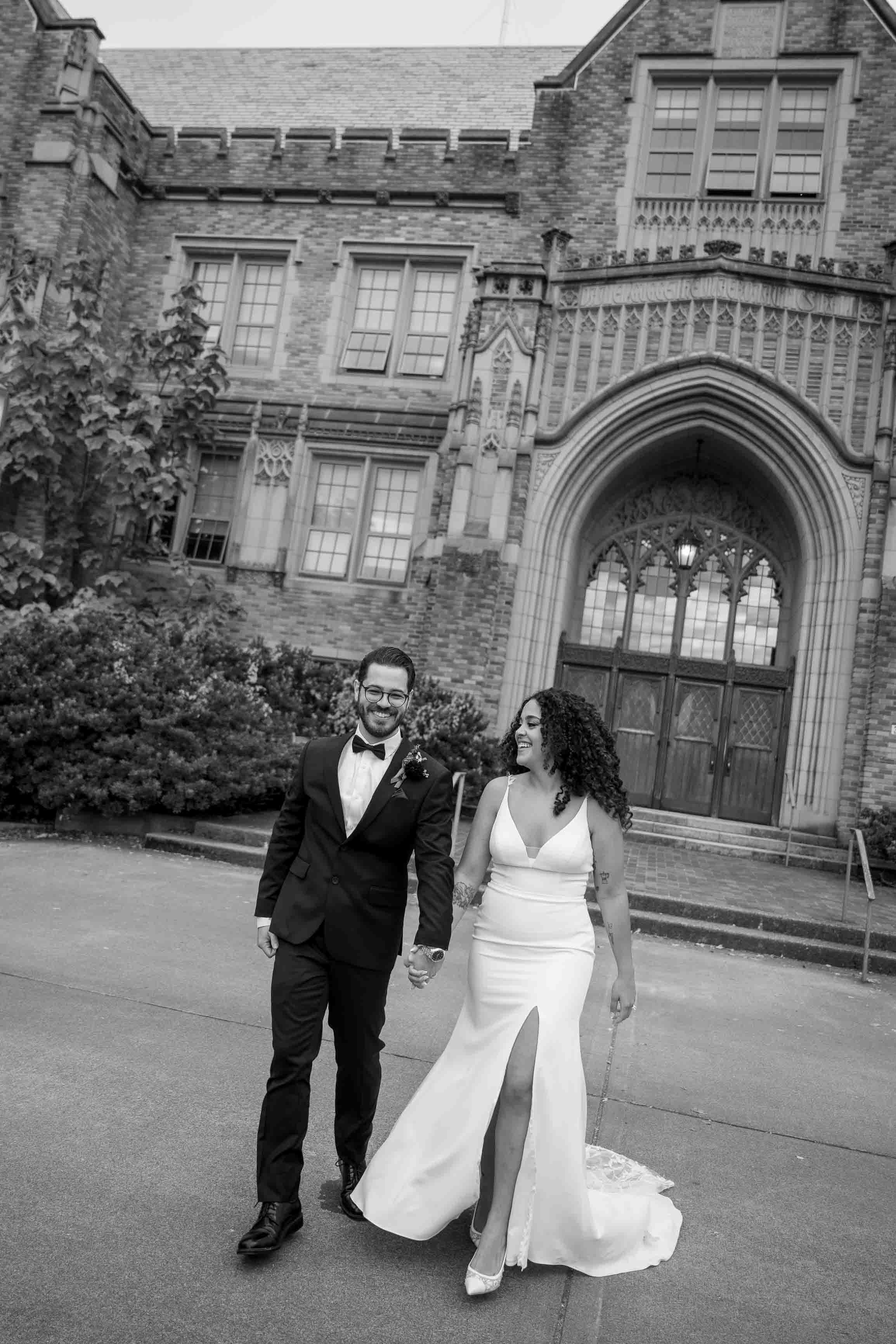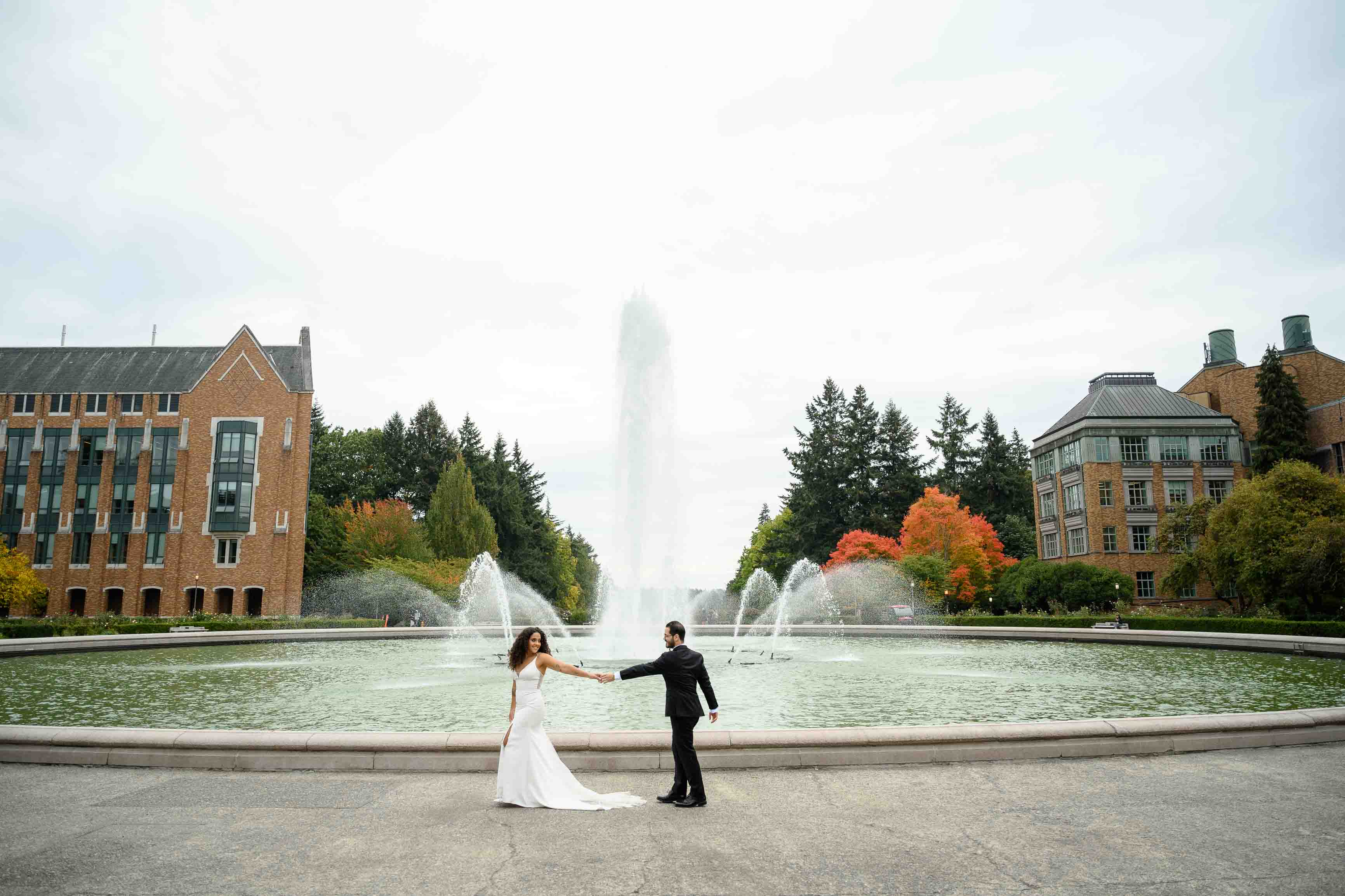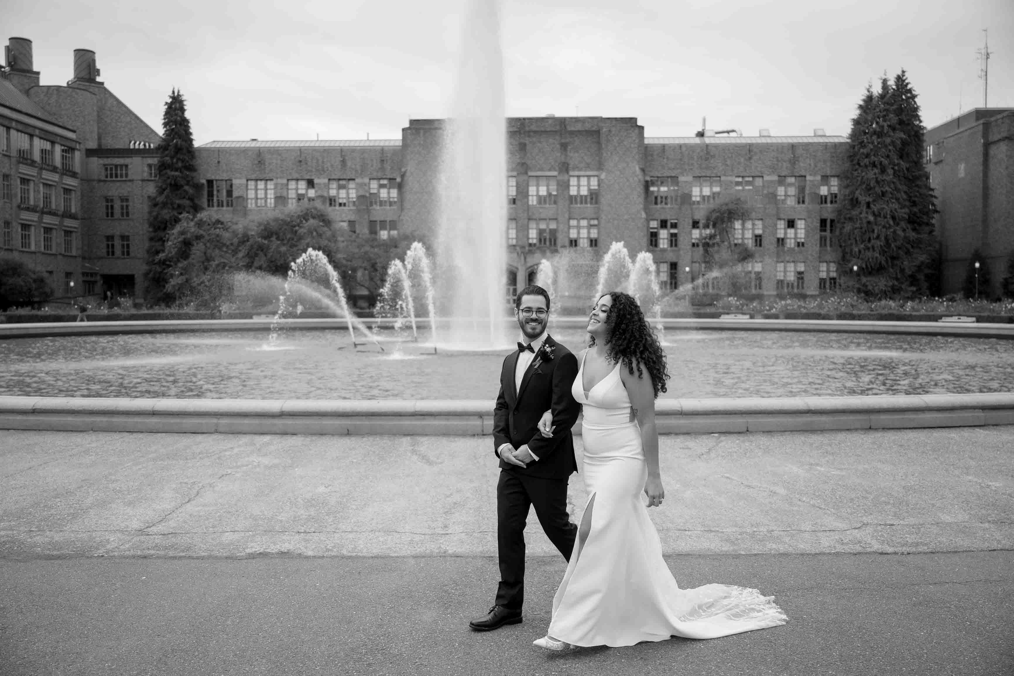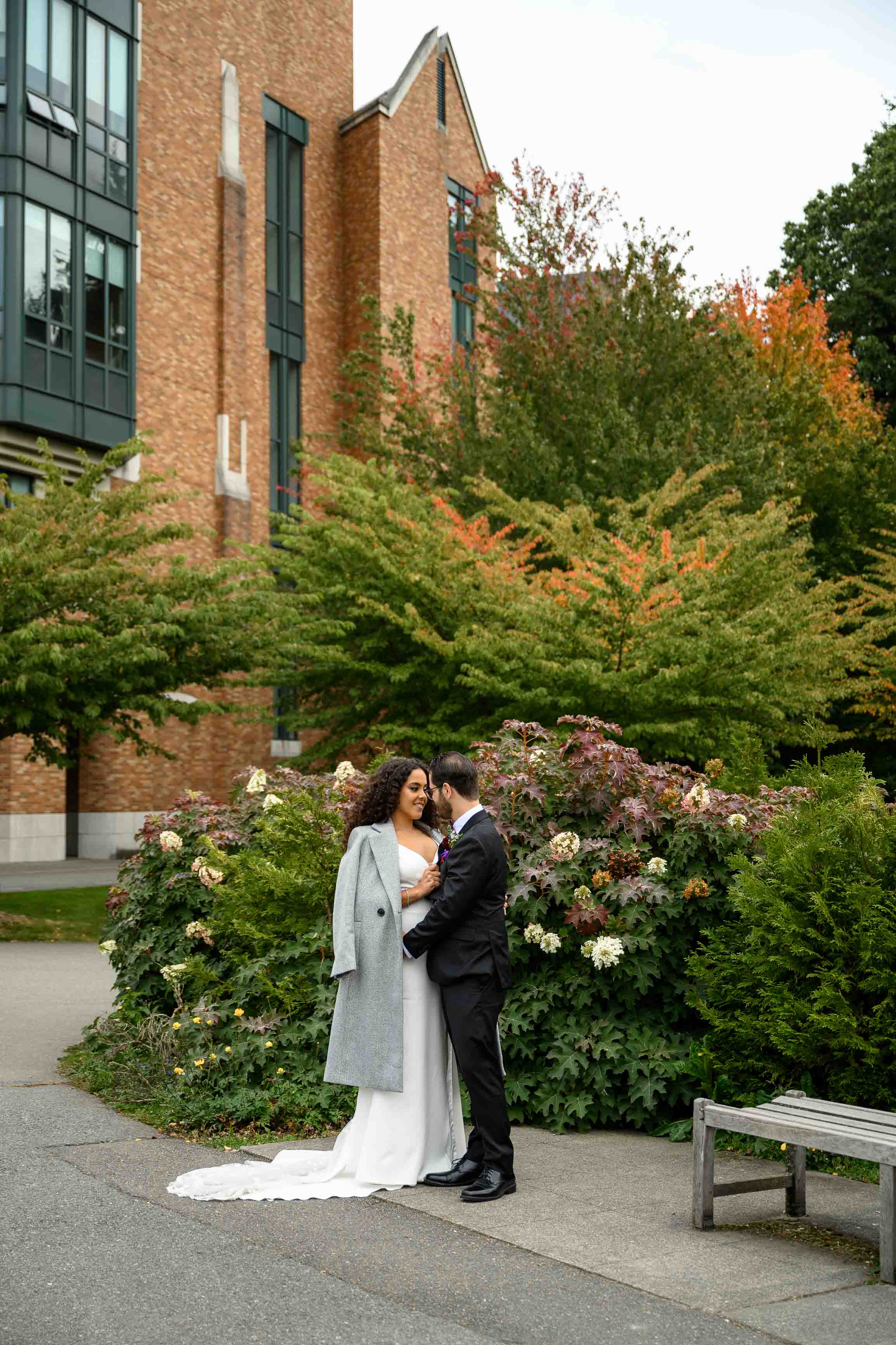 From there, we headed to the University of Washington campus for portraits. The shift from the beach to the architecture was seamless and added so much variety to their gallery. The campus offers a mix of historic buildings, quiet walkways, and unique vantage points that feel elevated without being formal.