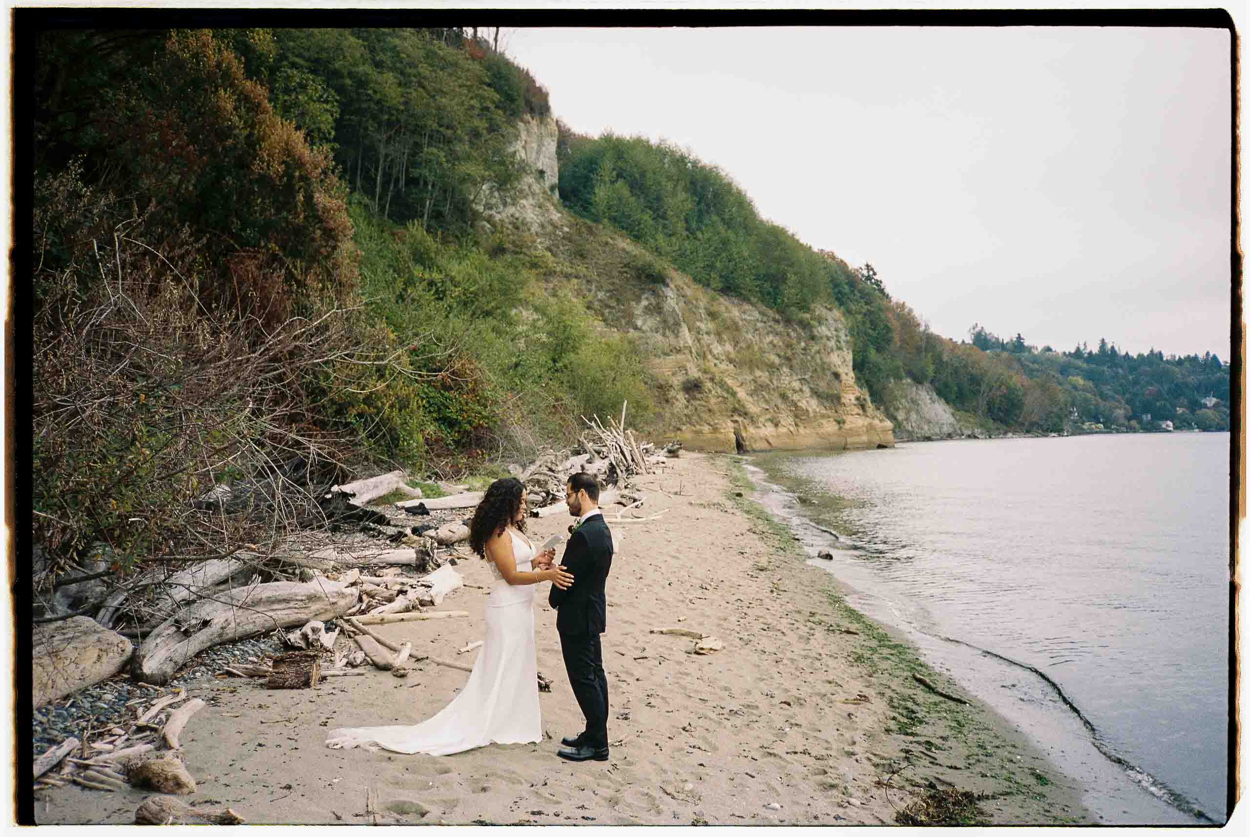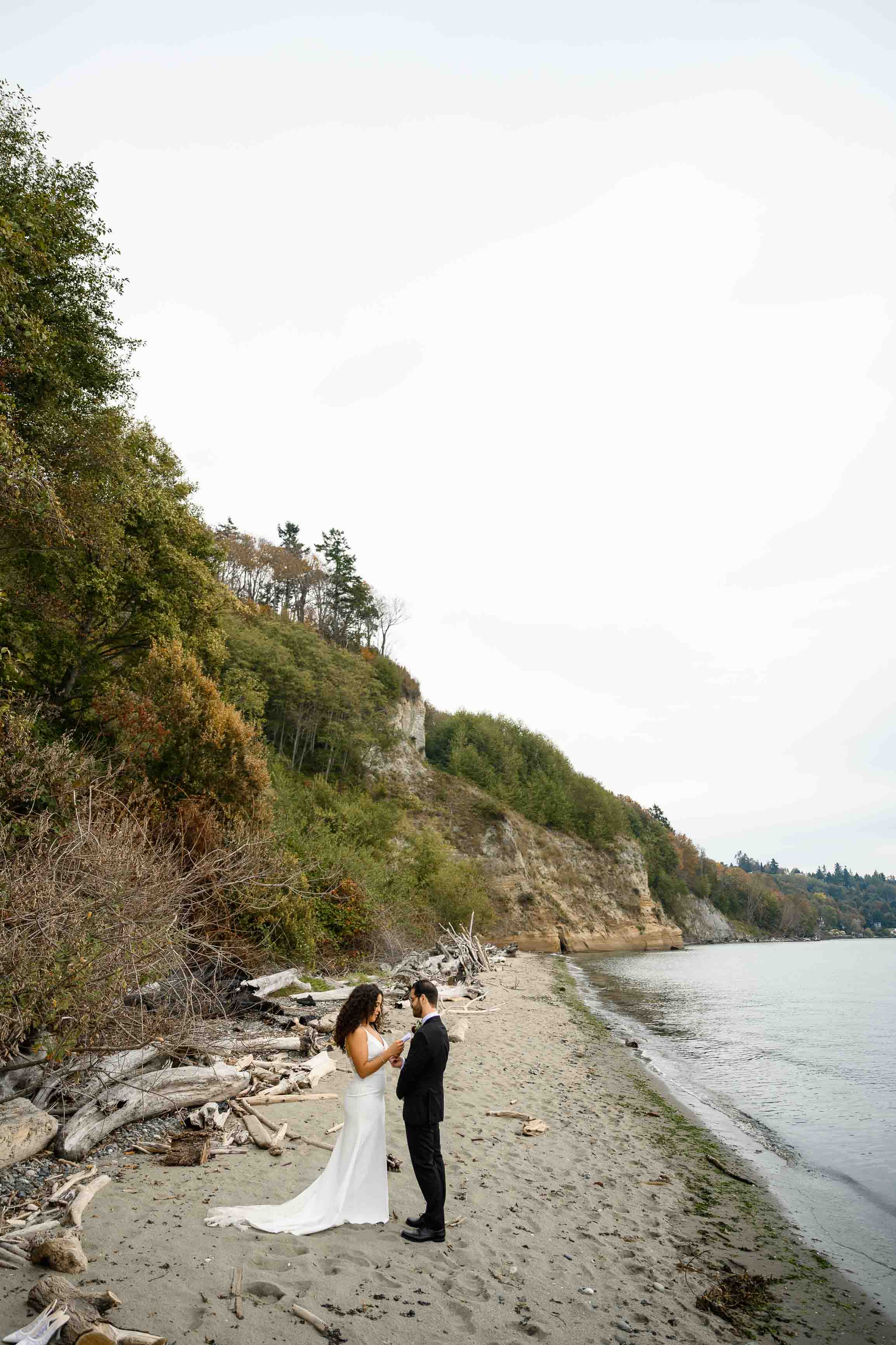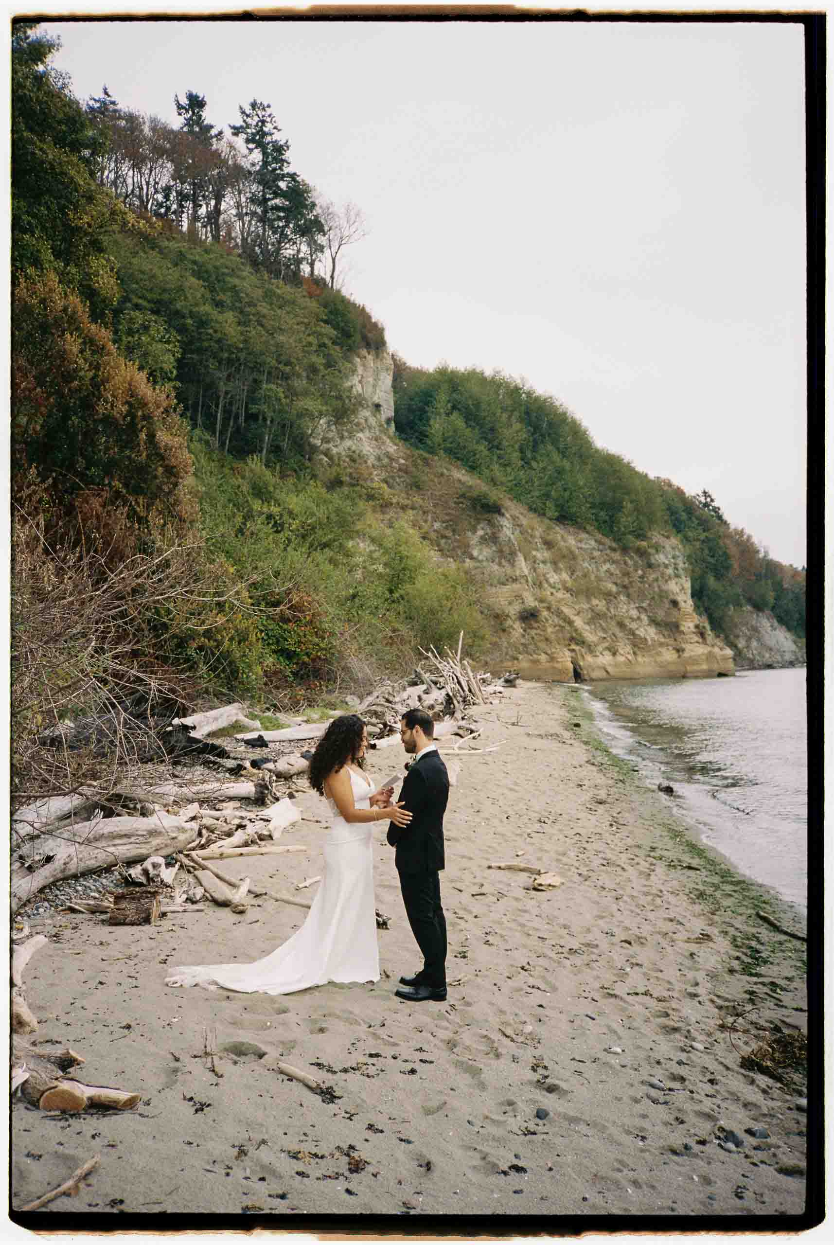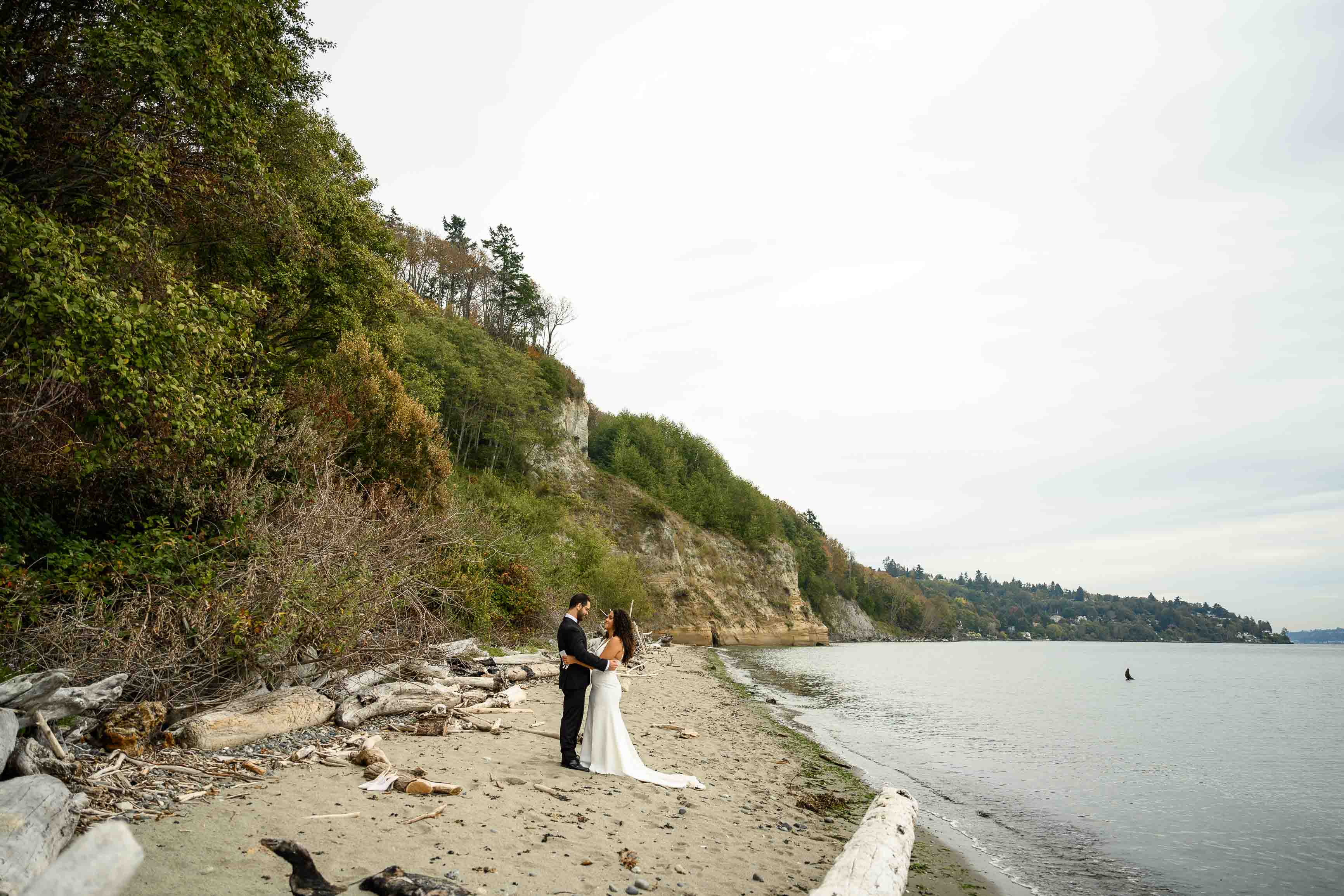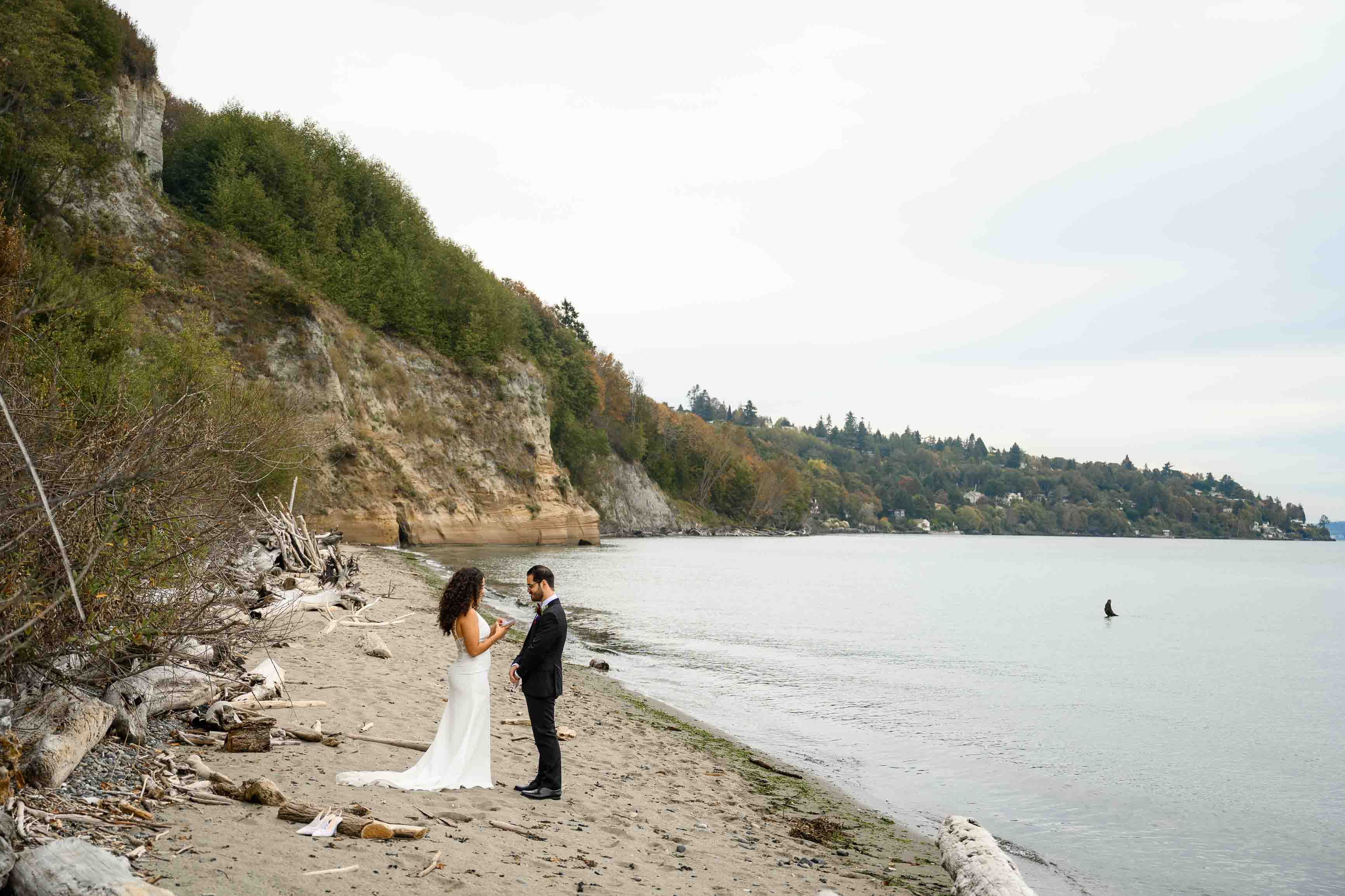 The day began quietly at Discovery Park, where Sasha and William exchanged vows together on the beach — just the two of them. The sound of the water, open views, and space to slow down made it an ideal place to begin the day privately before heading into the city.