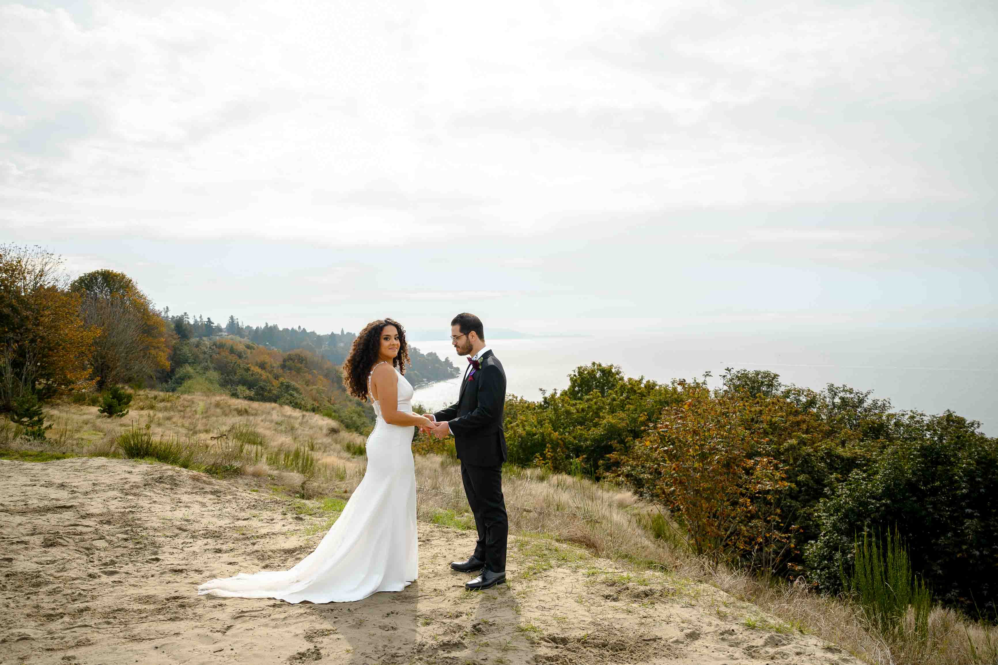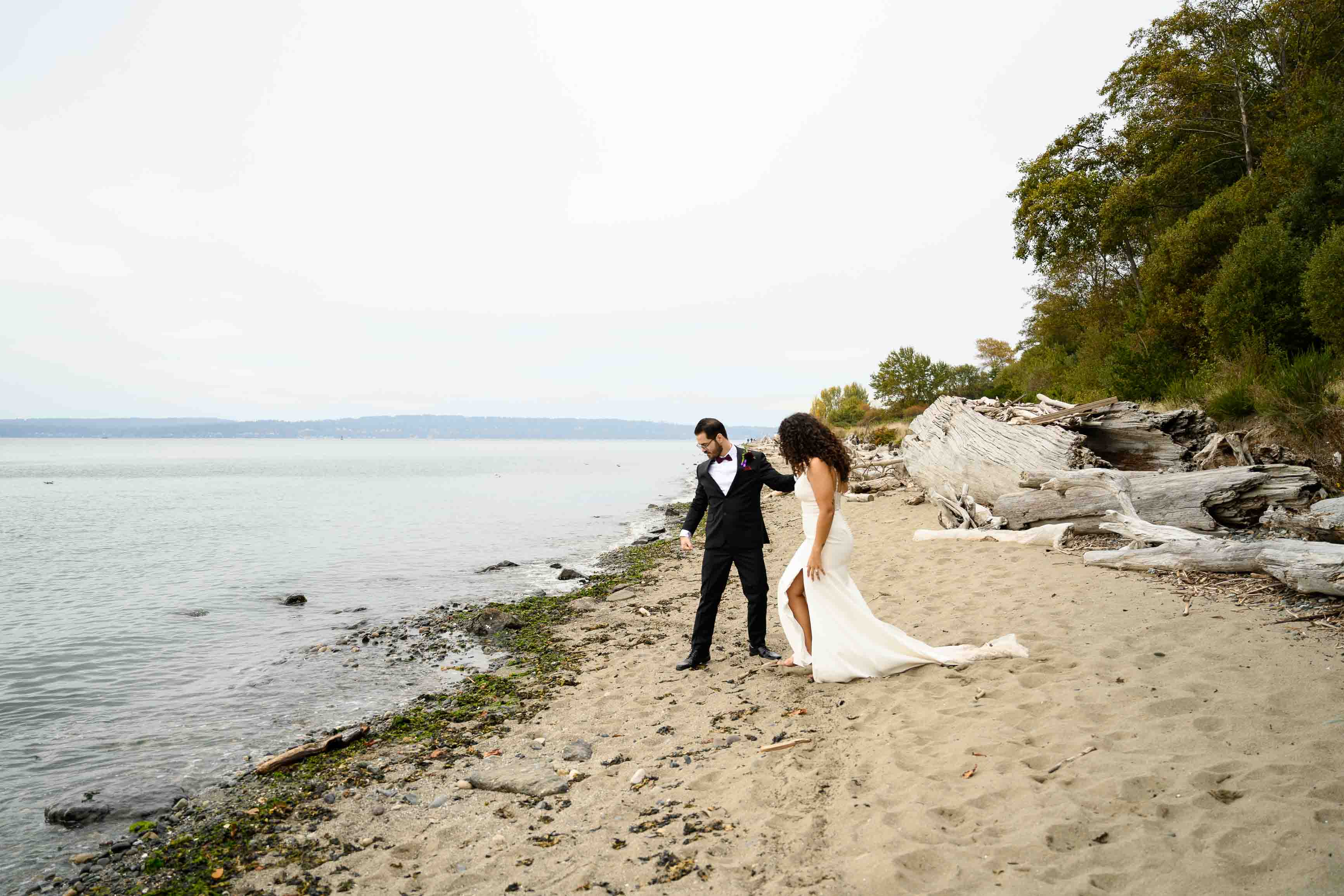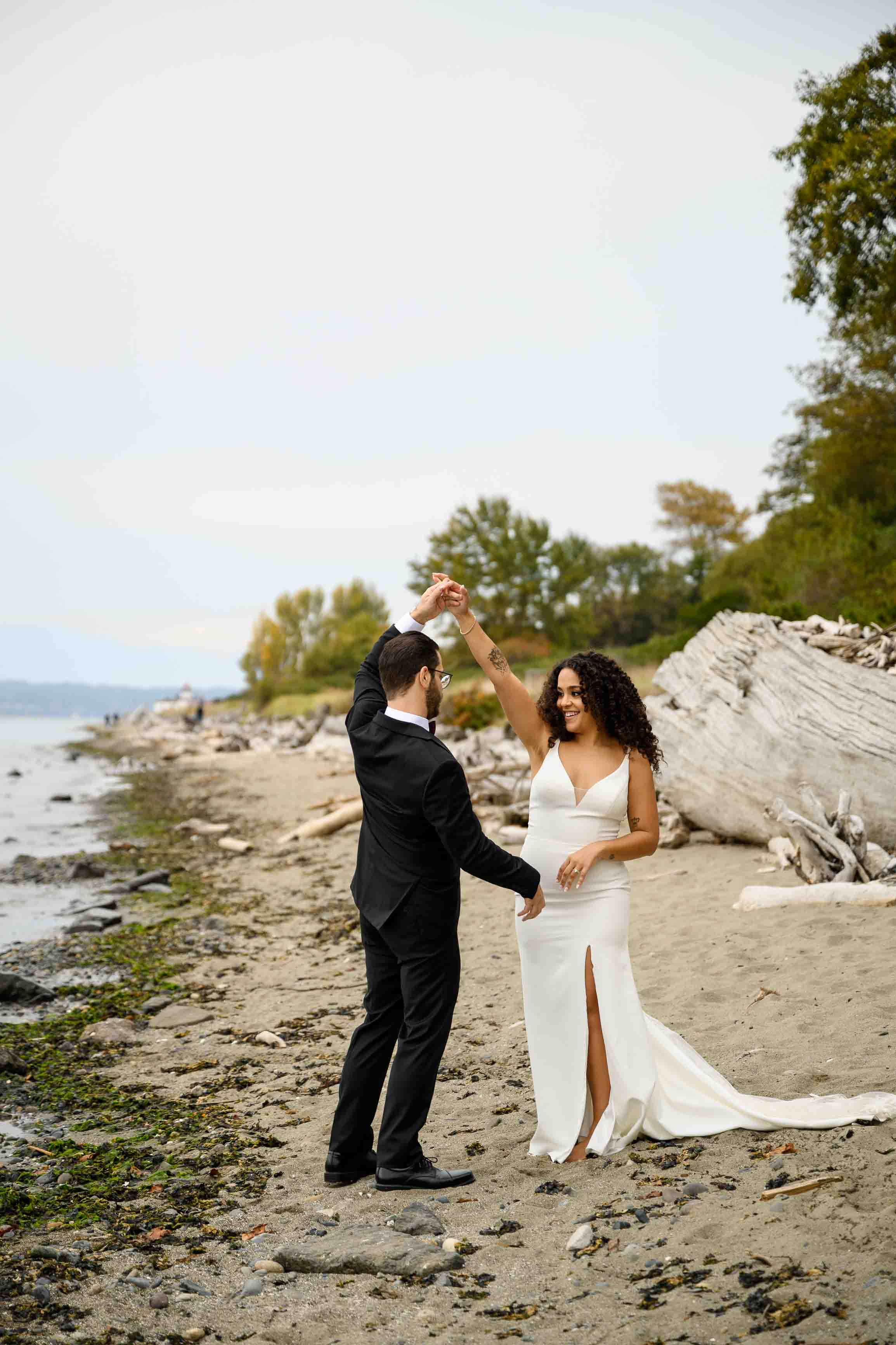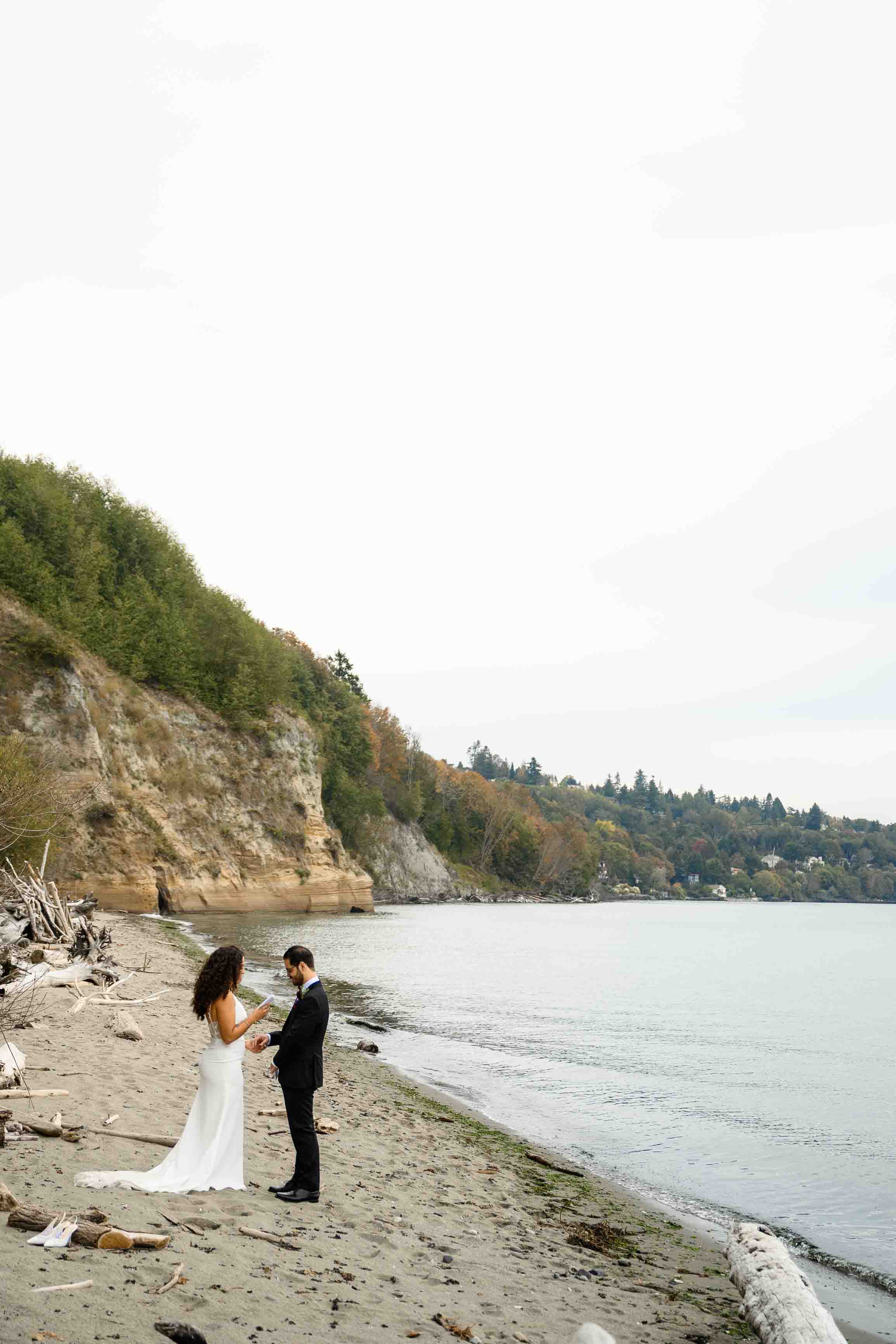 The day began quietly at Discovery Park, where Sasha and William exchanged vows together on the beach — just the two of them. The sound of the water, open views, and space to slow down made it an ideal place to begin the day privately before heading into the city.