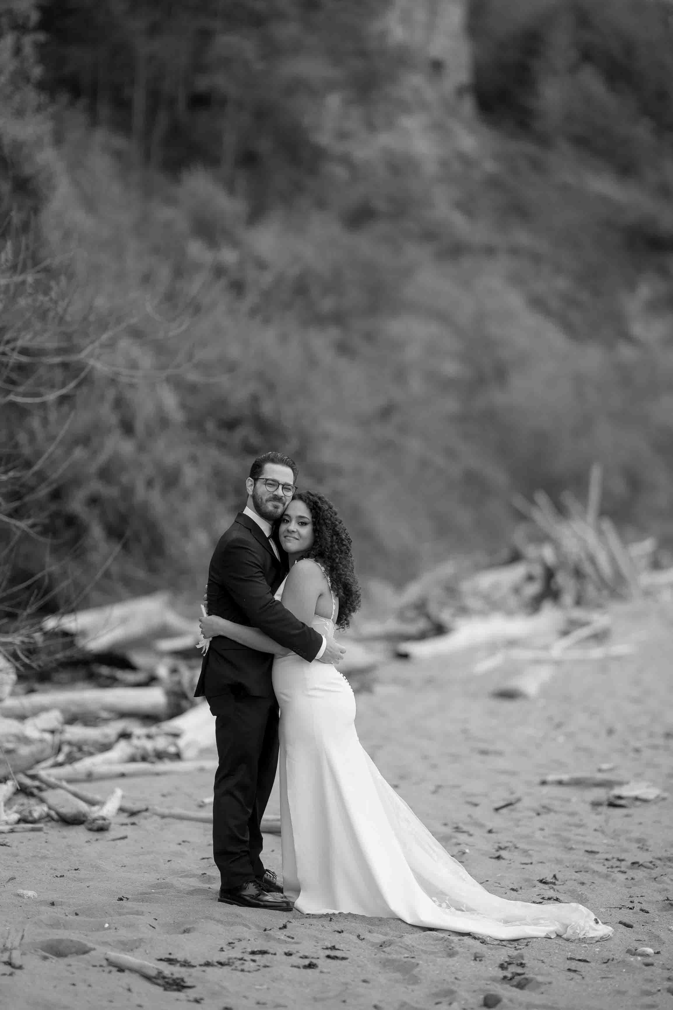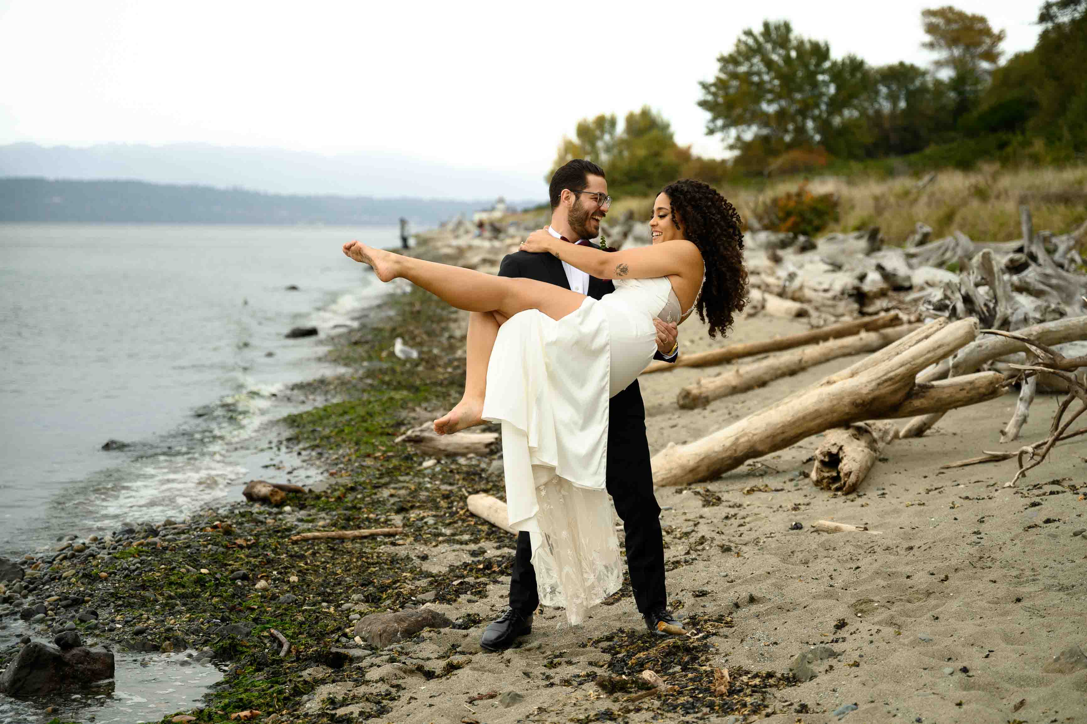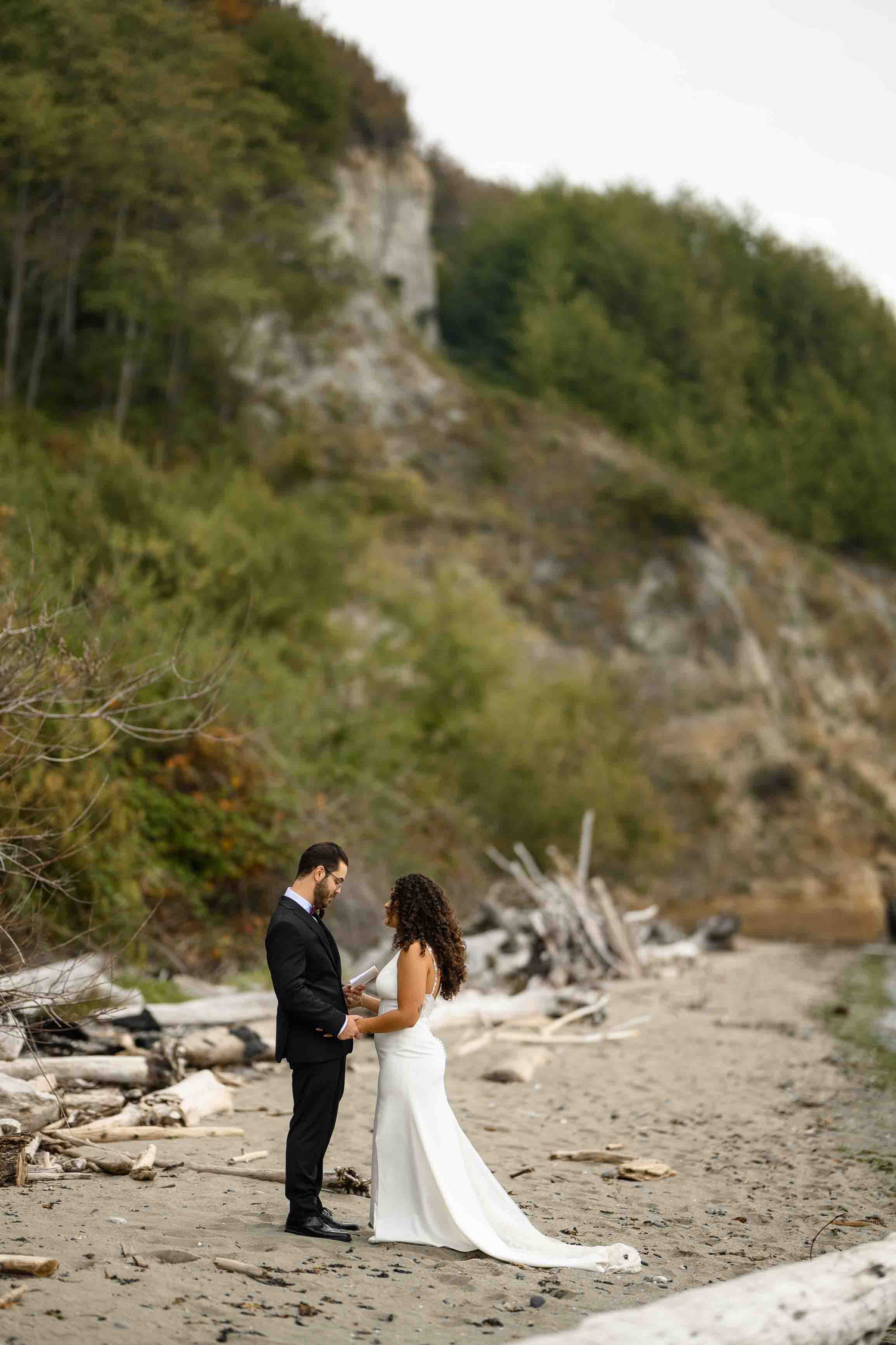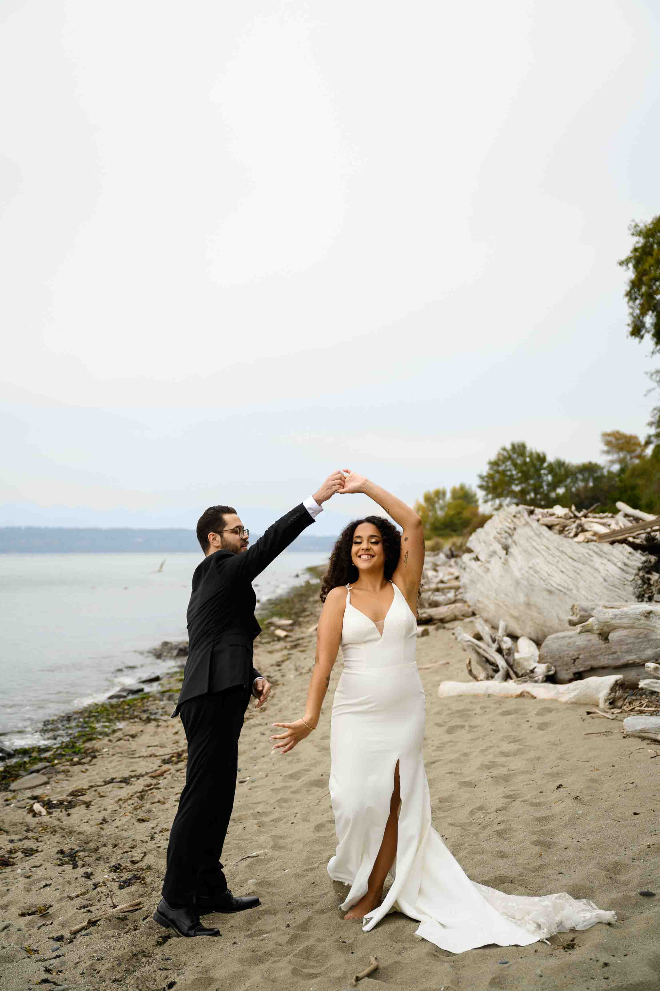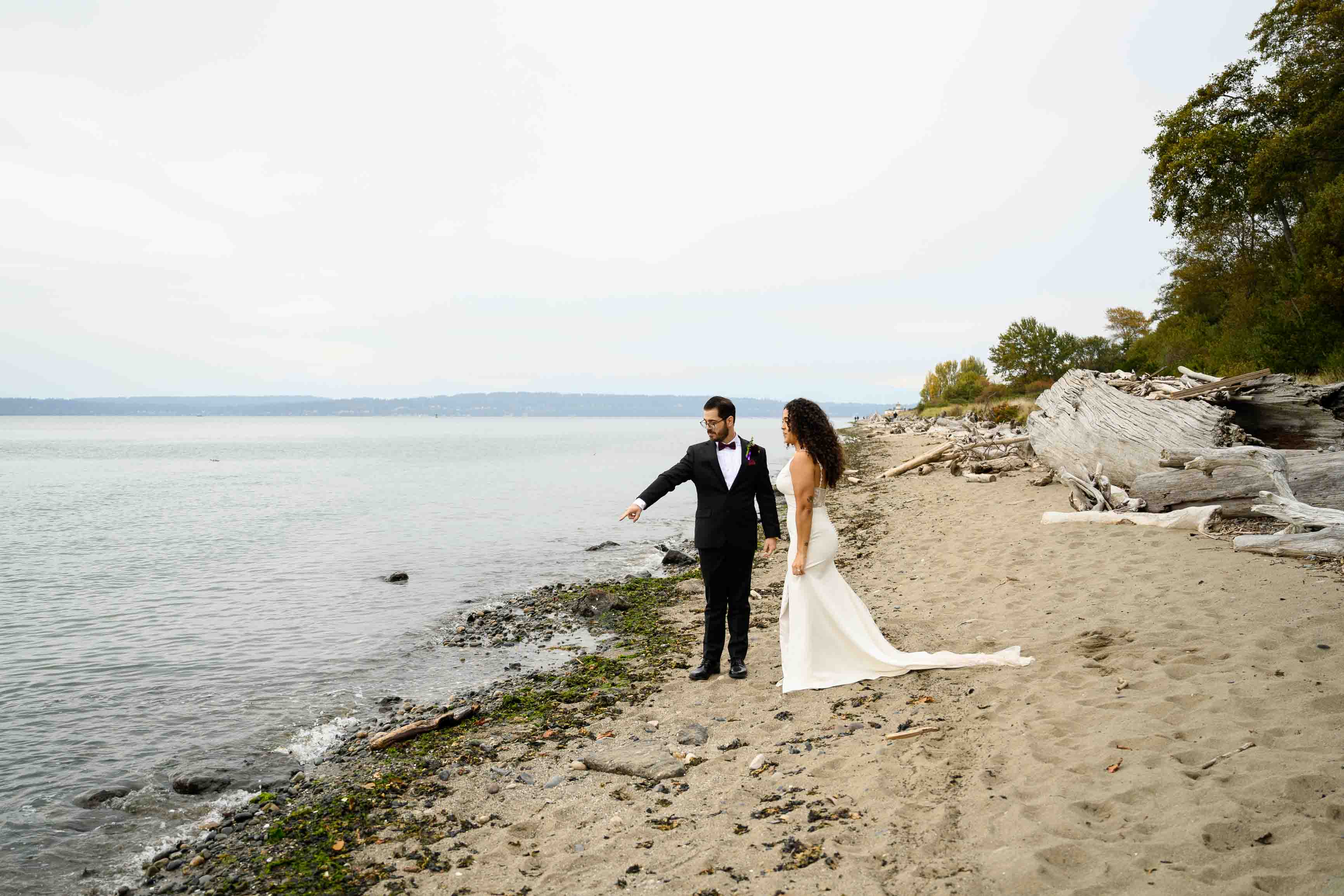 The day began quietly at Discovery Park, where Sasha and William exchanged vows together on the beach — just the two of them. The sound of the water, open views, and space to slow down made it an ideal place to begin the day privately before heading into the city.