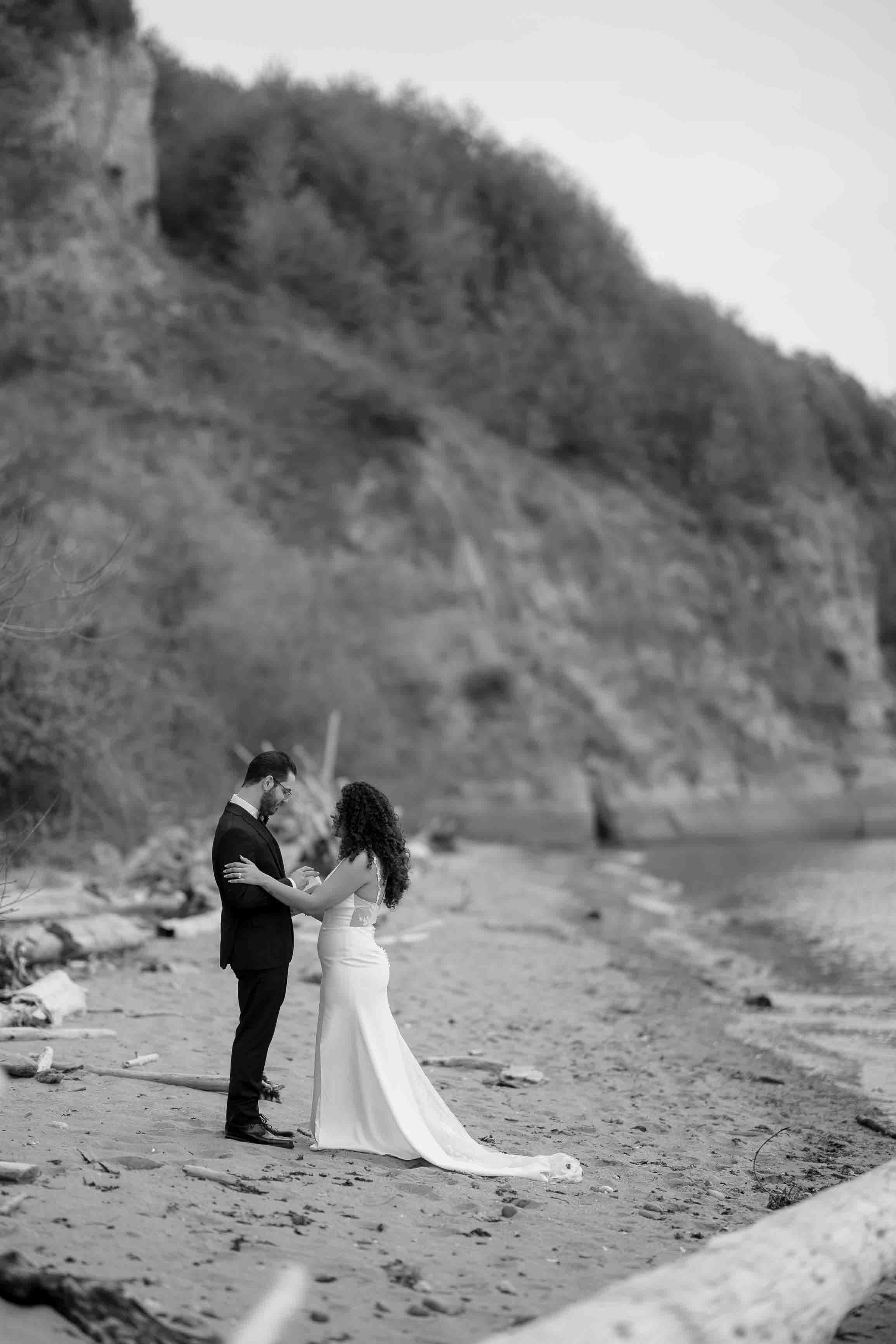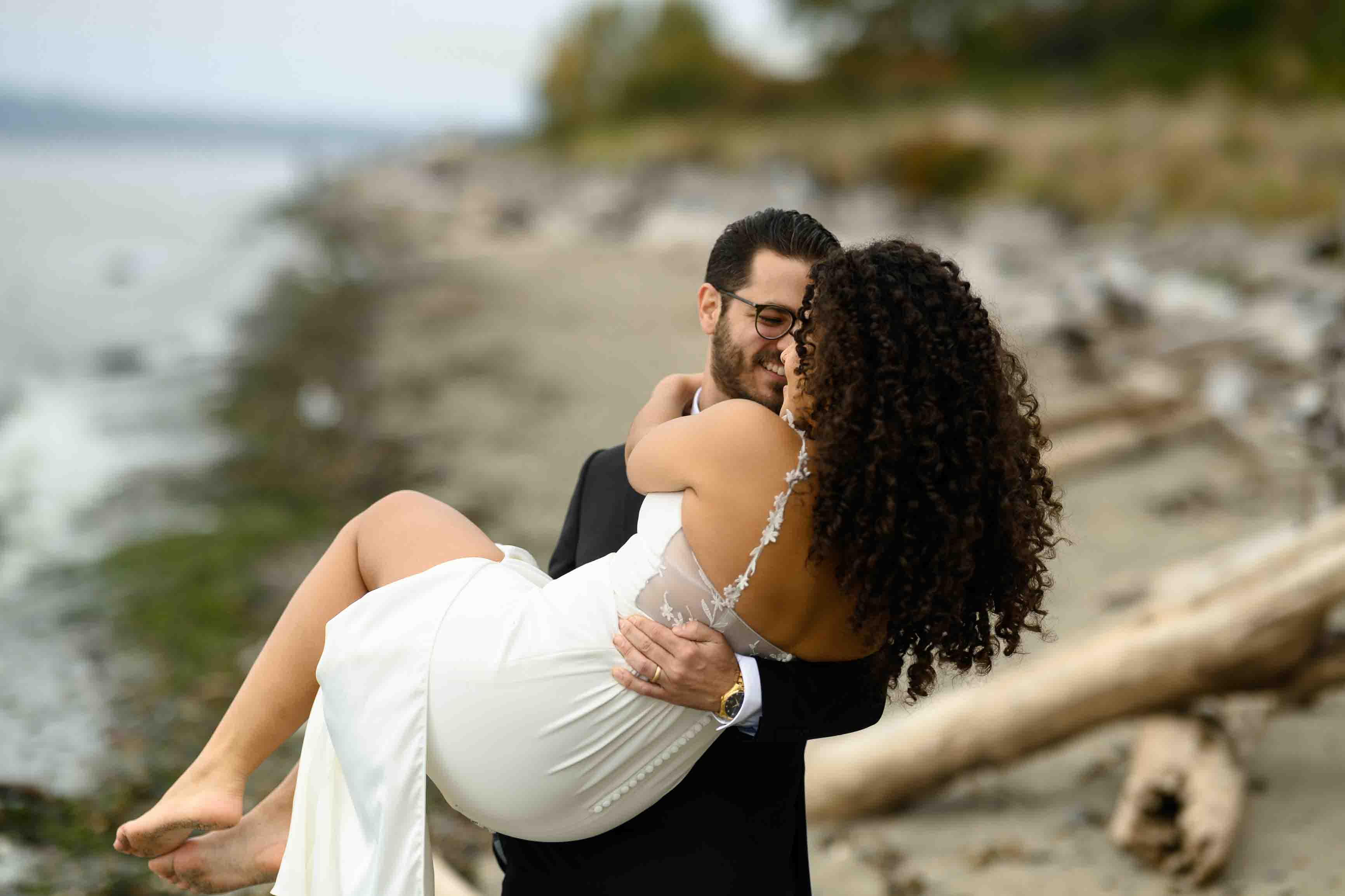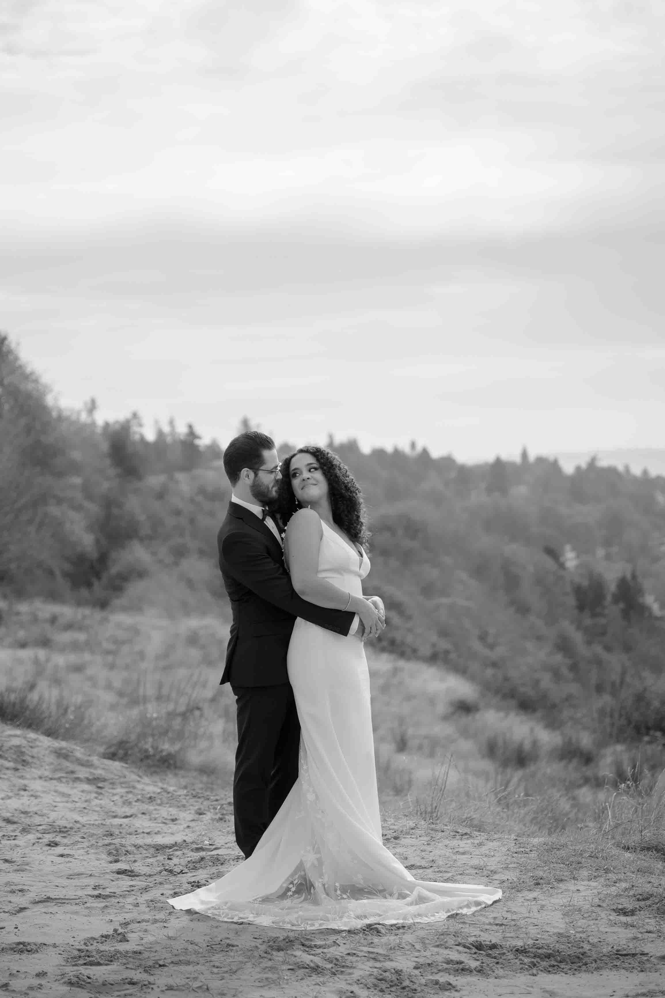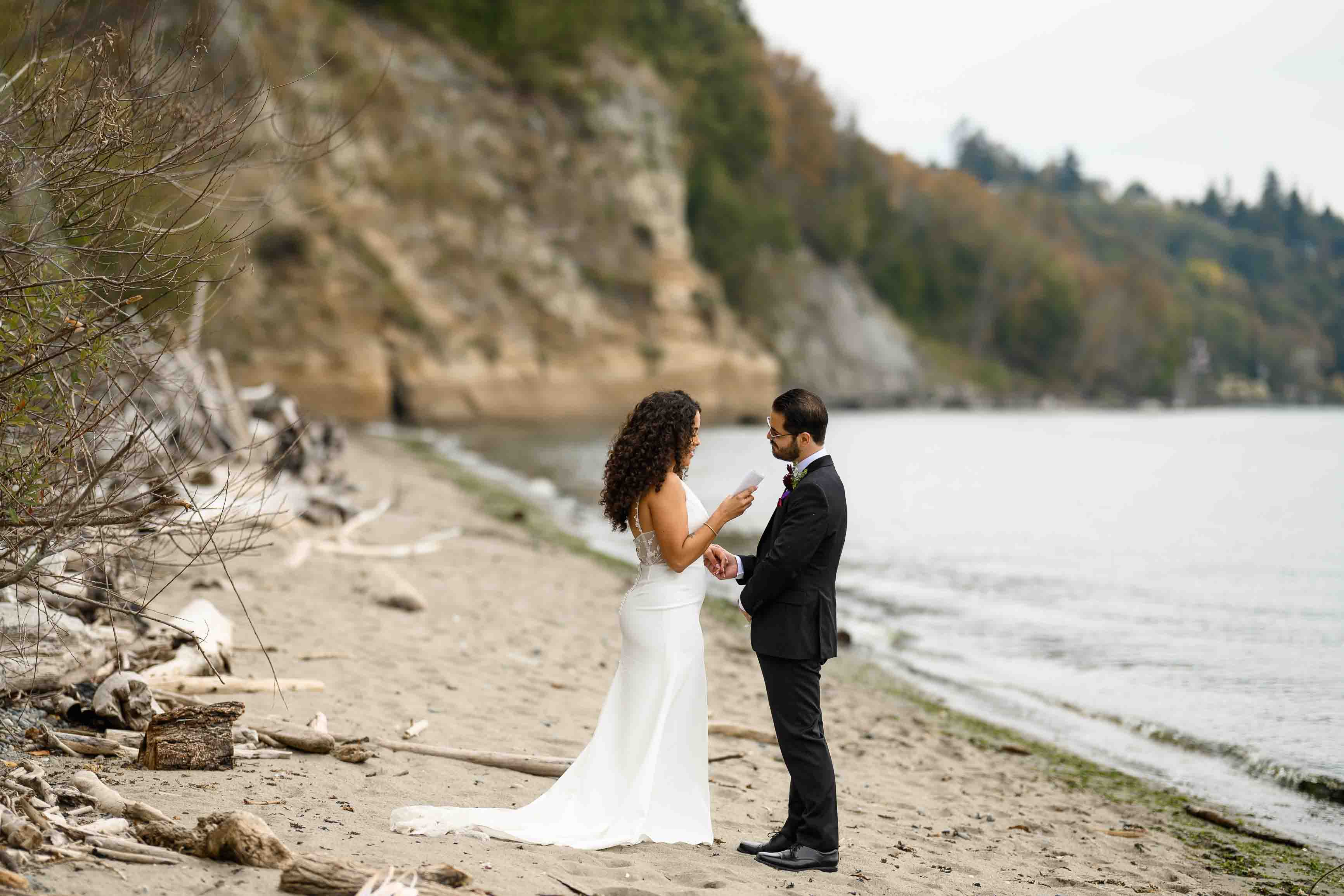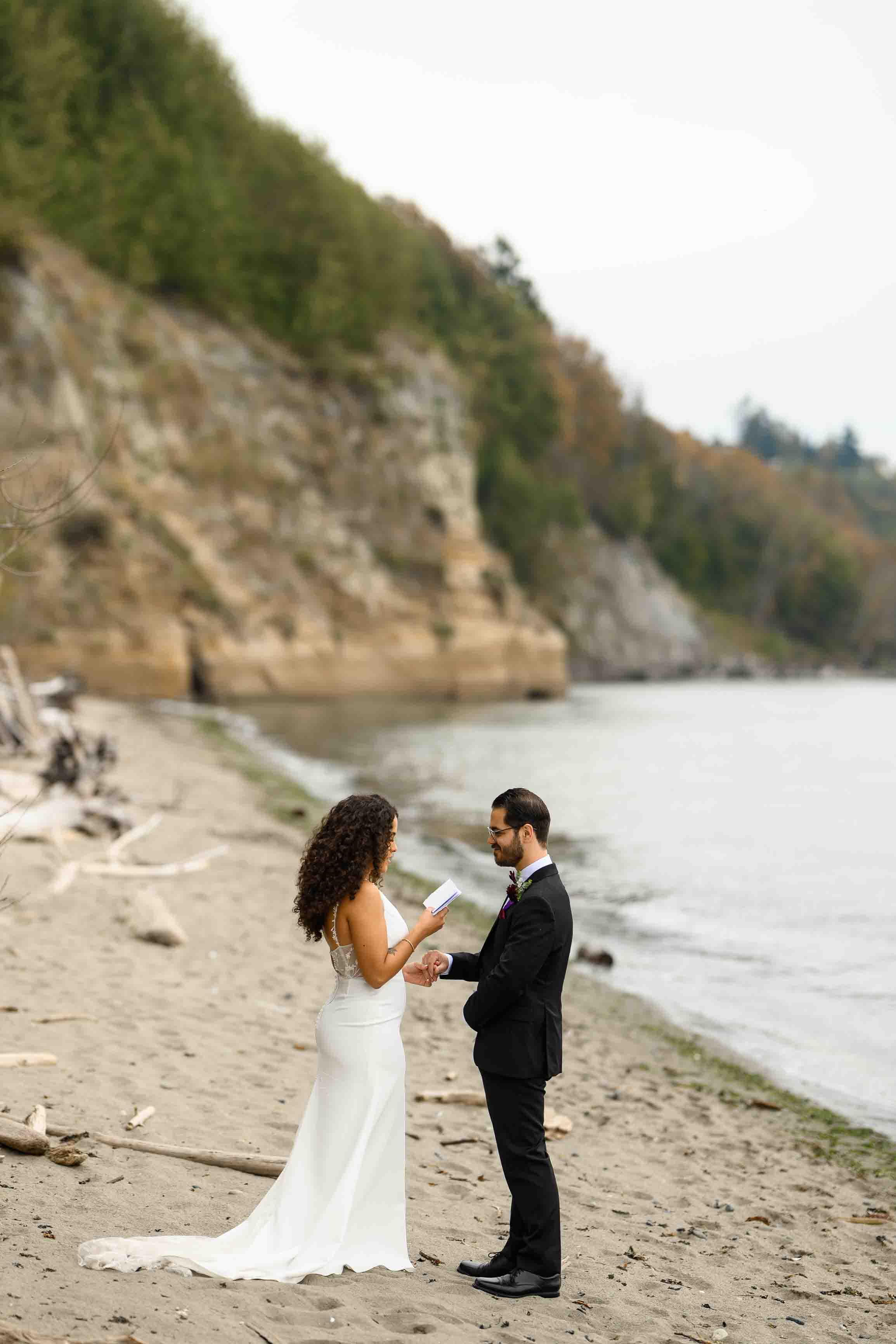 The day began quietly at Discovery Park, where Sasha and William exchanged vows together on the beach — just the two of them. The sound of the water, open views, and space to slow down made it an ideal place to begin the day privately before heading into the city.