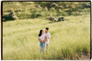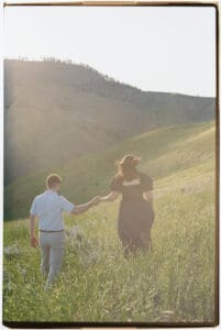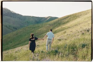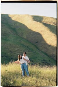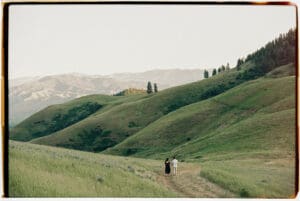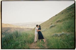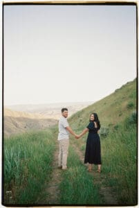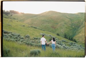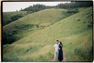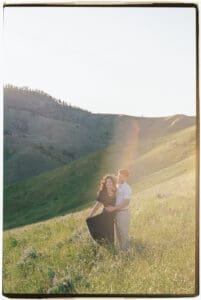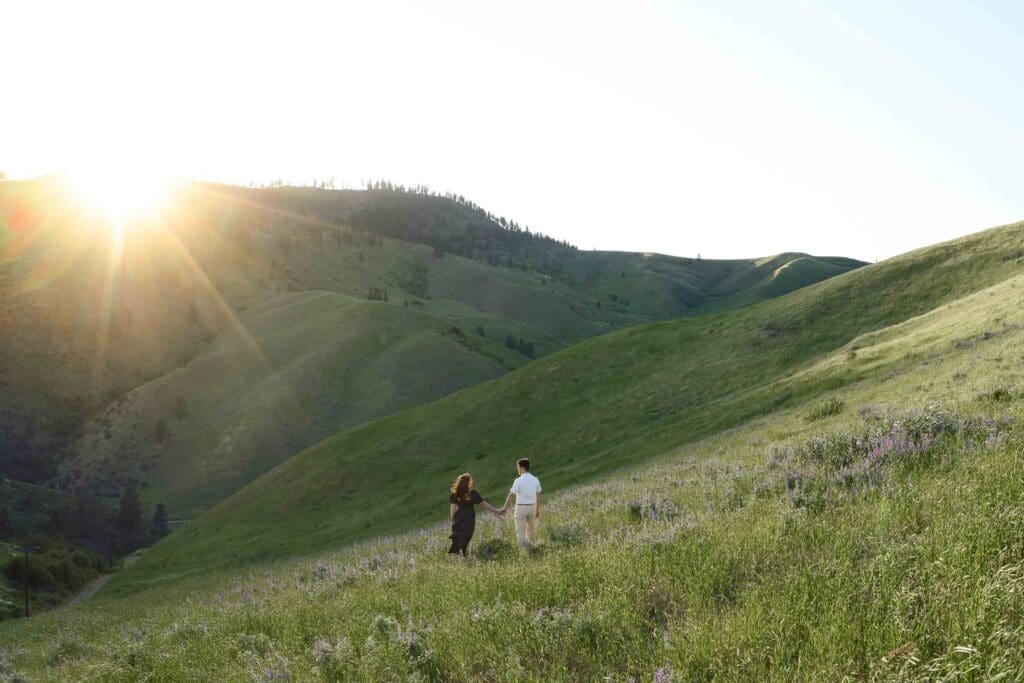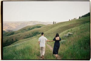 Alyssa and Jacob’s engagement session at Nahahum Trail in Cashmere, Washington was all about the landscape and the experience of getting there. The trail opens up into wide meadows and rolling hills that feel endless, and the views only get better the farther you walk.