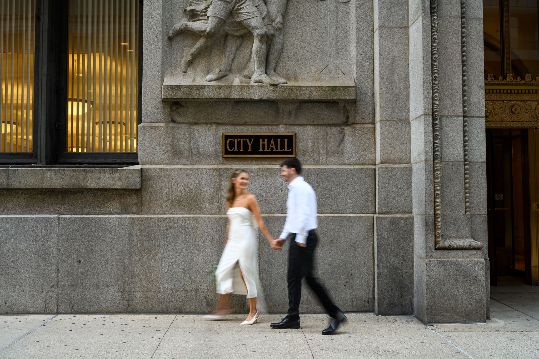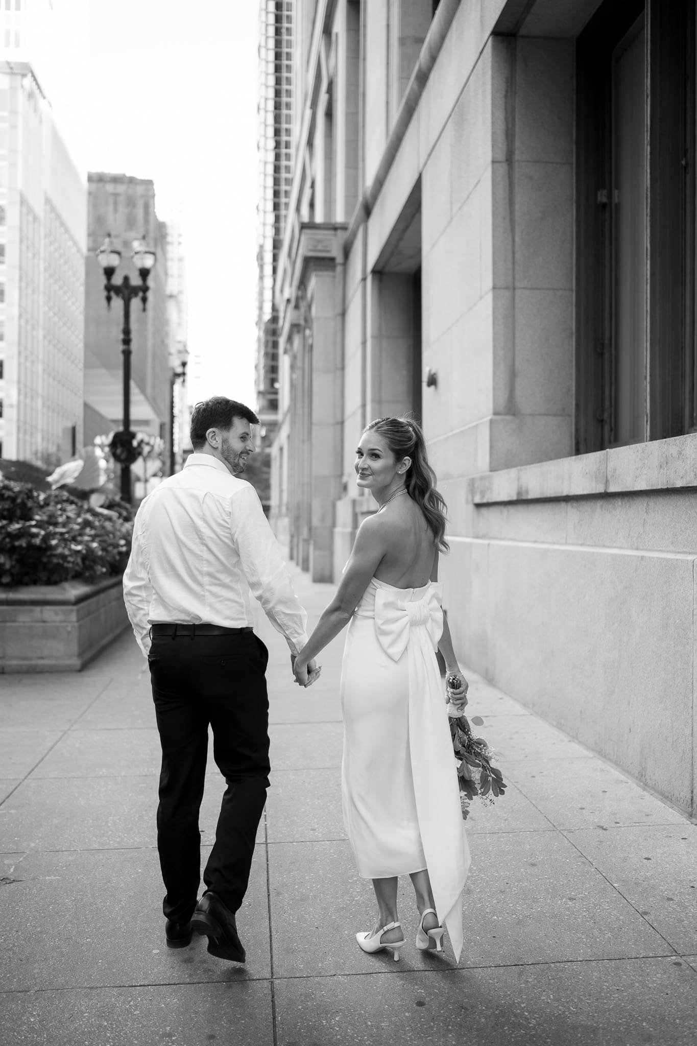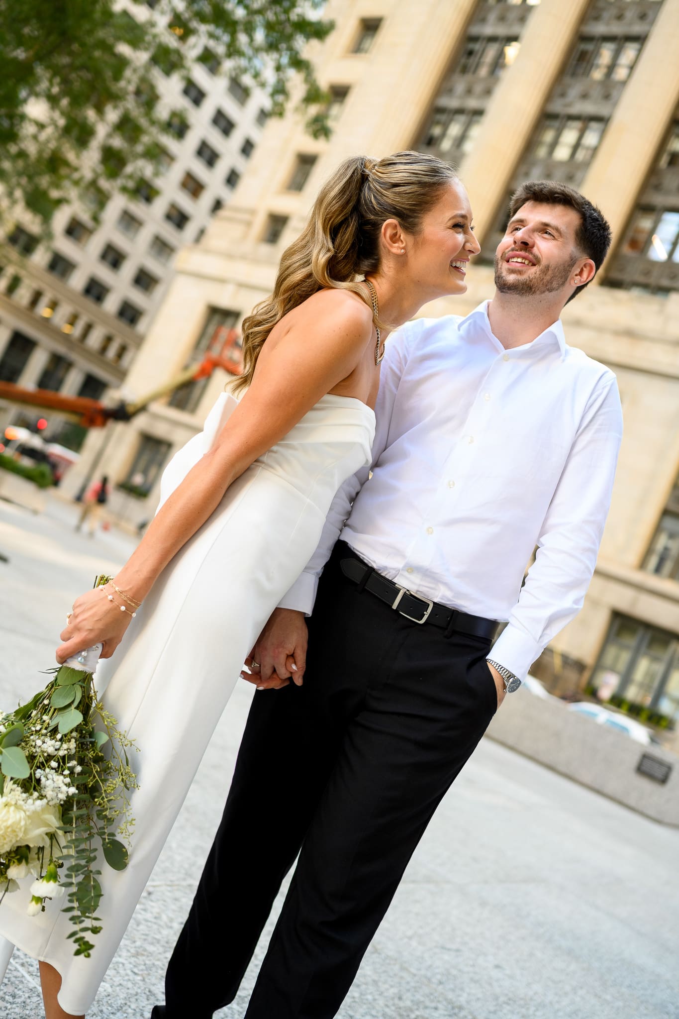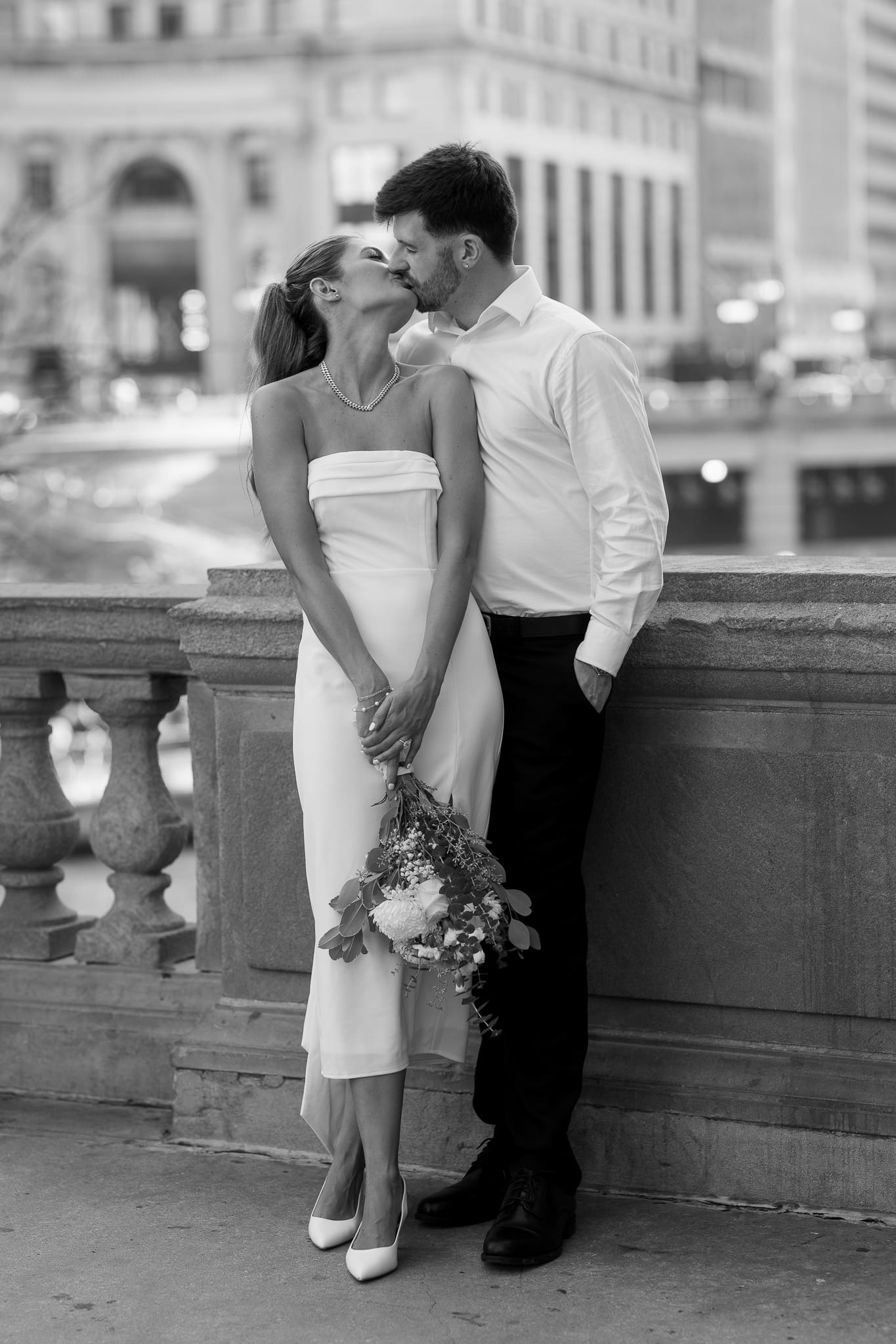 Following their private courthouse ceremony, we met outside City Hall and spent the afternoon wandering through the Chicago Loop. Surrounded by historic buildings, clean lines, and the steady rhythm of the city, their portraits leaned into Chicago’s unmistakable character — classic, architectural, and full of energy.