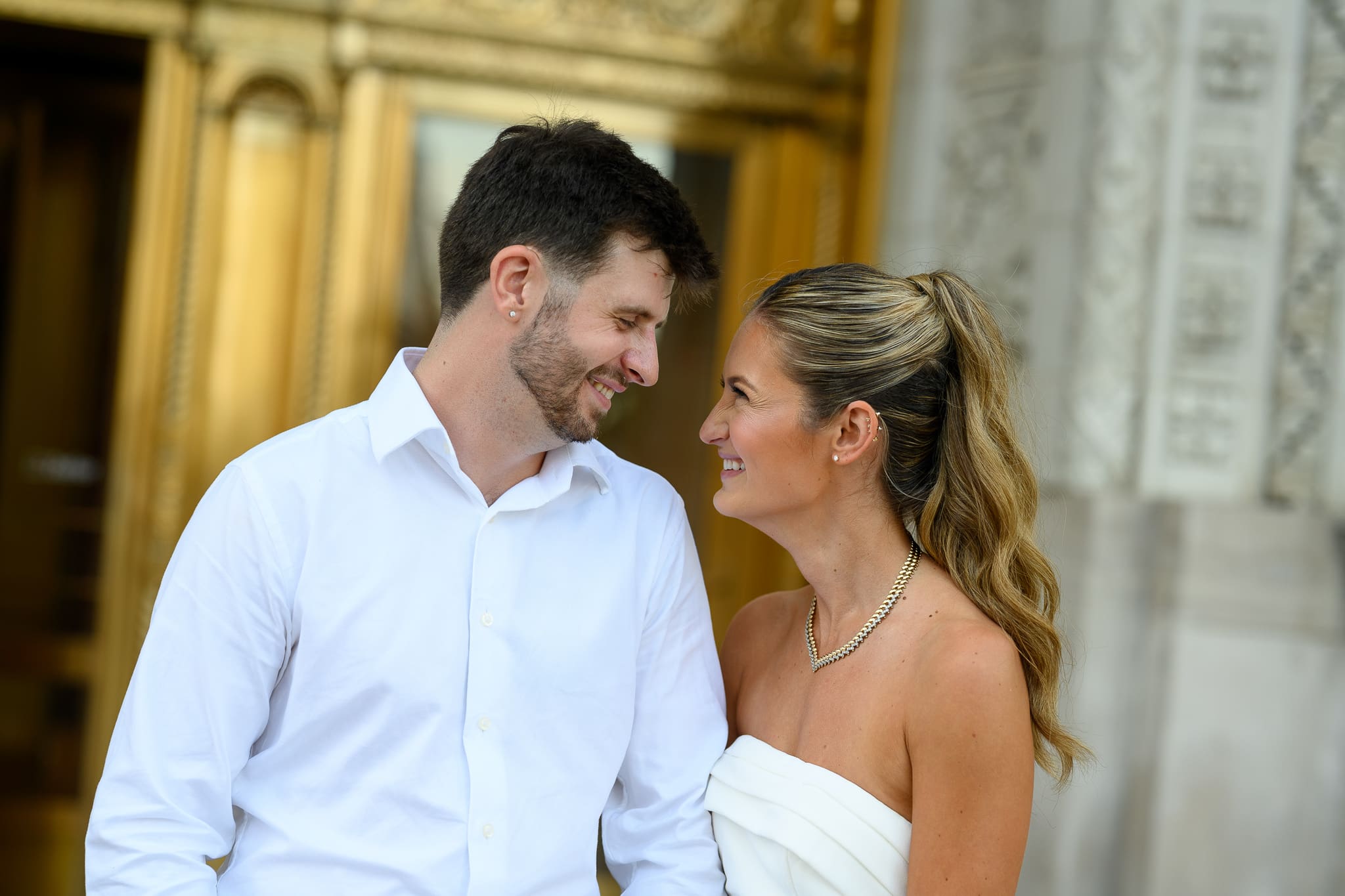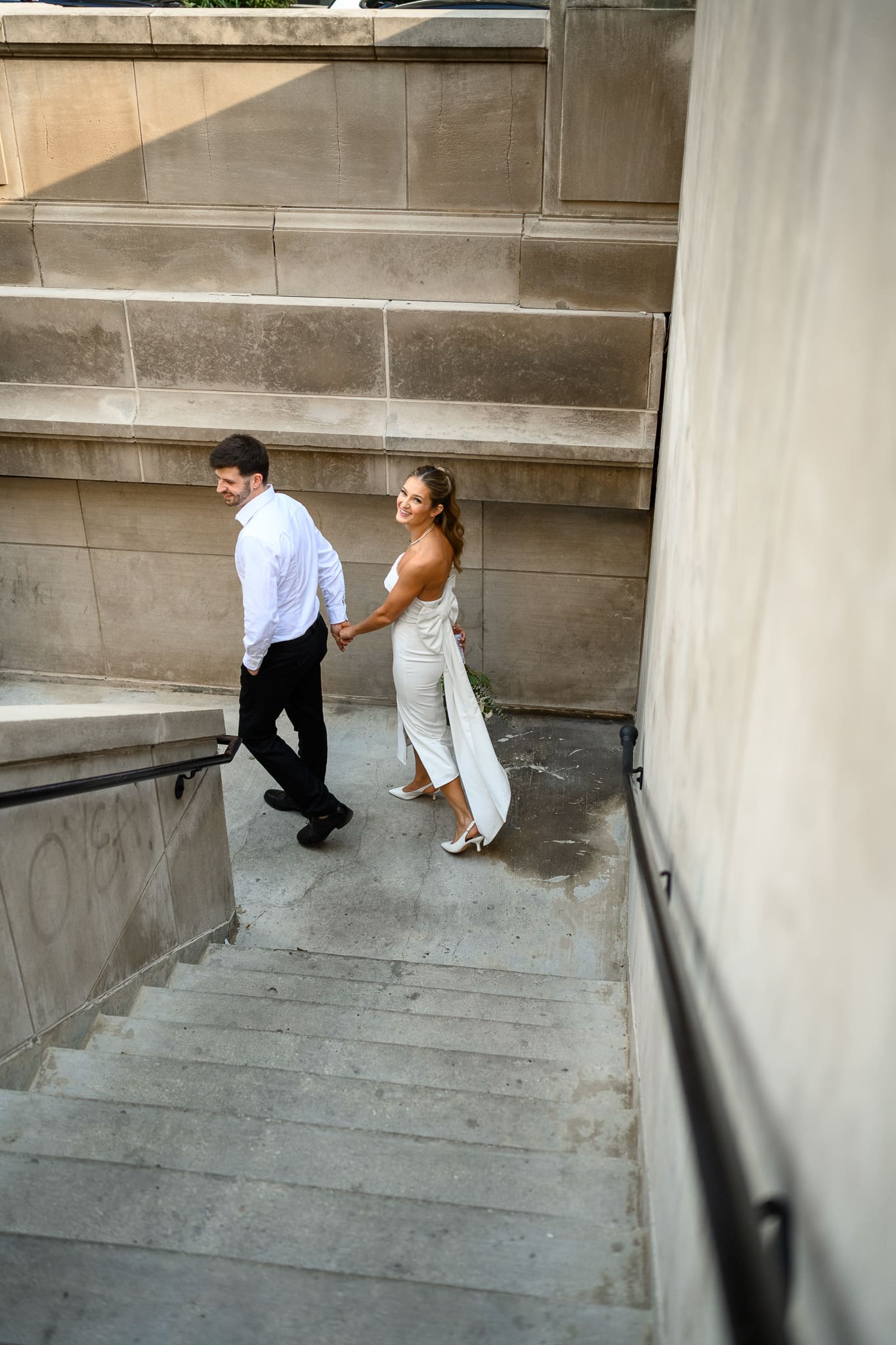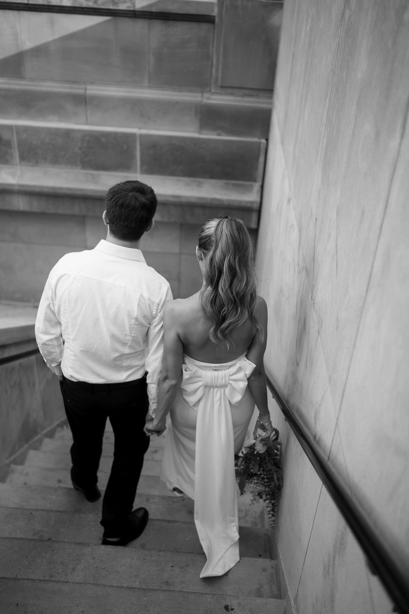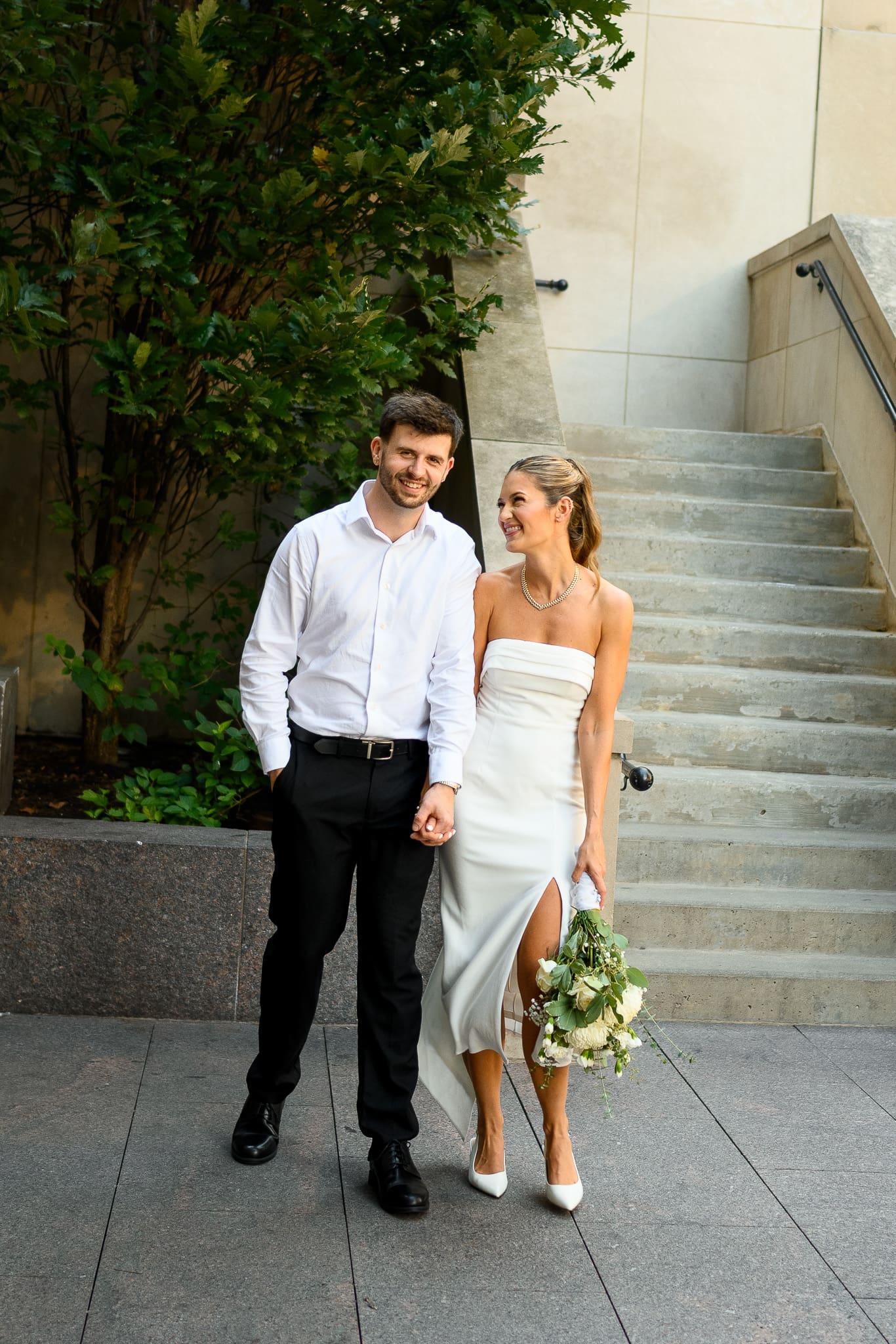 Following their private courthouse ceremony, we met outside City Hall and spent the afternoon wandering through the Chicago Loop. Surrounded by historic buildings, clean lines, and the steady rhythm of the city, their portraits leaned into Chicago’s unmistakable character — classic, architectural, and full of energy.