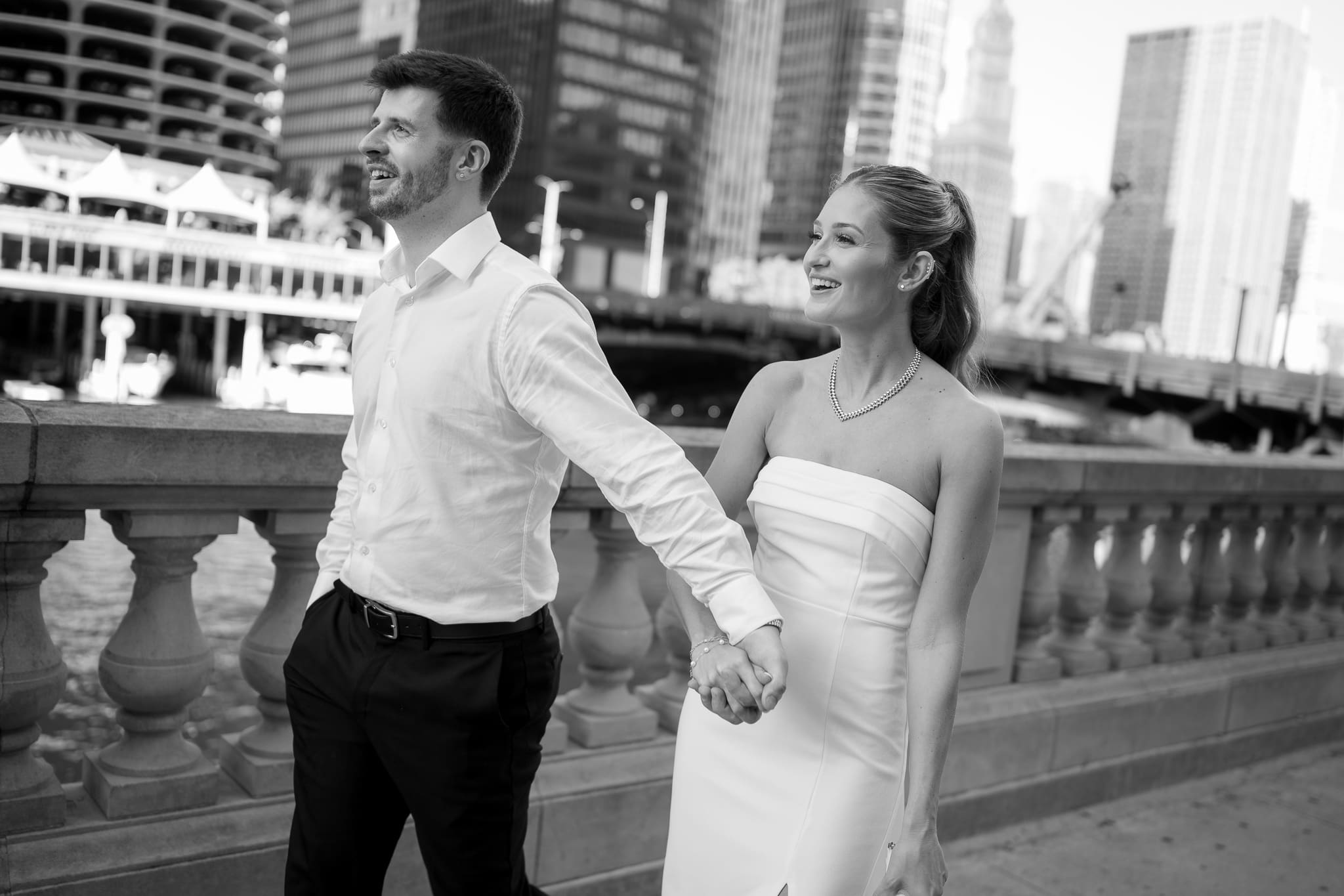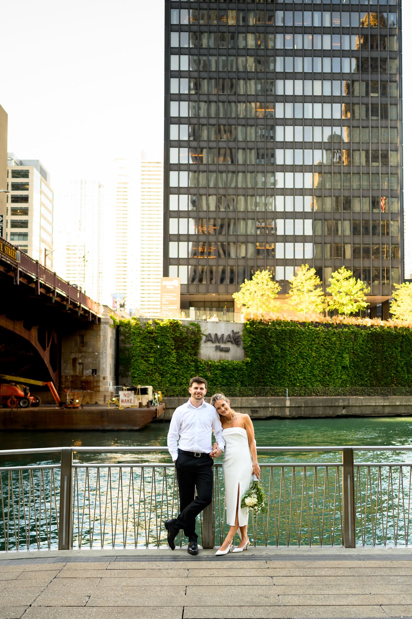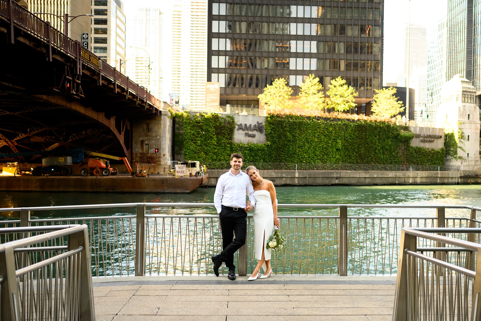 As we continued through downtown, we made our way to the Chicago Riverwalk. The river, layered cityscape, and changing light offered a different perspective of the city while still feeling distinctly urban. We moved at an easy pace, letting moments unfold naturally as Hayley and Dan took it all in together.