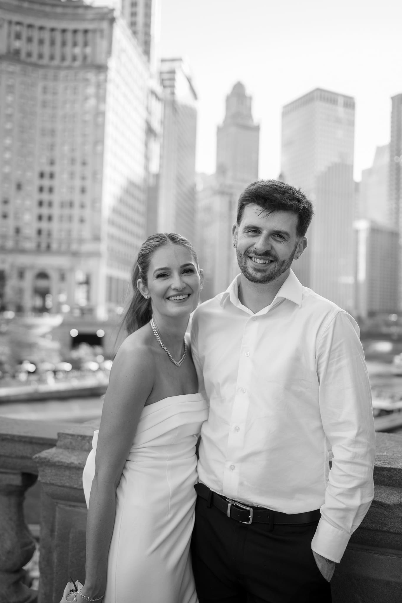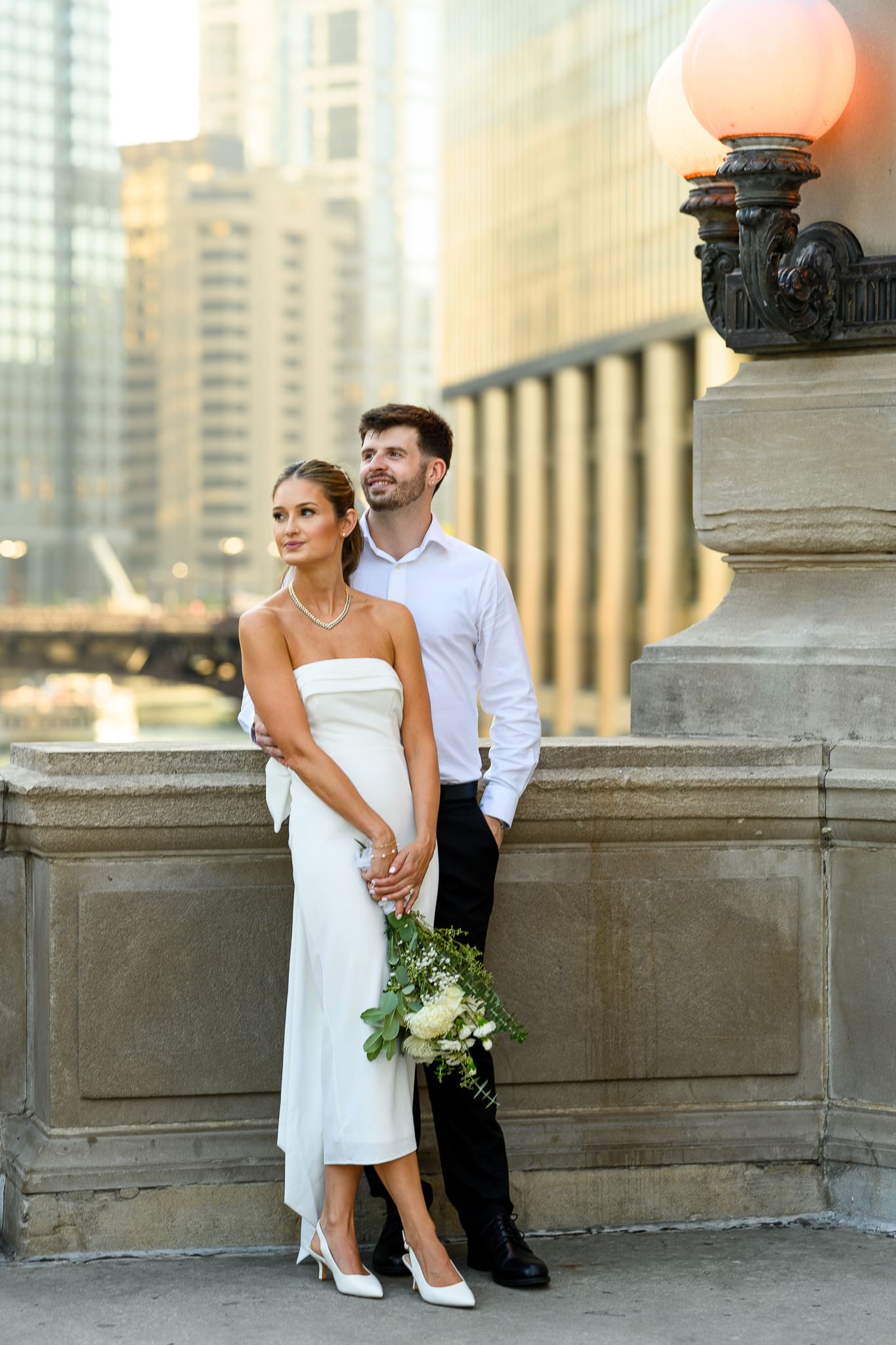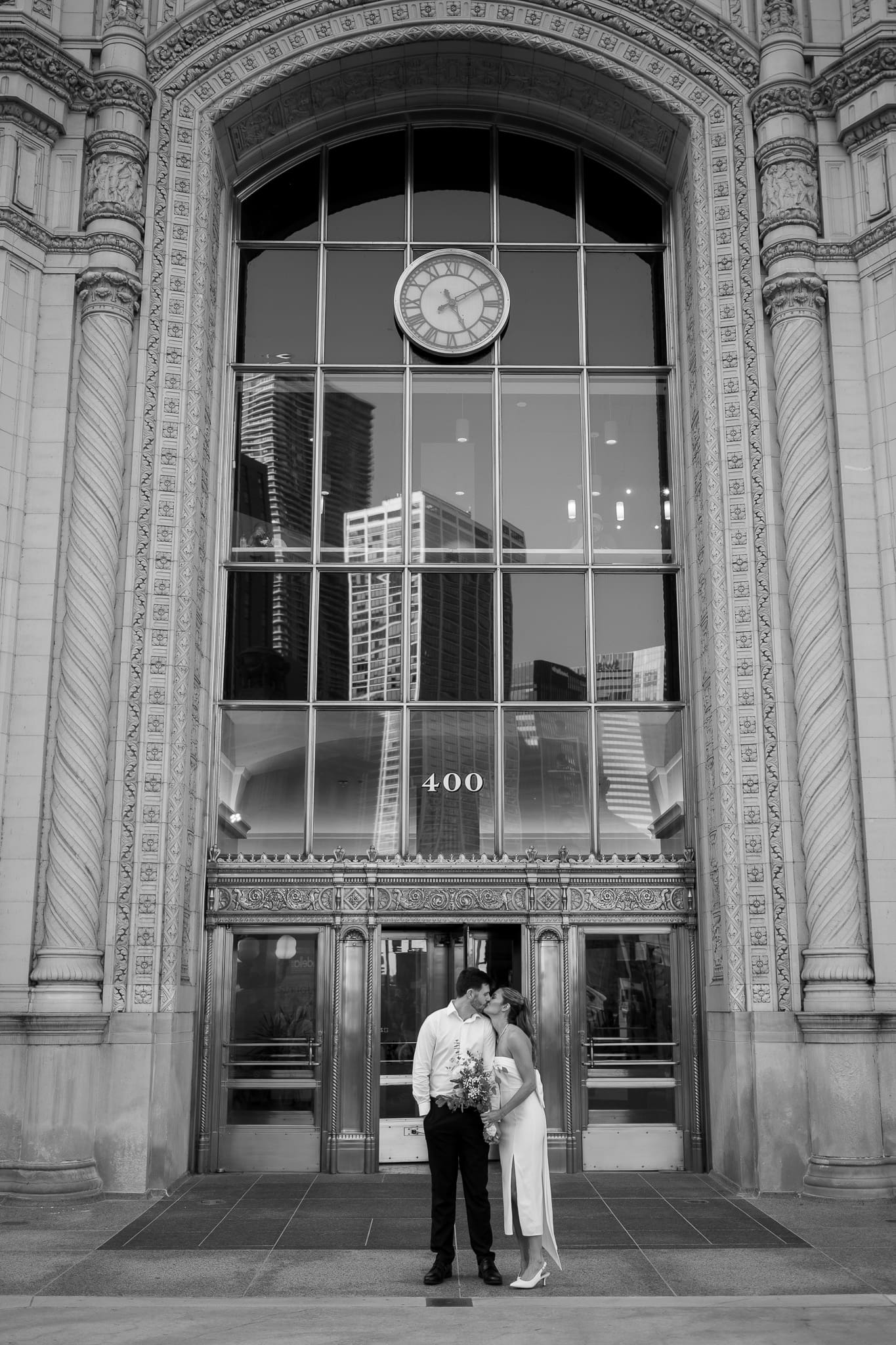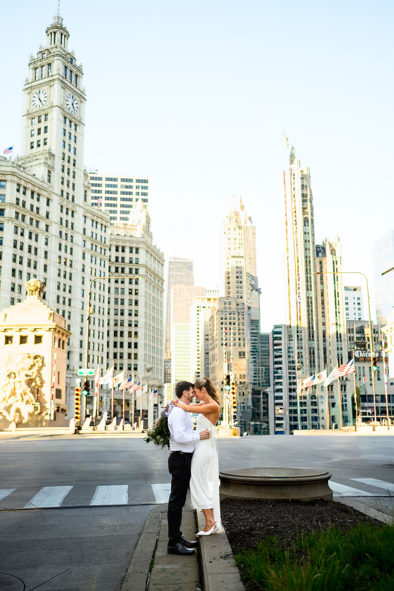 We ended near the Wrigley Building, one of Chicago’s most recognizable landmarks. Finishing their elopement session there felt like the perfect close — iconic, elegant, and deeply connected to the city that framed their day.