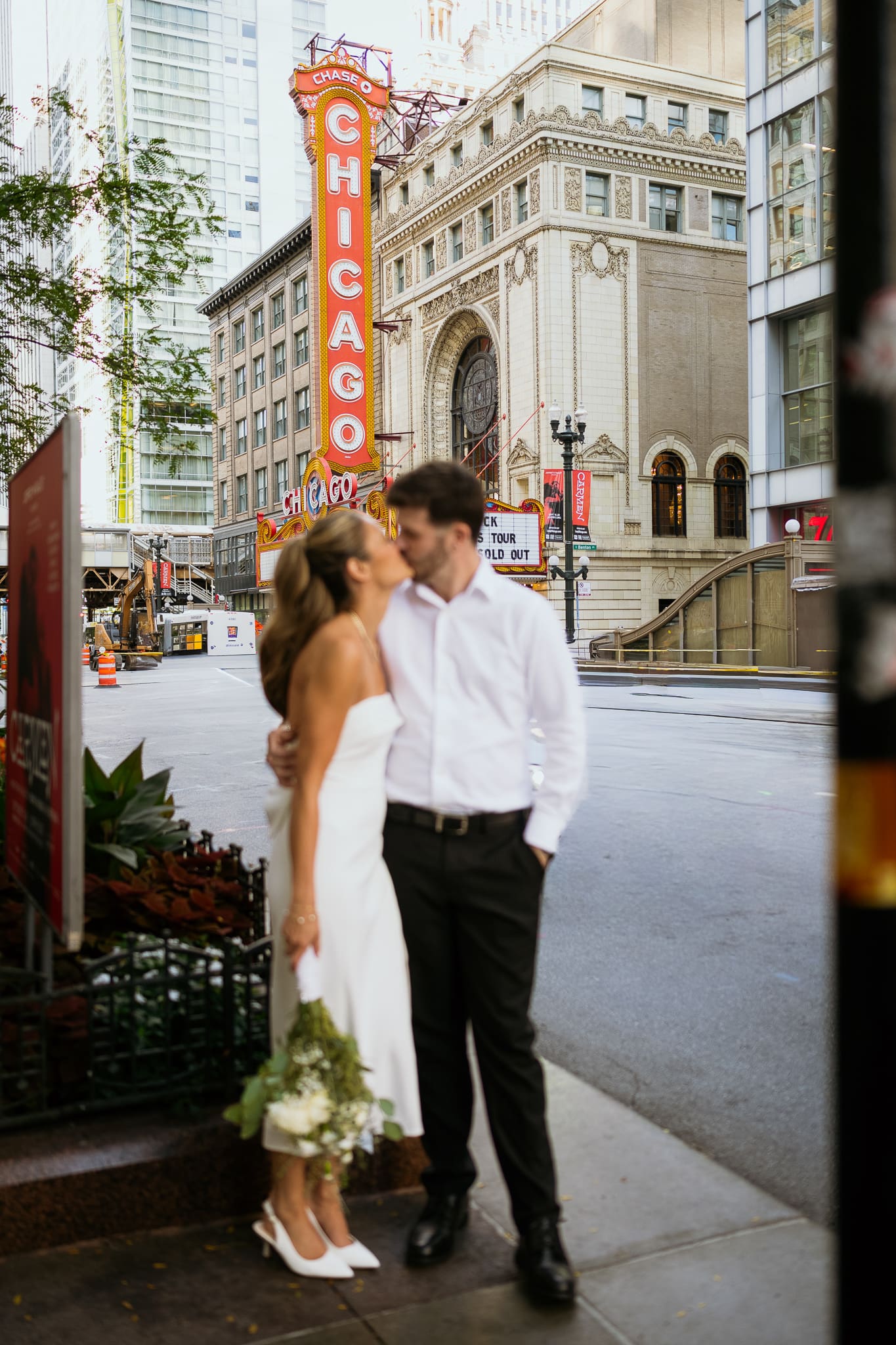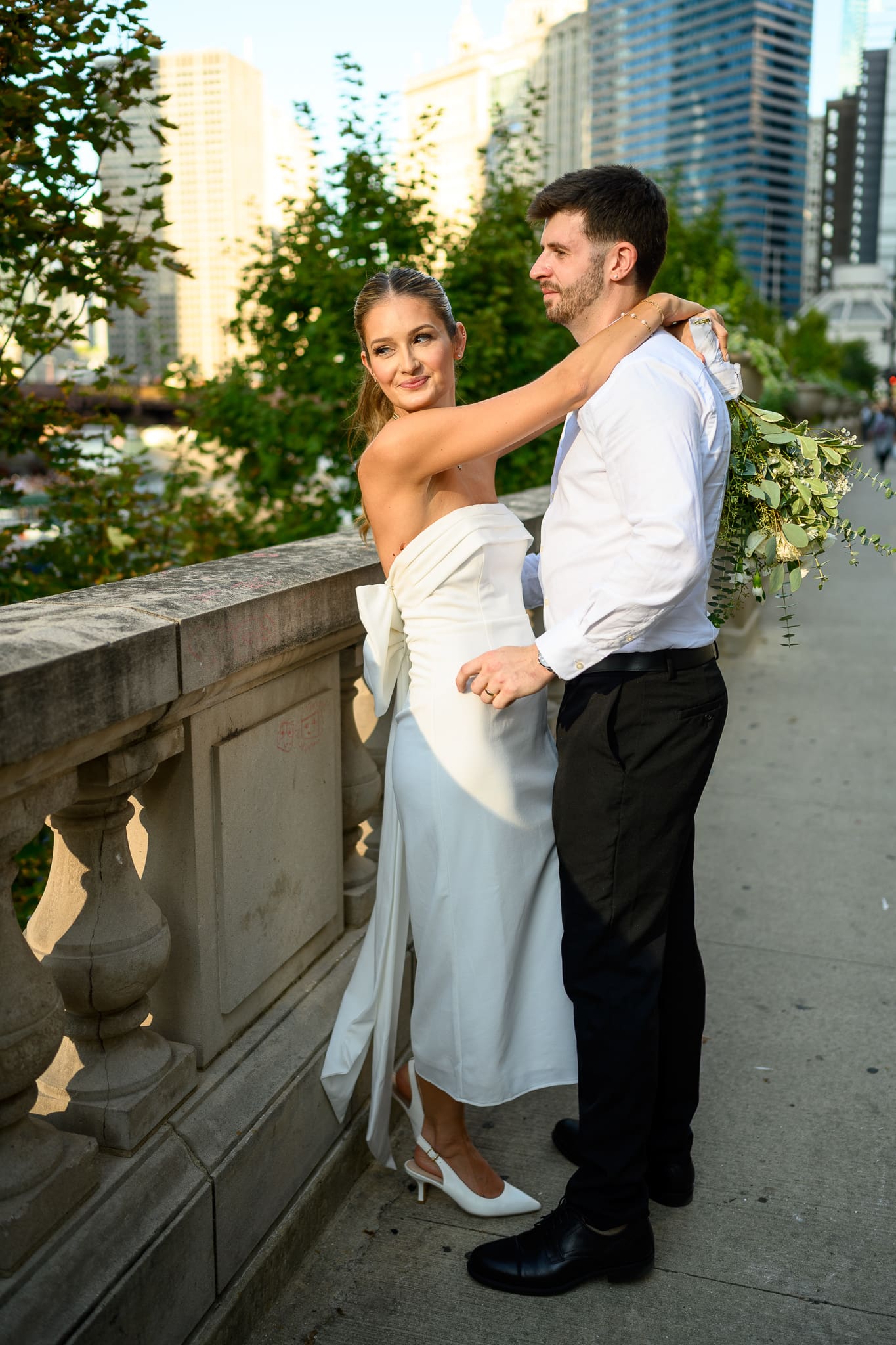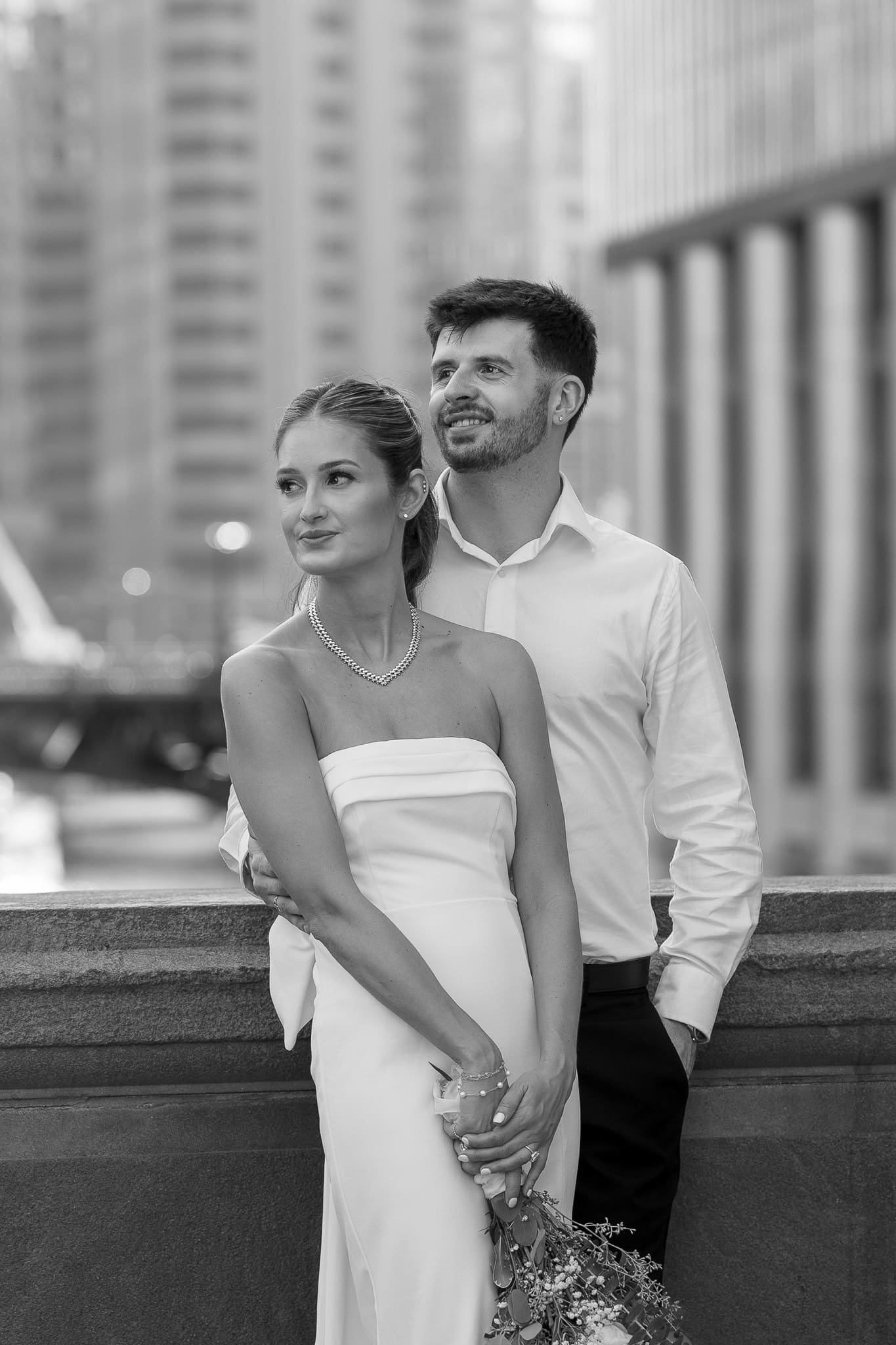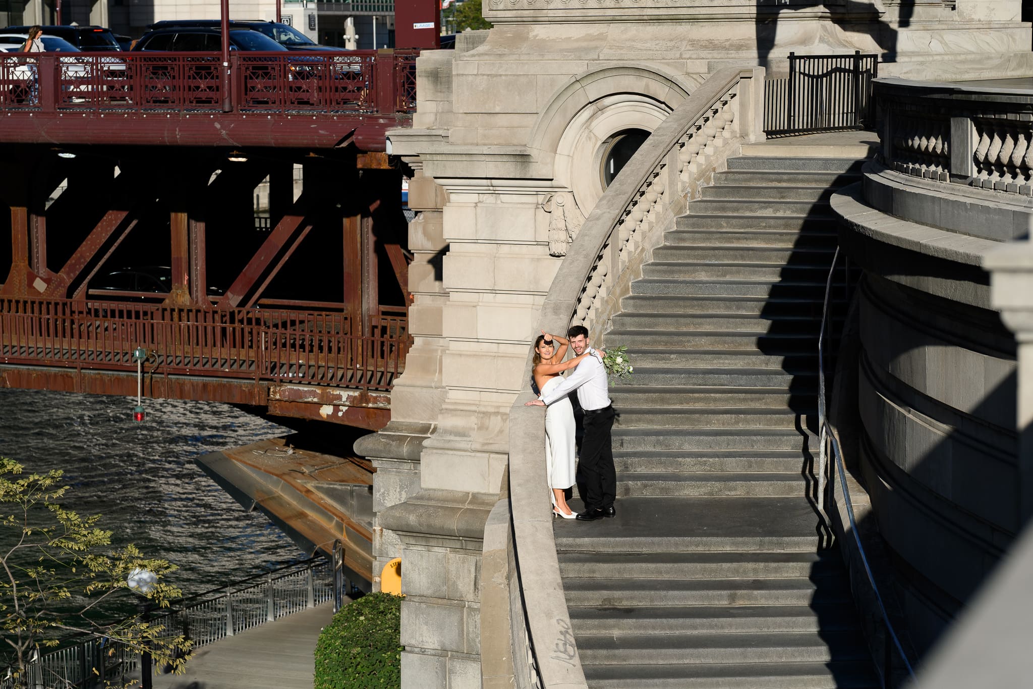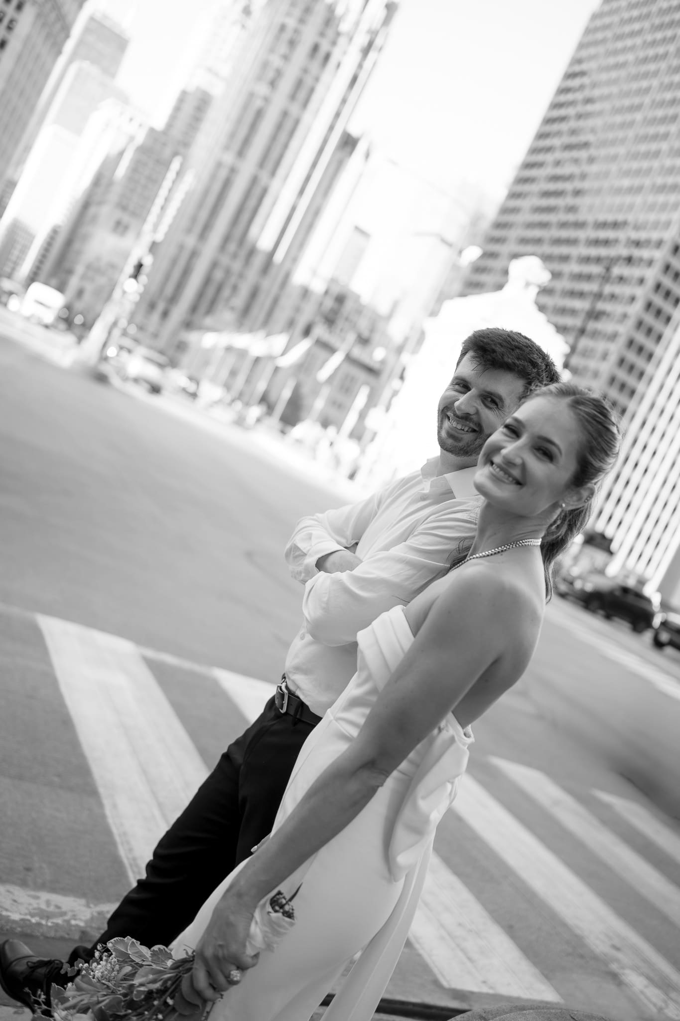 We ended near the Wrigley Building, one of Chicago’s most recognizable landmarks. Finishing their elopement session there felt like the perfect close — iconic, elegant, and deeply connected to the city that framed their day.