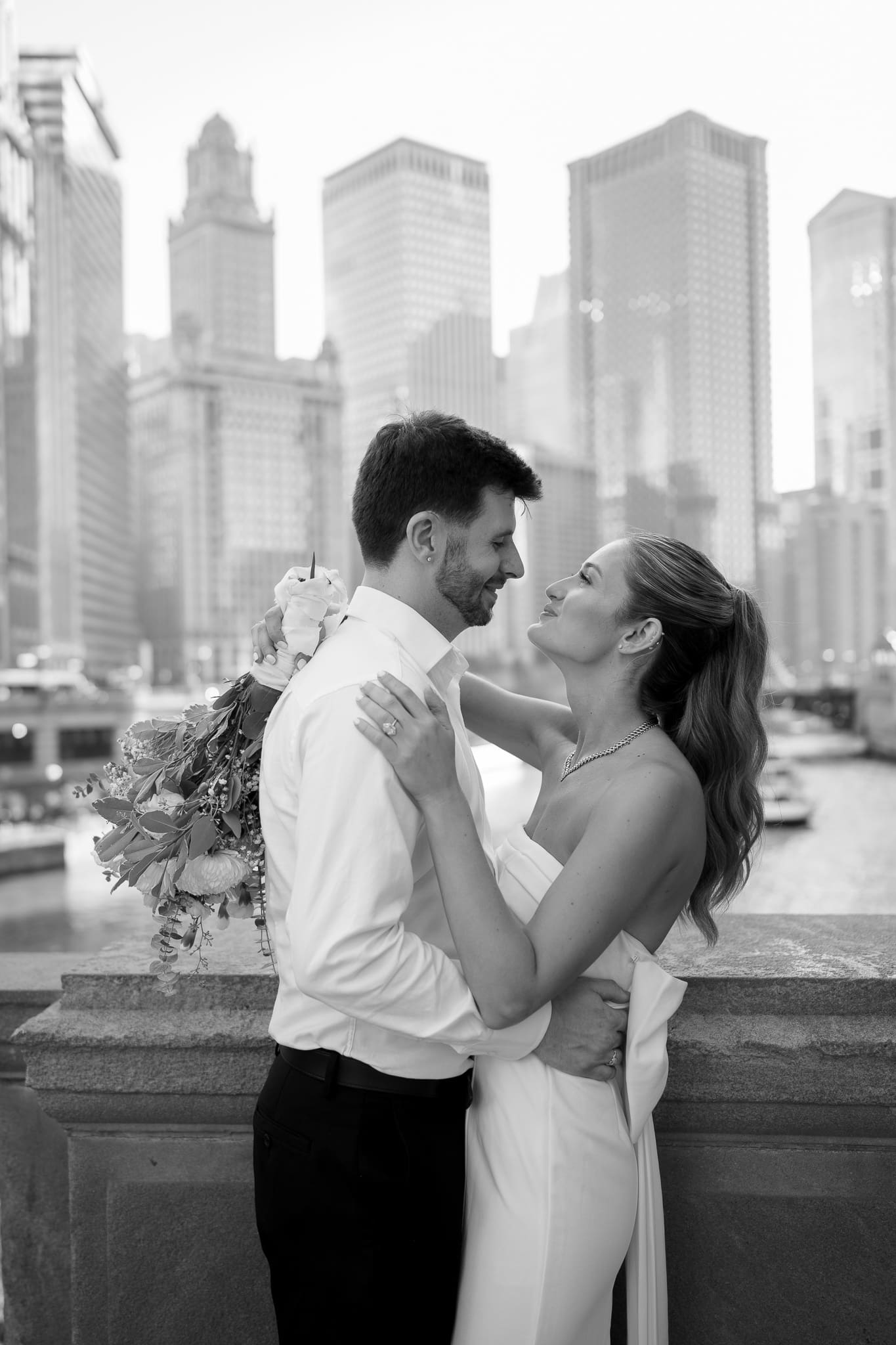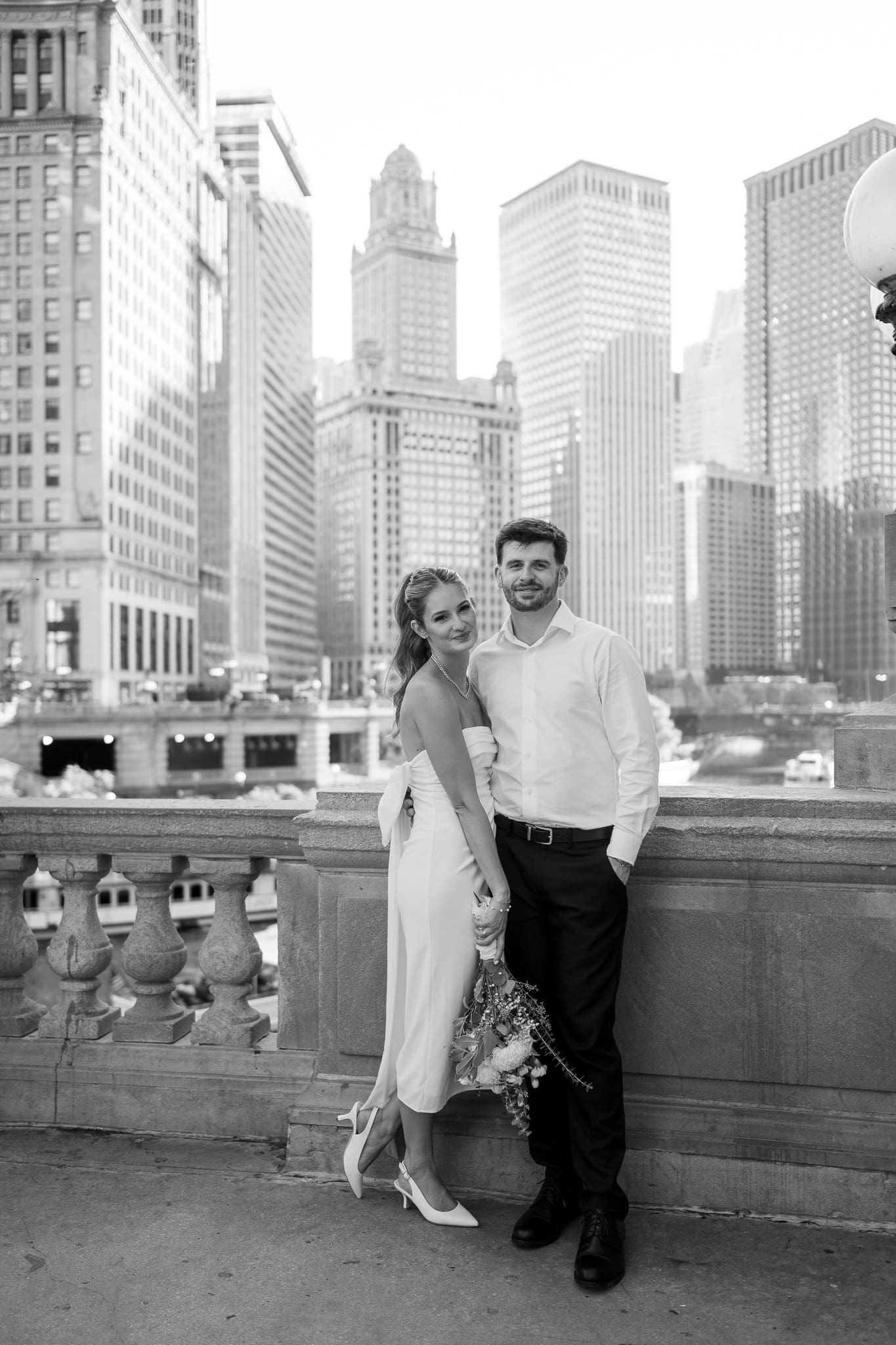 Hayley and Dan’s elopement in downtown Chicago was an intimate, city-centered celebration set among some of the most iconic architecture in the Chicago Loop. Their day focused on being present together and experiencing the city they chose to get married in, moving through meaningful locations that felt personal and timeless.