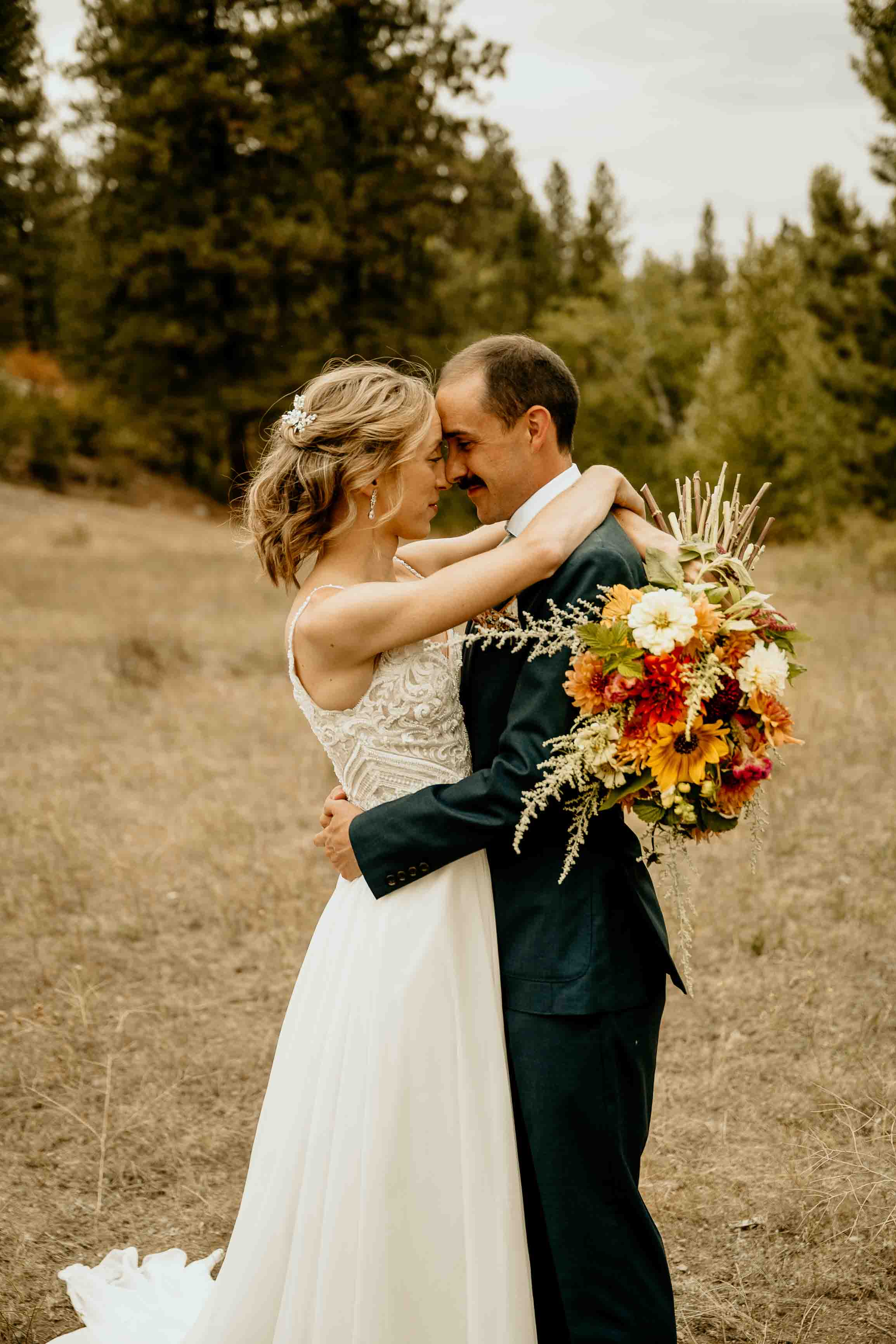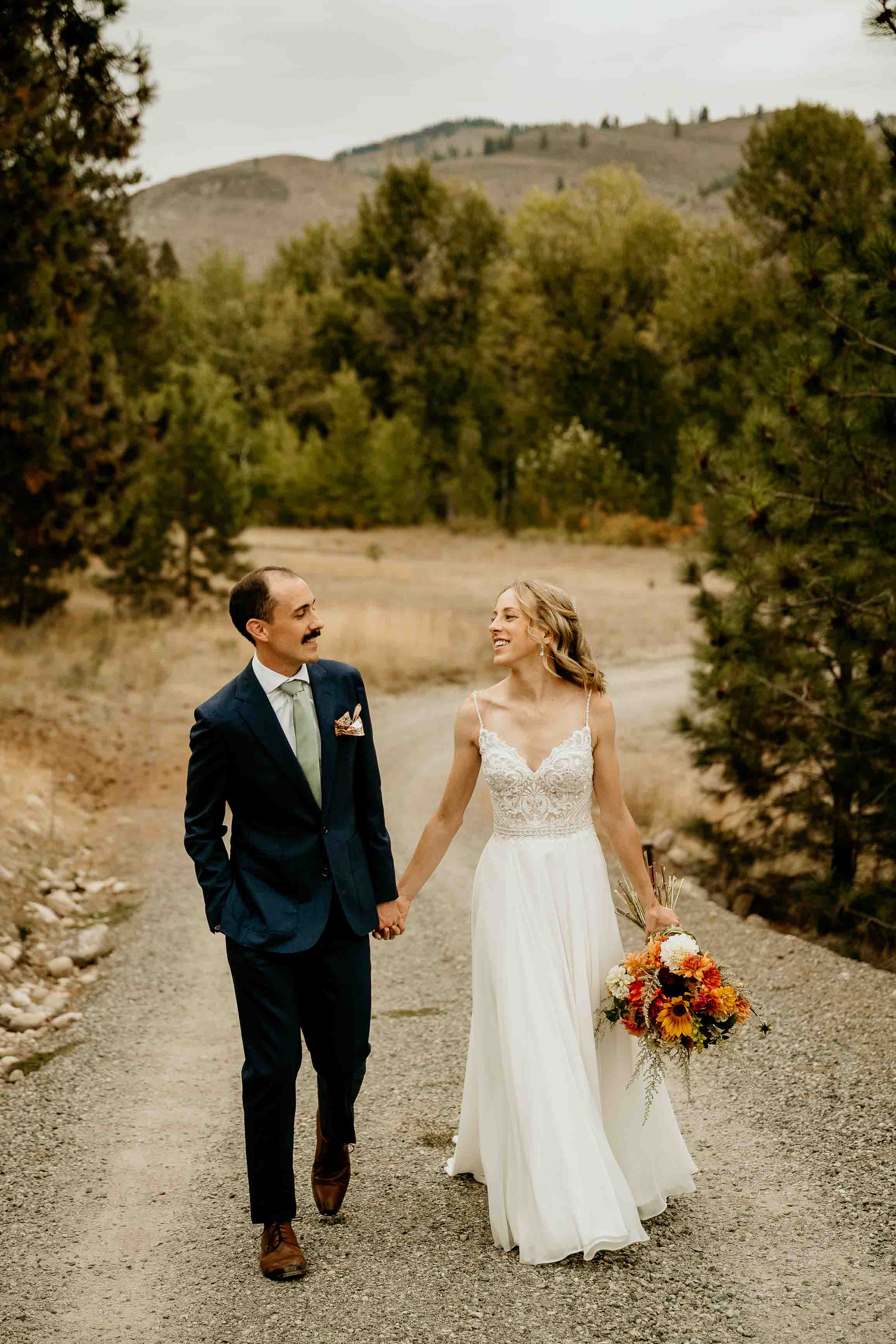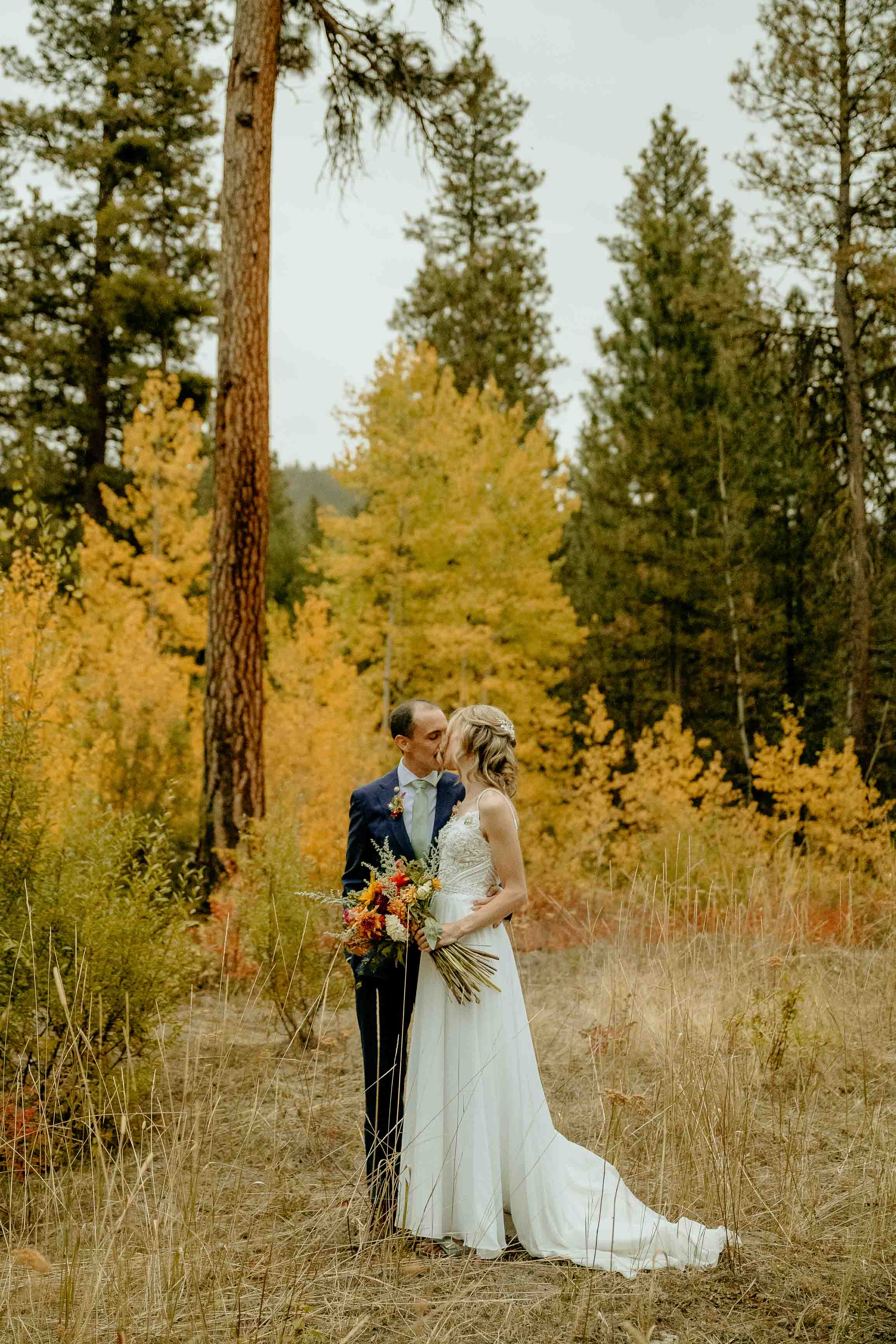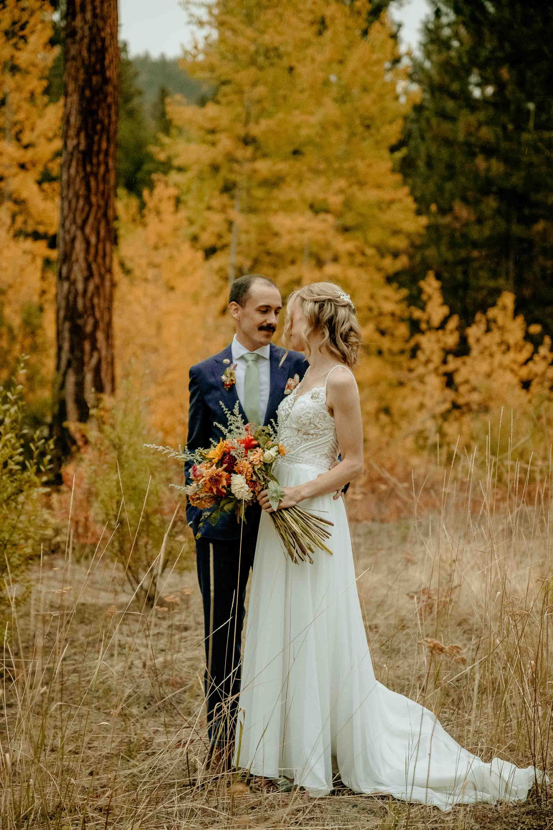 Larch season added so much character to the day. The golden larches throughout the Cascades brought warmth and color to the fall landscape, making this Winthrop elopement especially memorable. Fall offers a beautiful backdrop for a Cascade Mountains elopement, and the seasonal change elevated the setting in a simple, natural way.