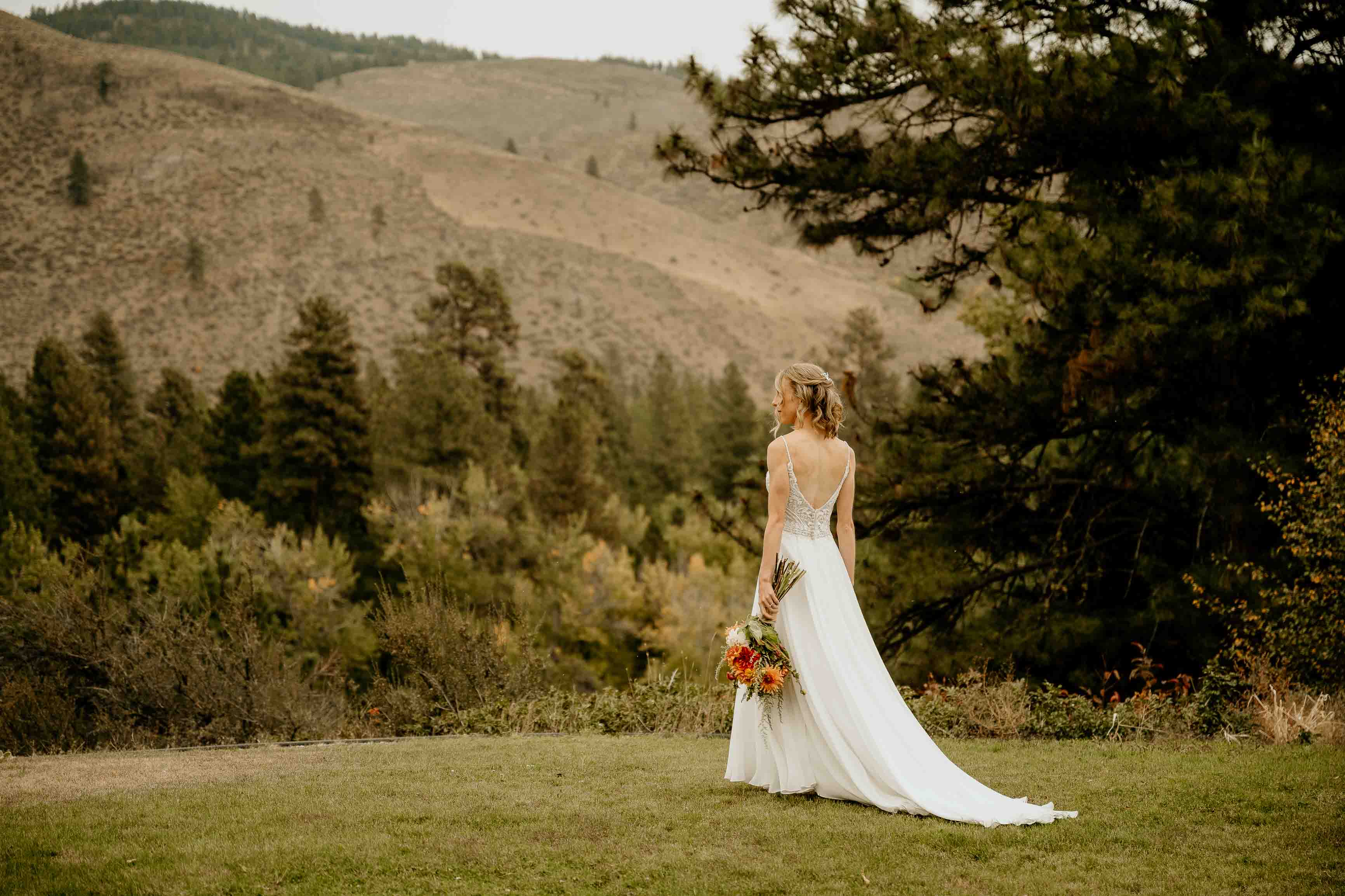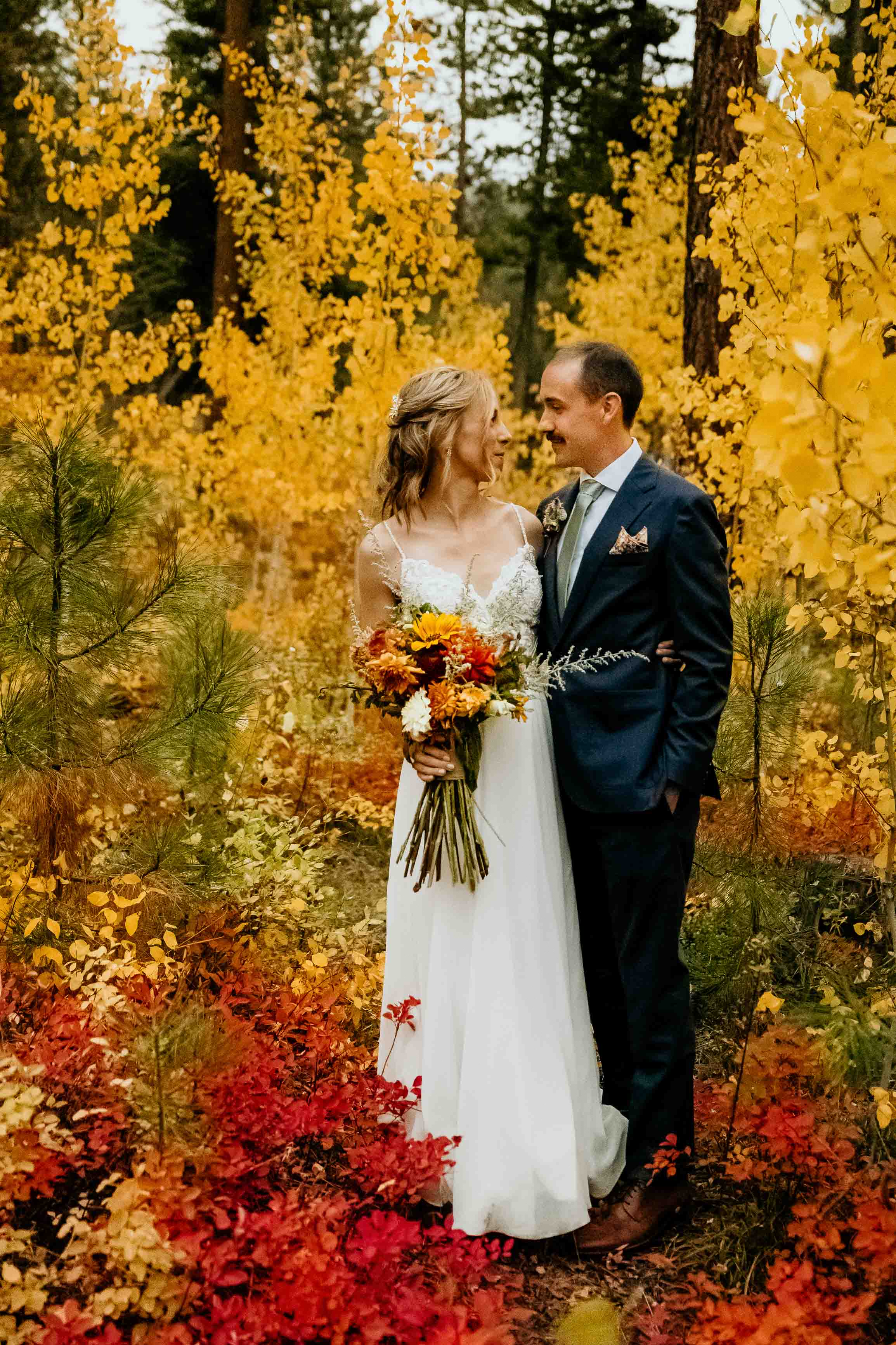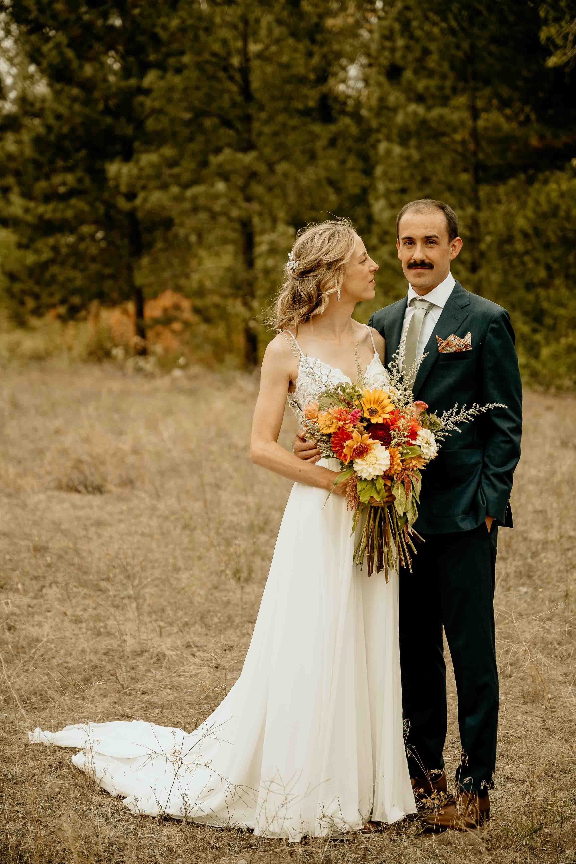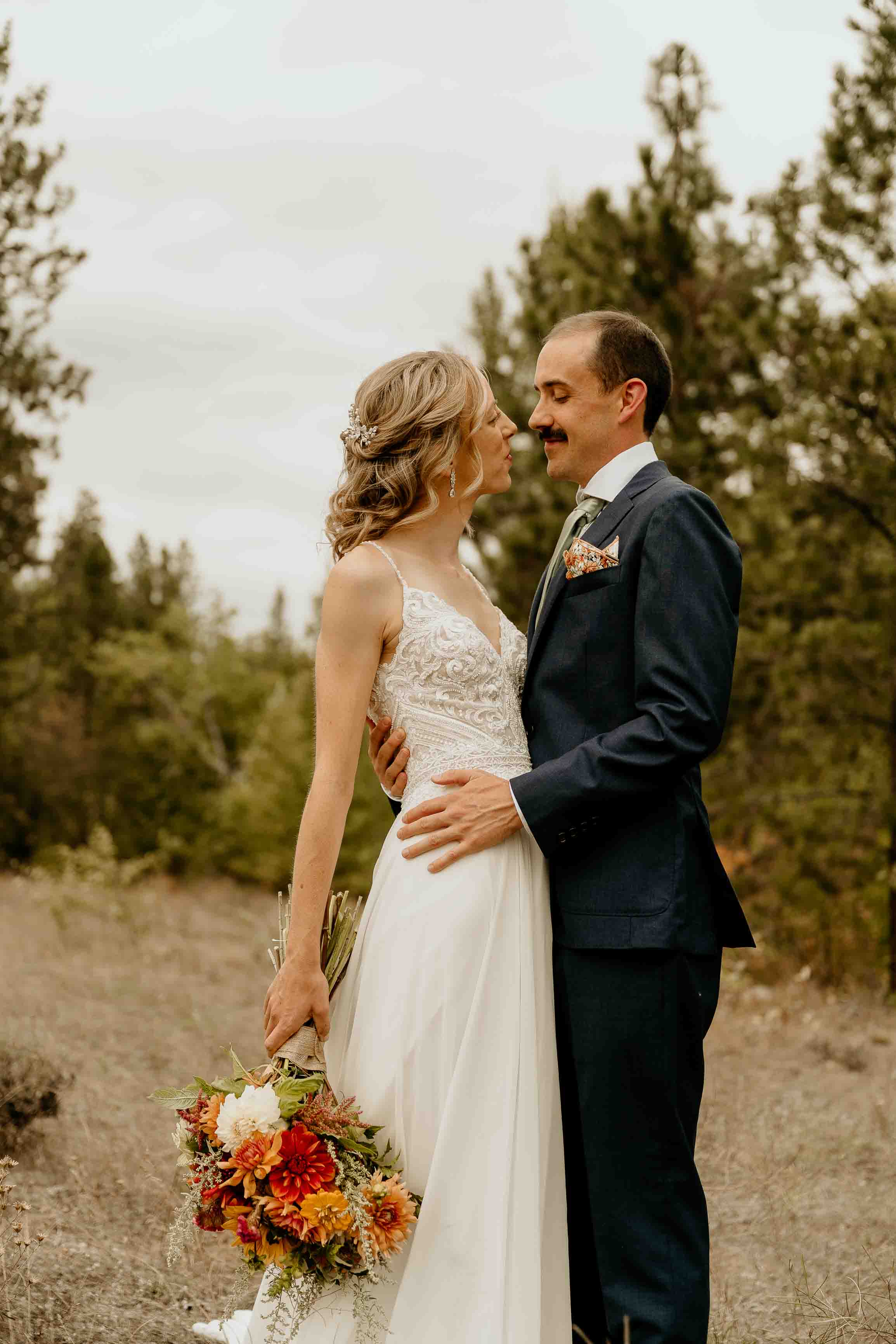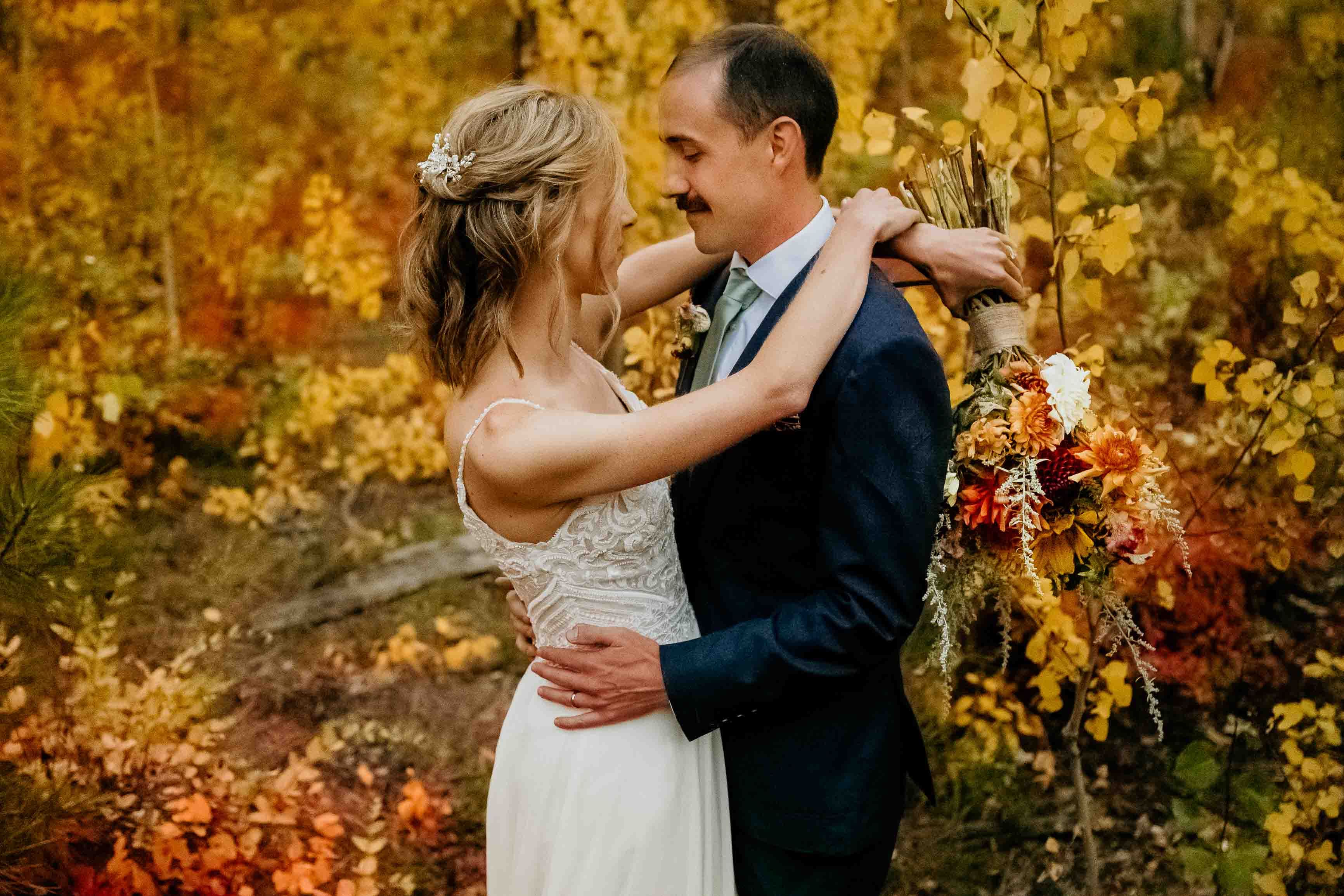 Larch season added so much character to the day. The golden larches throughout the Cascades brought warmth and color to the fall landscape, making this Winthrop elopement especially memorable. Fall offers a beautiful backdrop for a Cascade Mountains elopement, and the seasonal change elevated the setting in a simple, natural way.