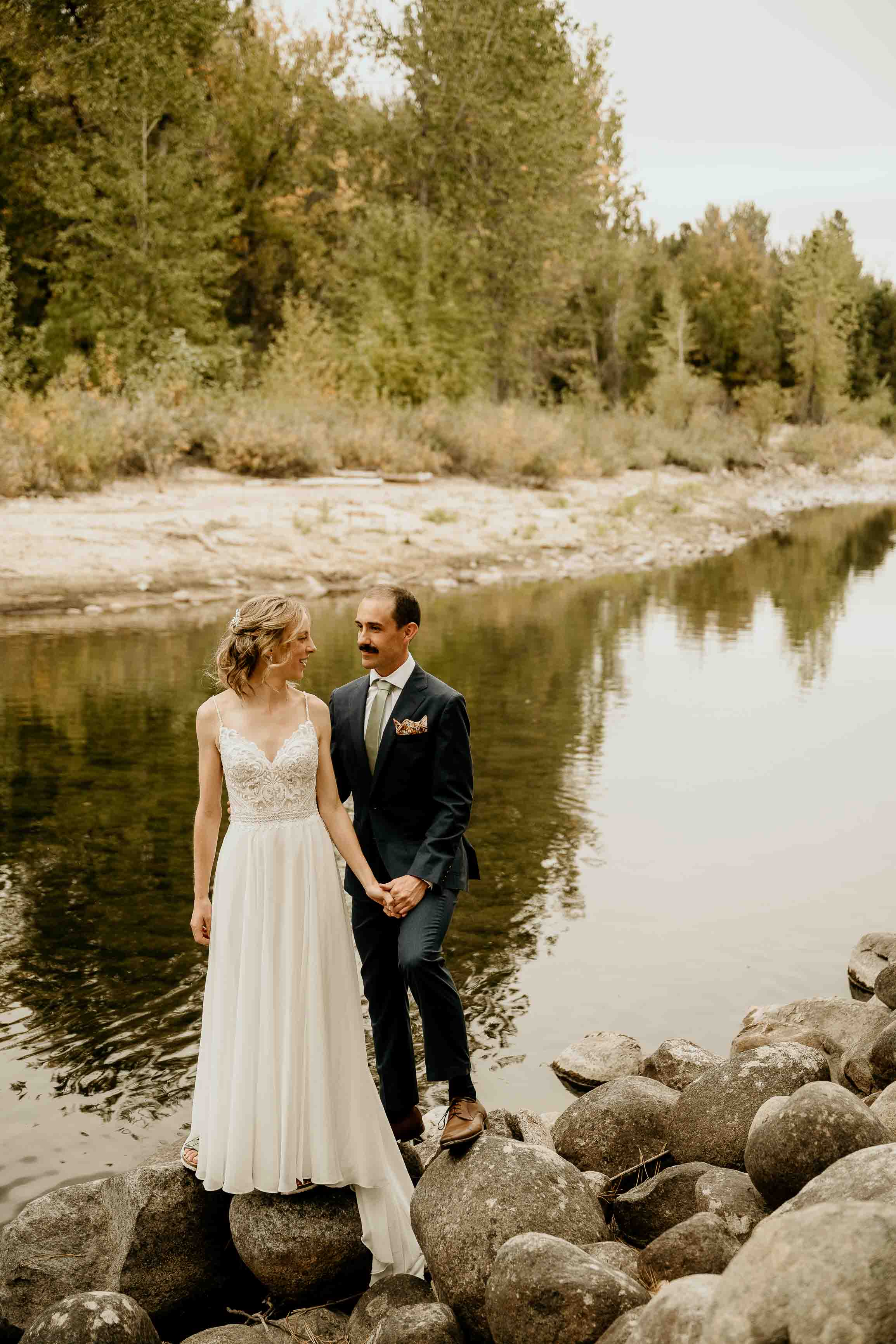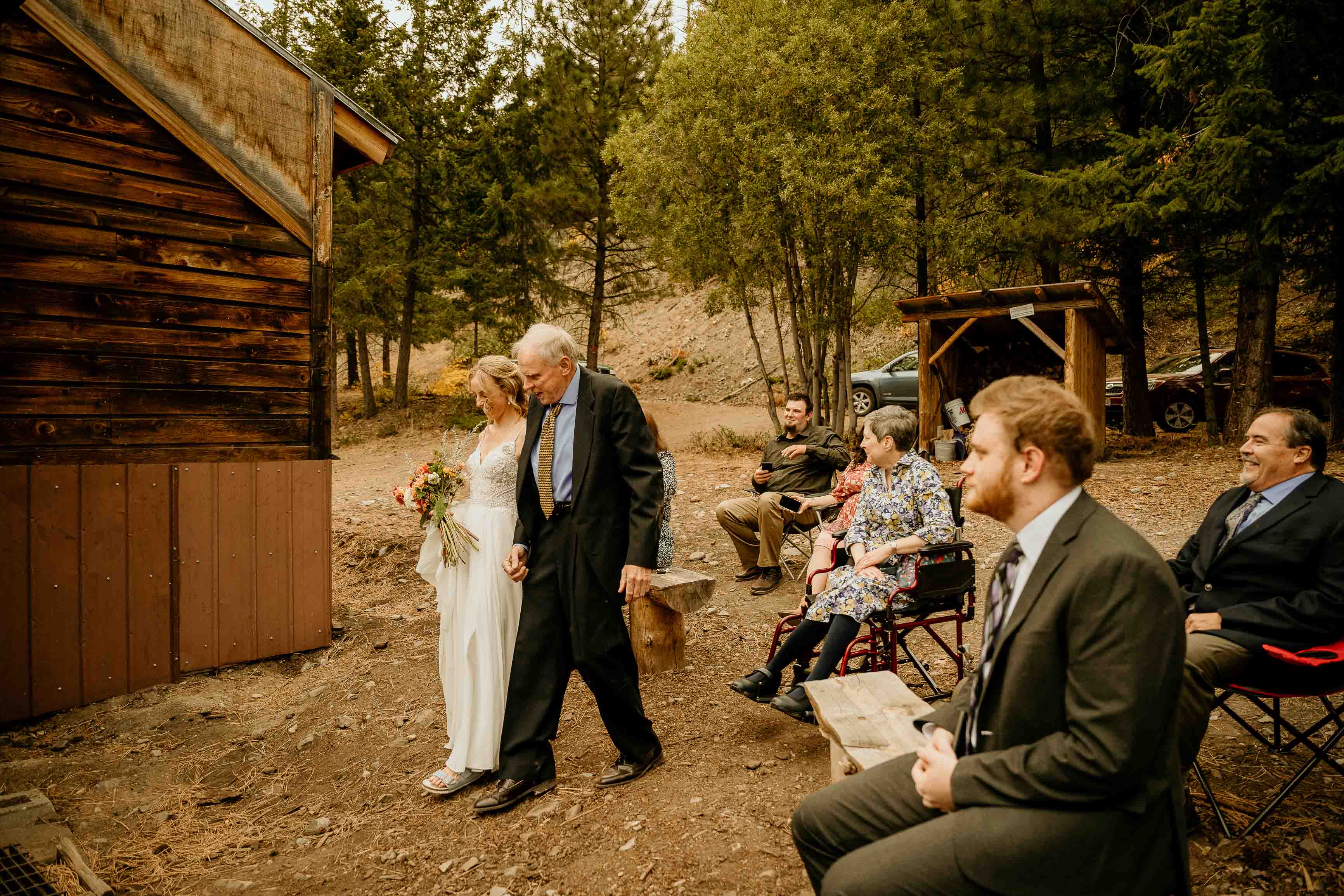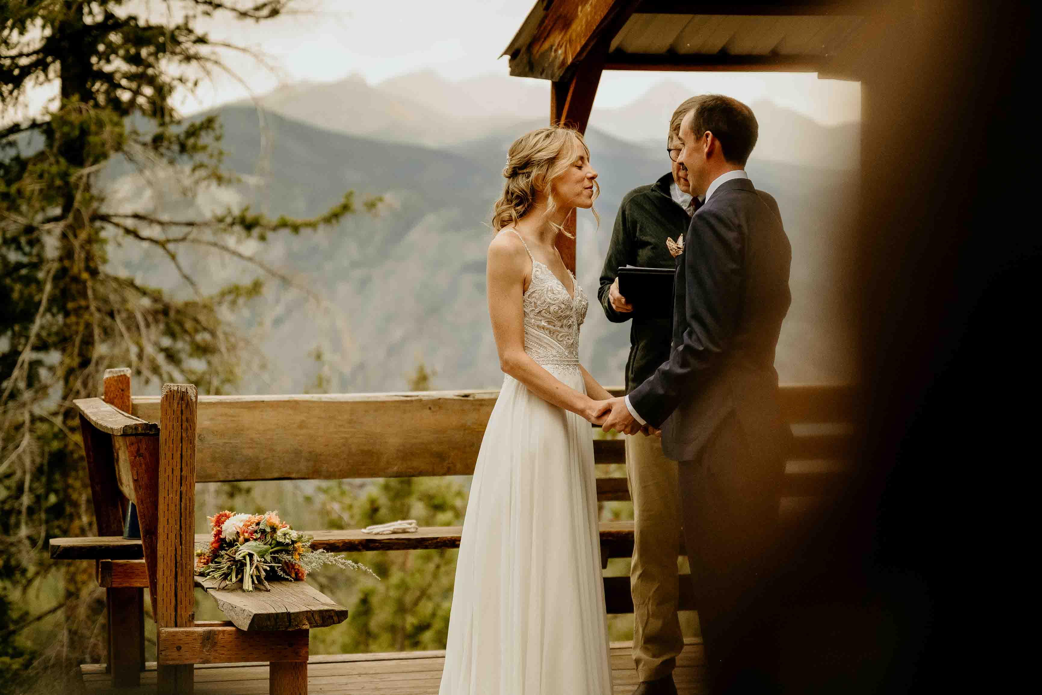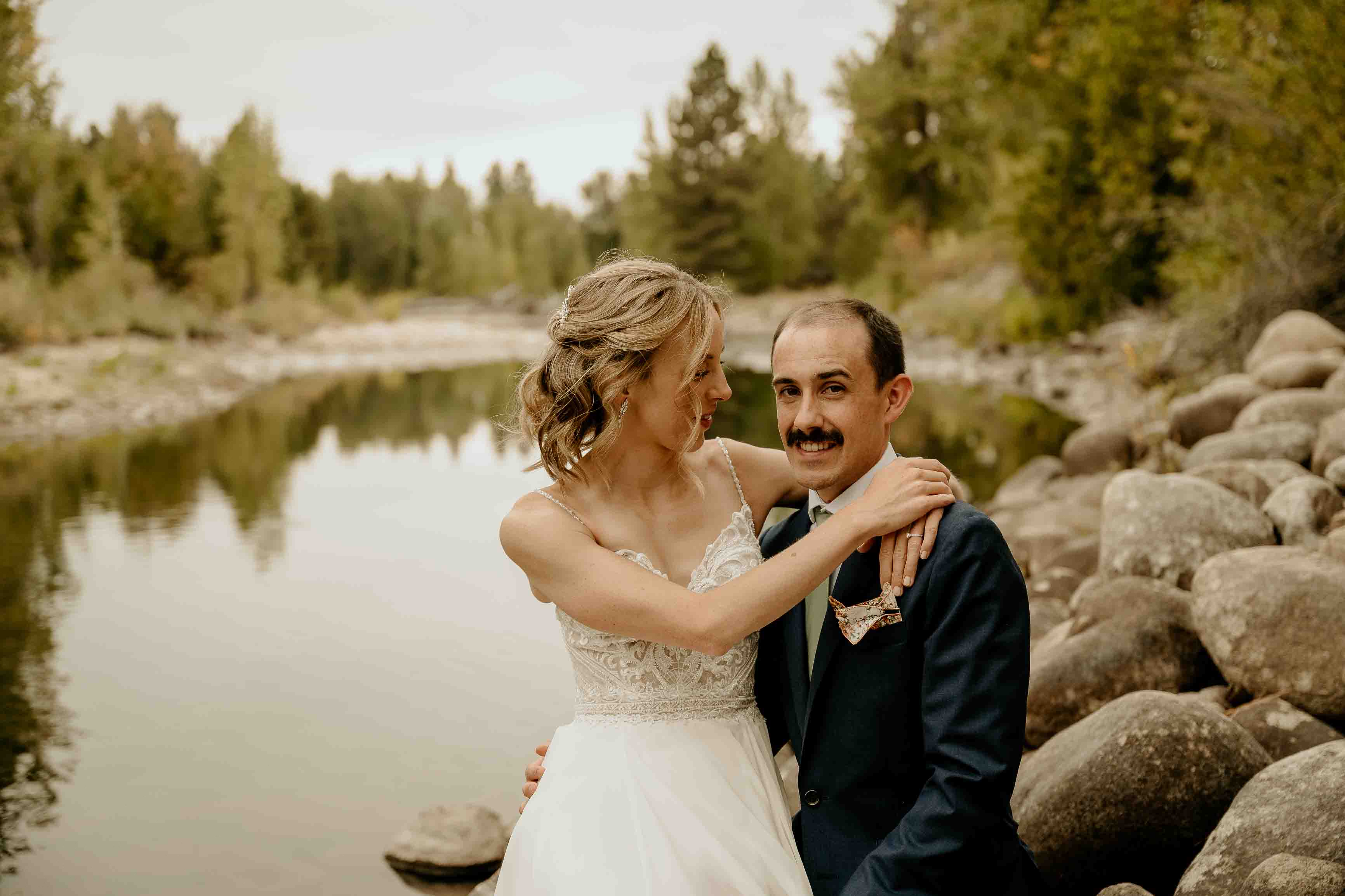 They began the day with a first look along the river near the cabin where they got ready. With the sound of the water and the stillness of the forest, it was a calm, meaningful moment before heading into the mountains for their ceremony.