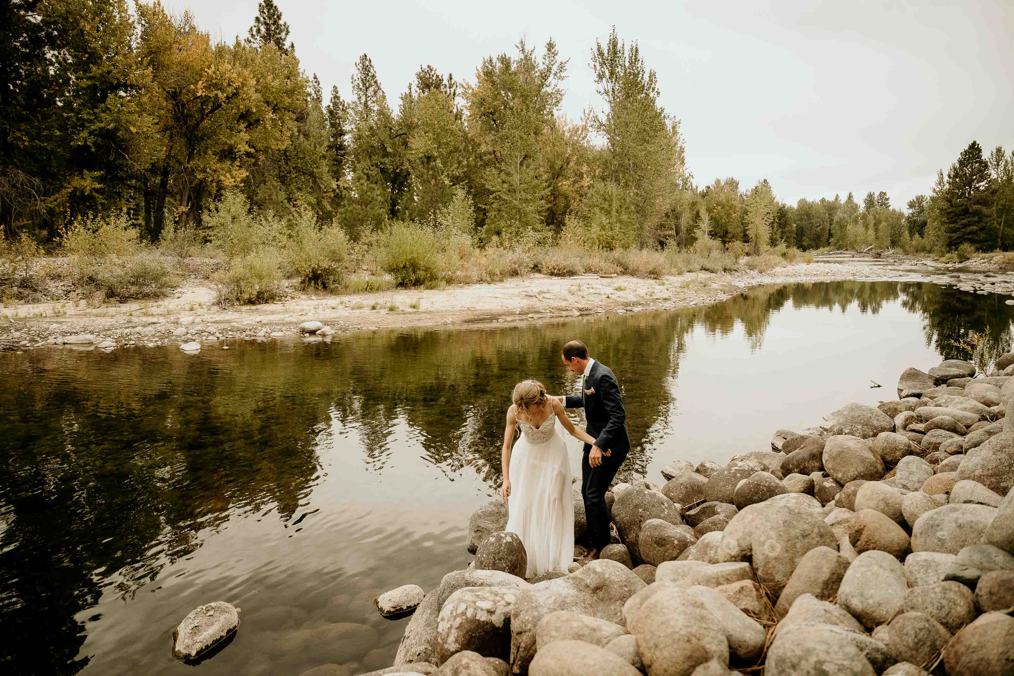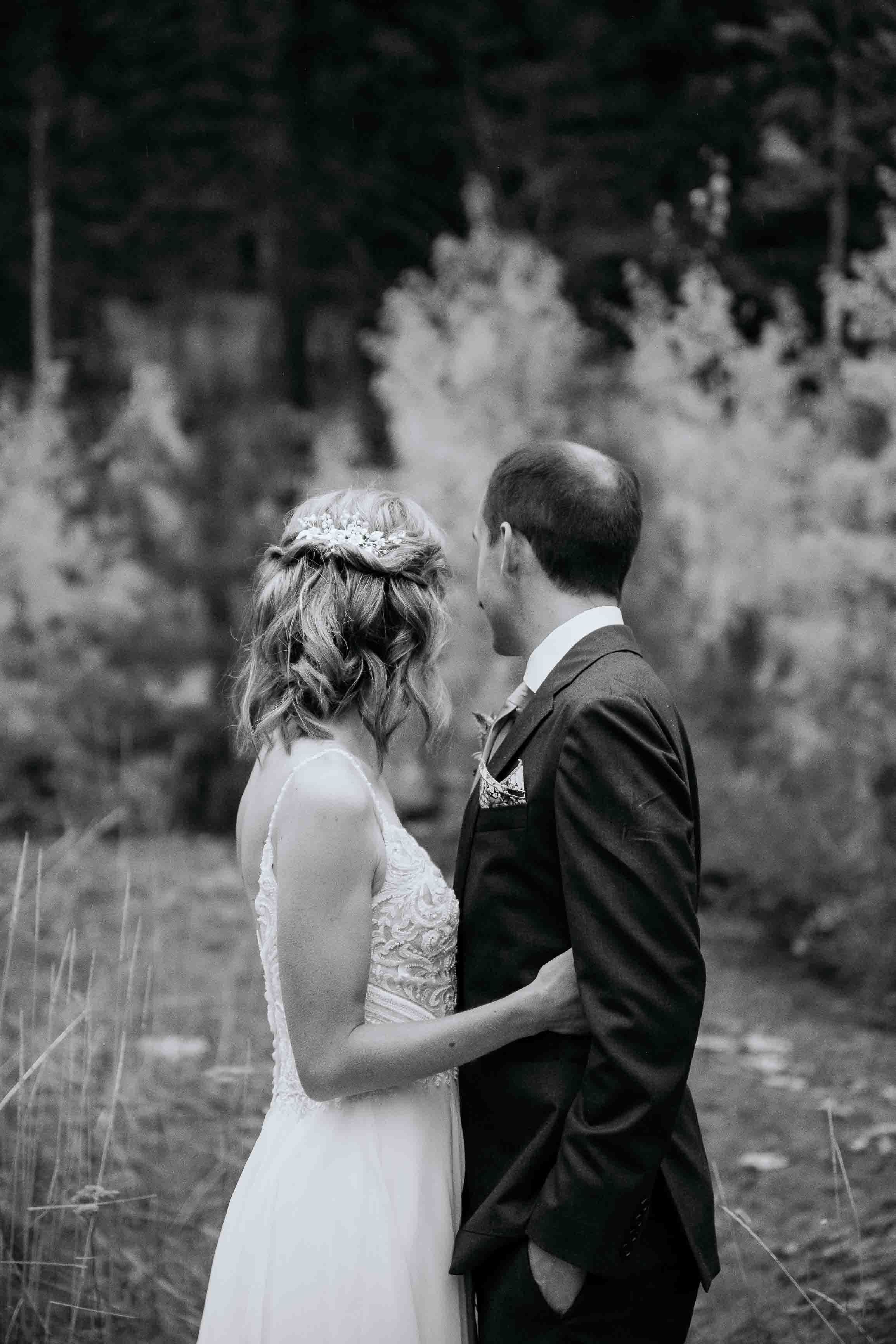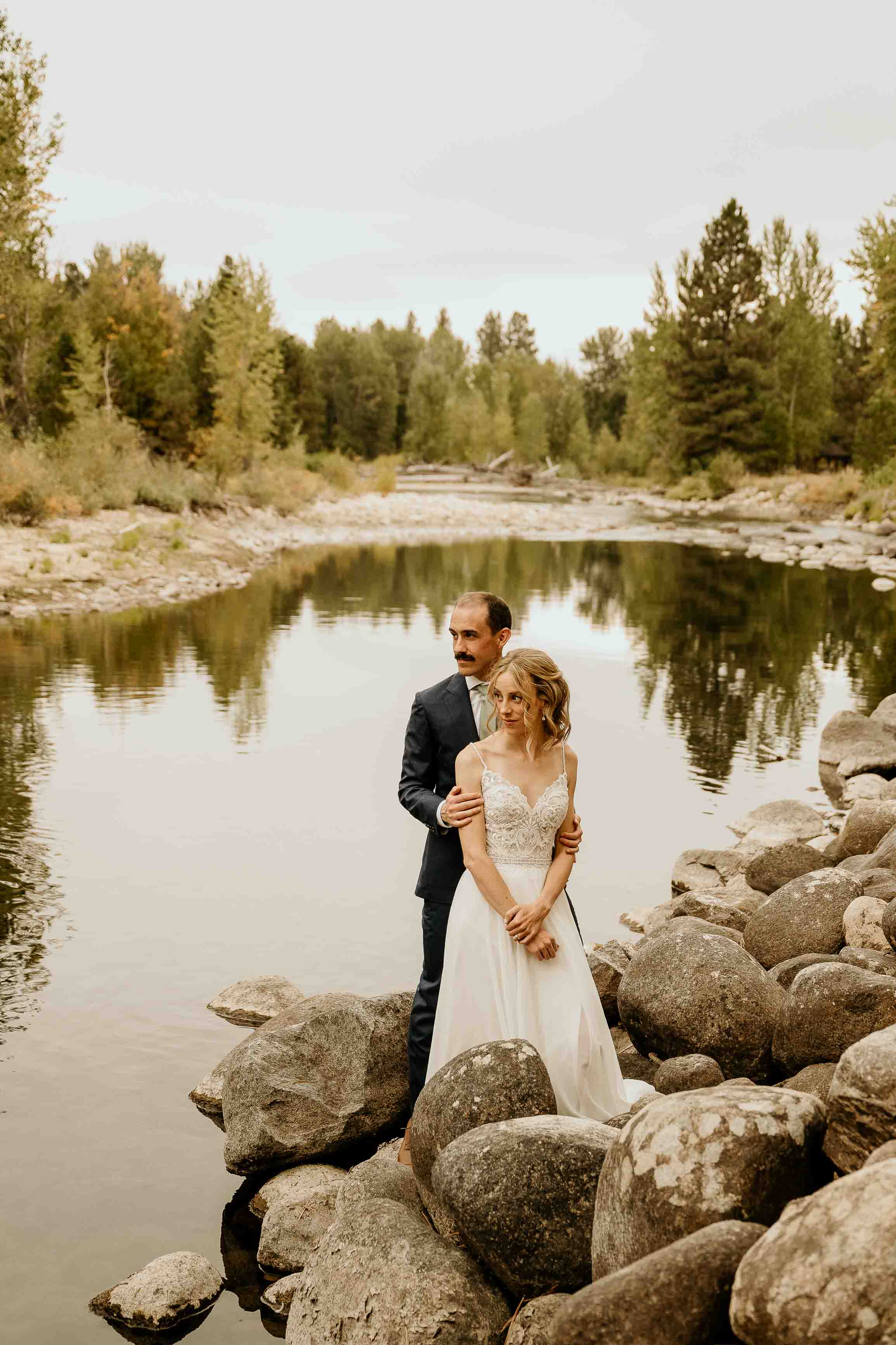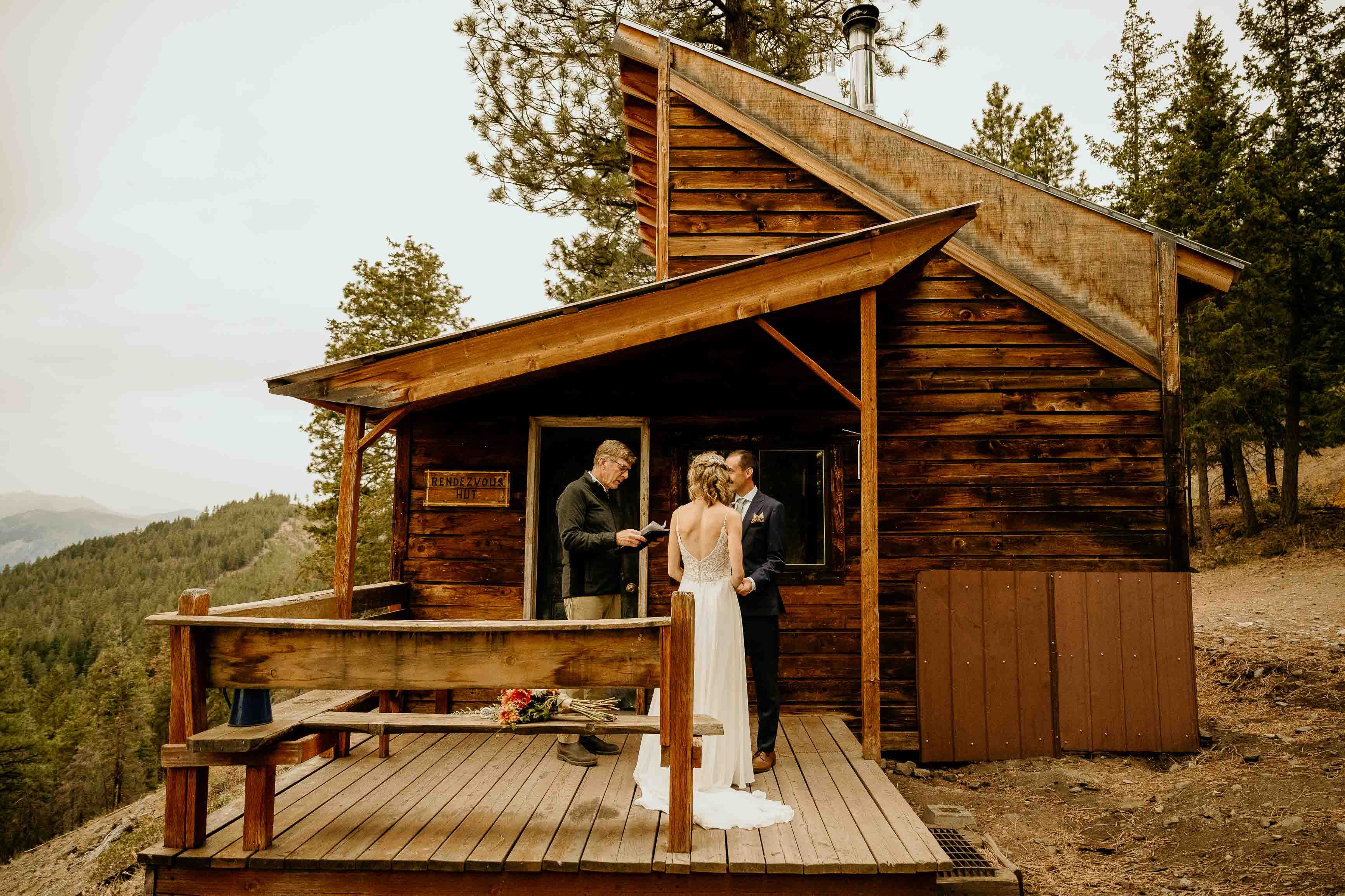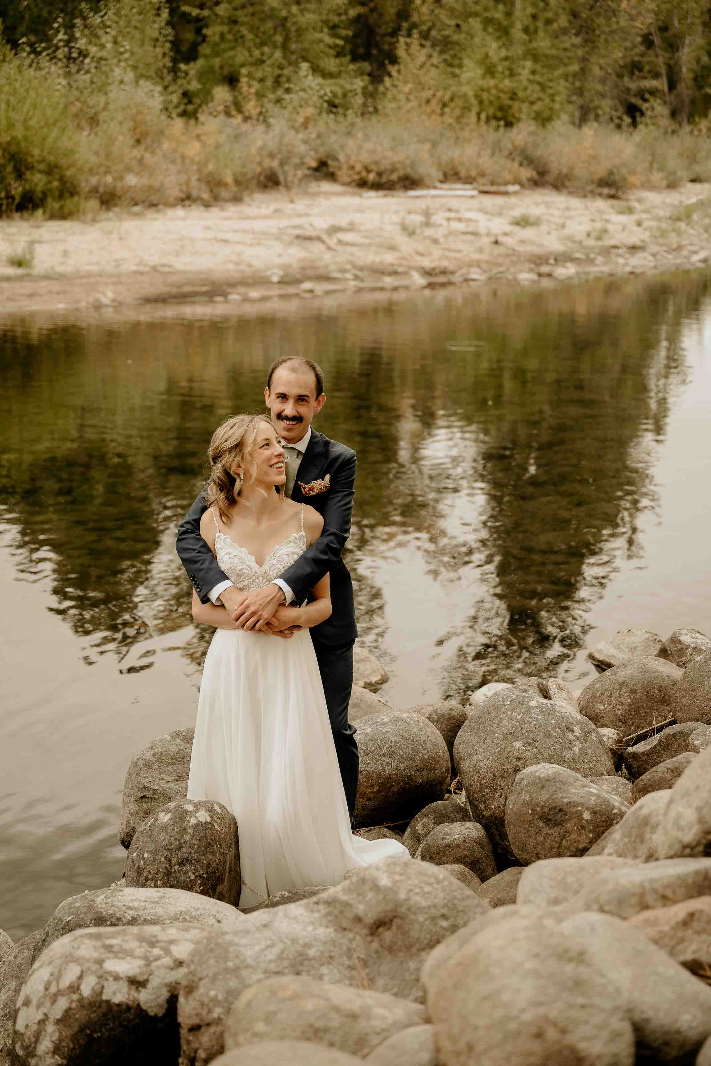 They began the day with a first look along the river near the cabin where they got ready. With the sound of the water and the stillness of the forest, it was a calm, meaningful moment before heading into the mountains for their ceremony.