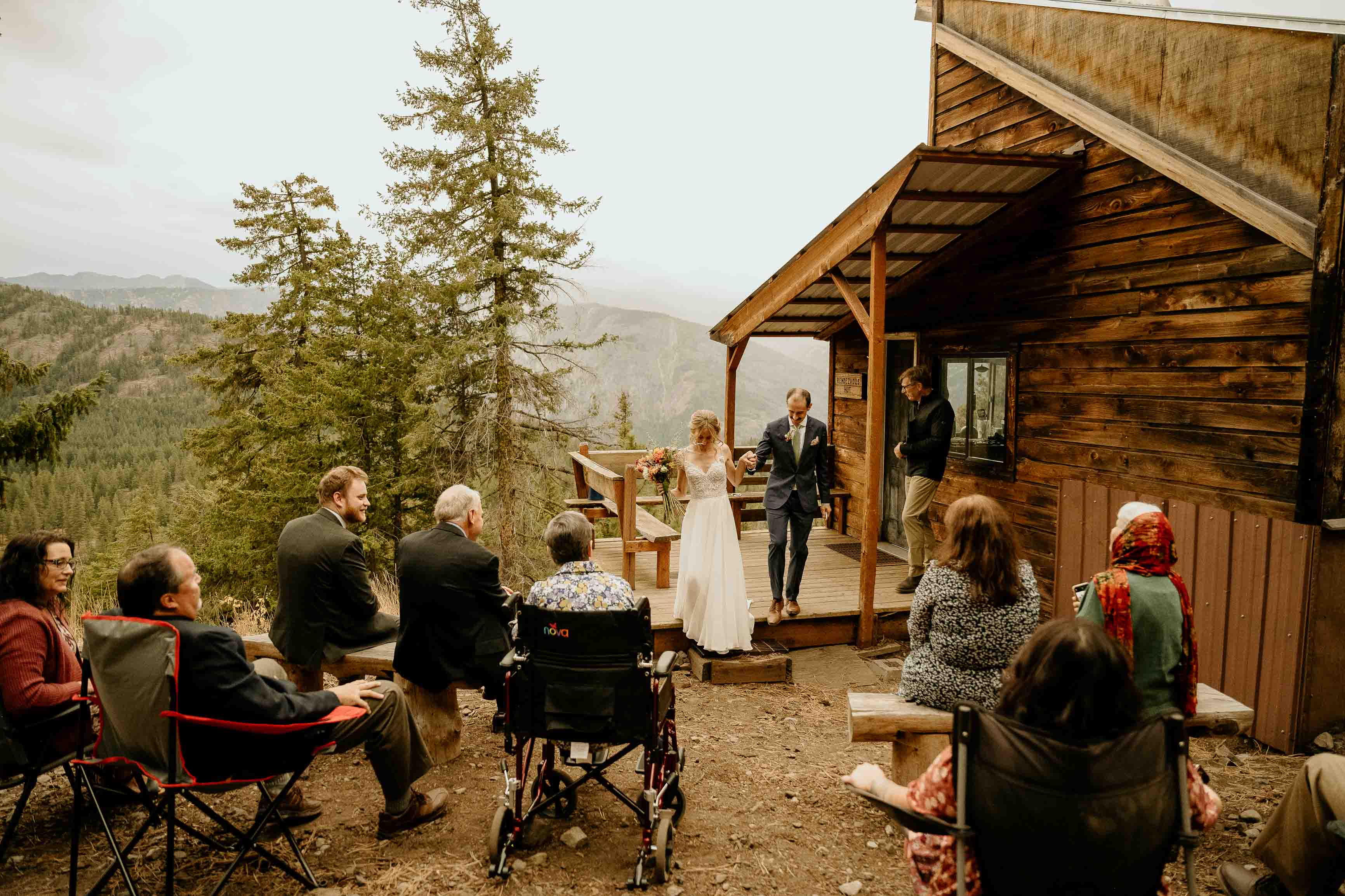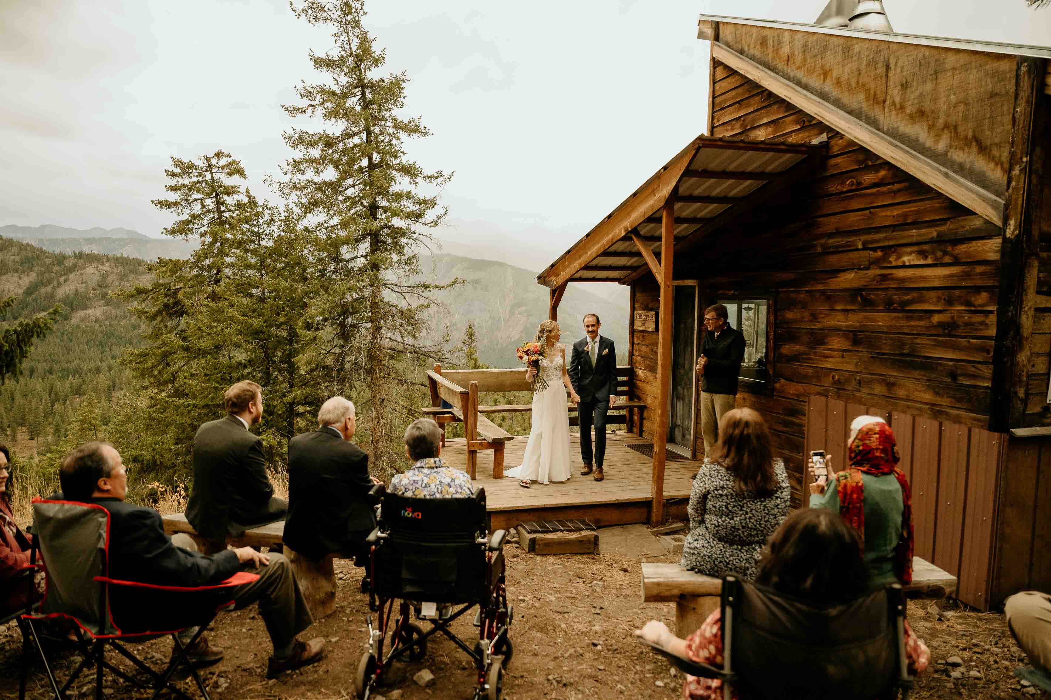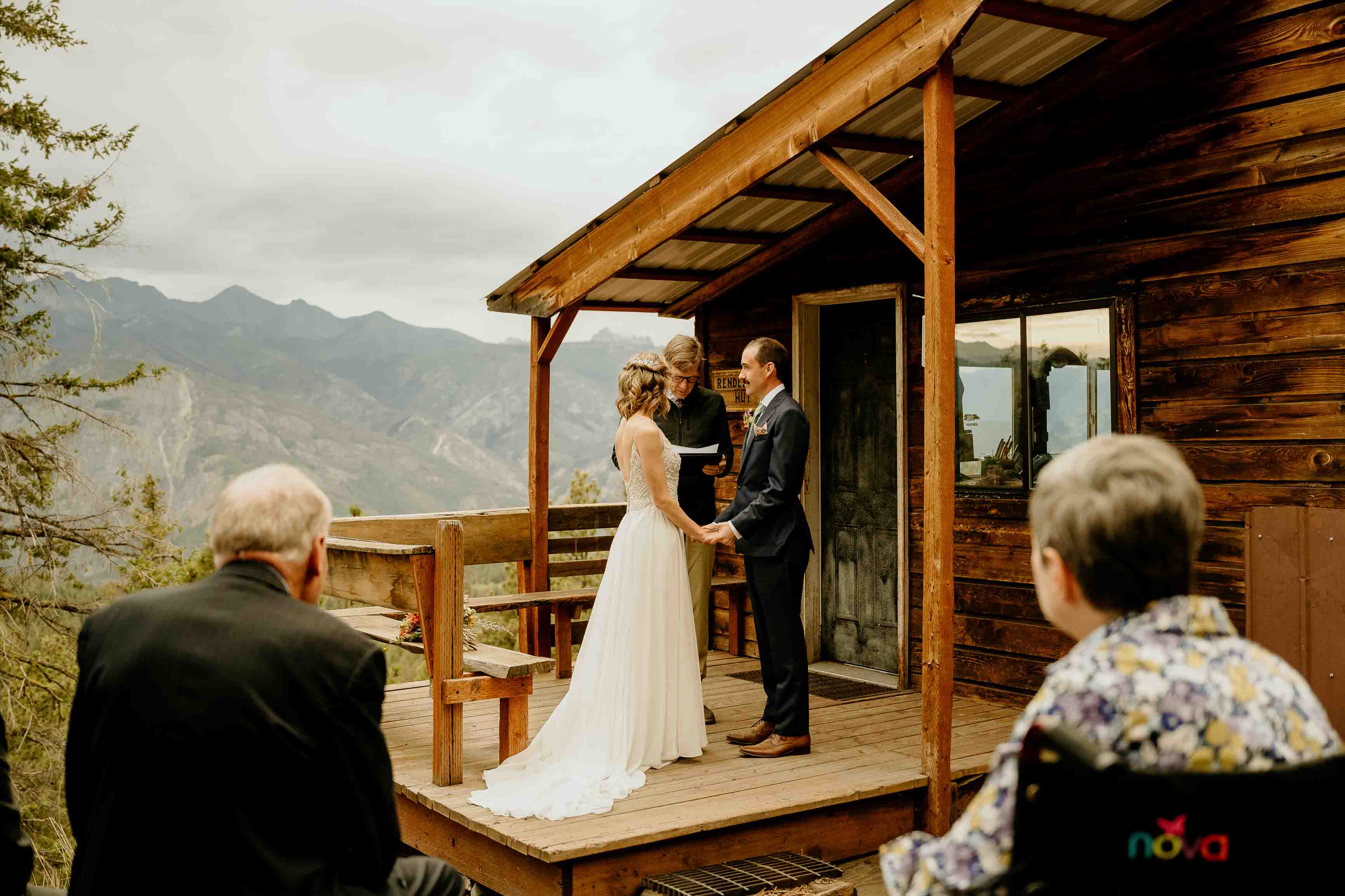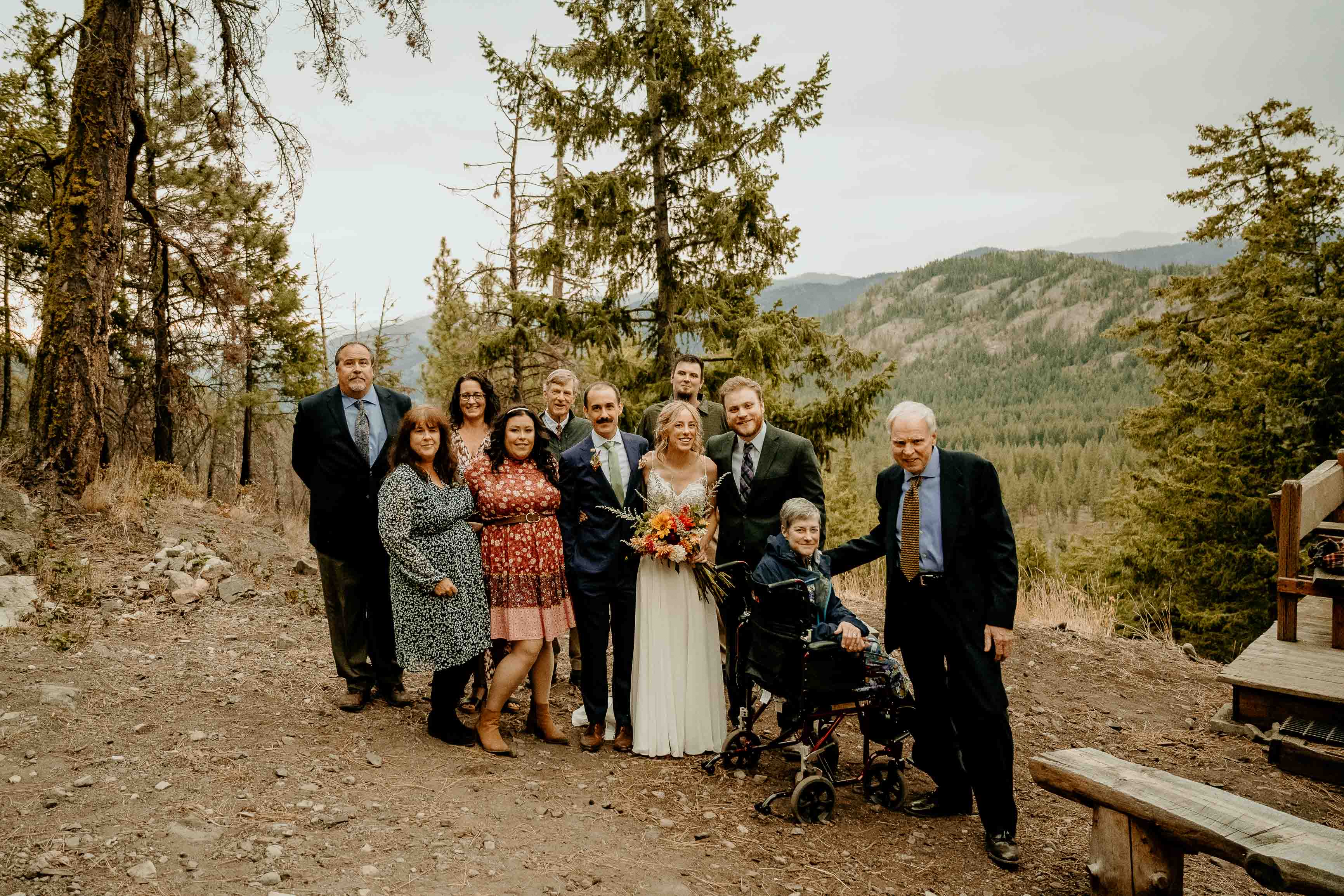 Their ceremony took place at the top of Rendezvous Hut Trail, one of the most scenic locations near Winthrop in the North Cascades. Lizzy and Josh exchanged vows with a small group of their closest family and friends present, keeping the focus on connection and the significance of the moment rather than a large production.