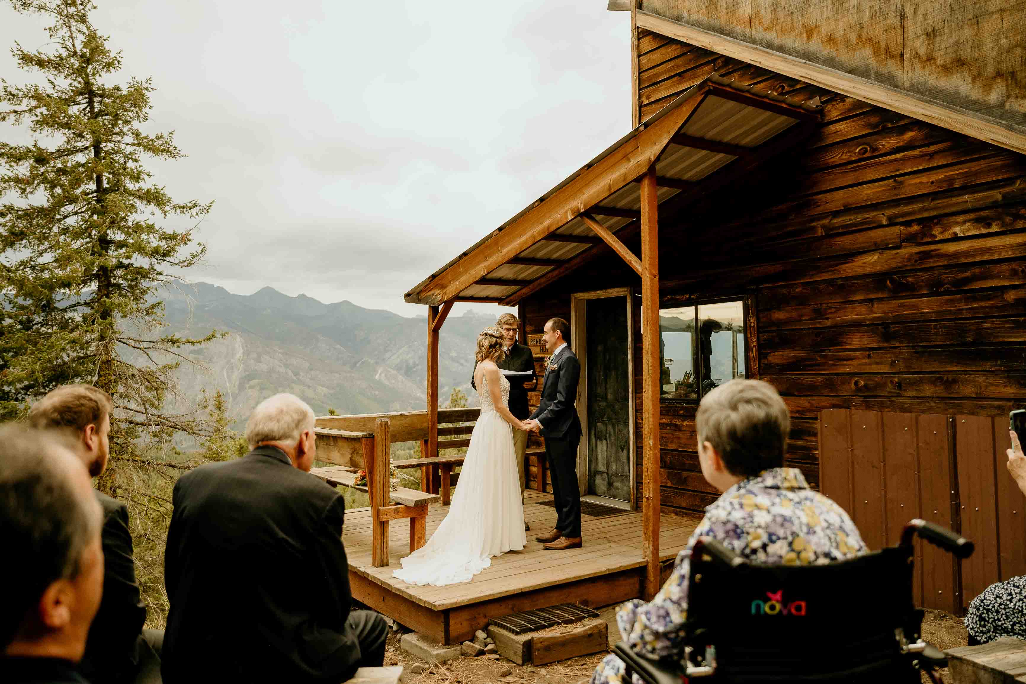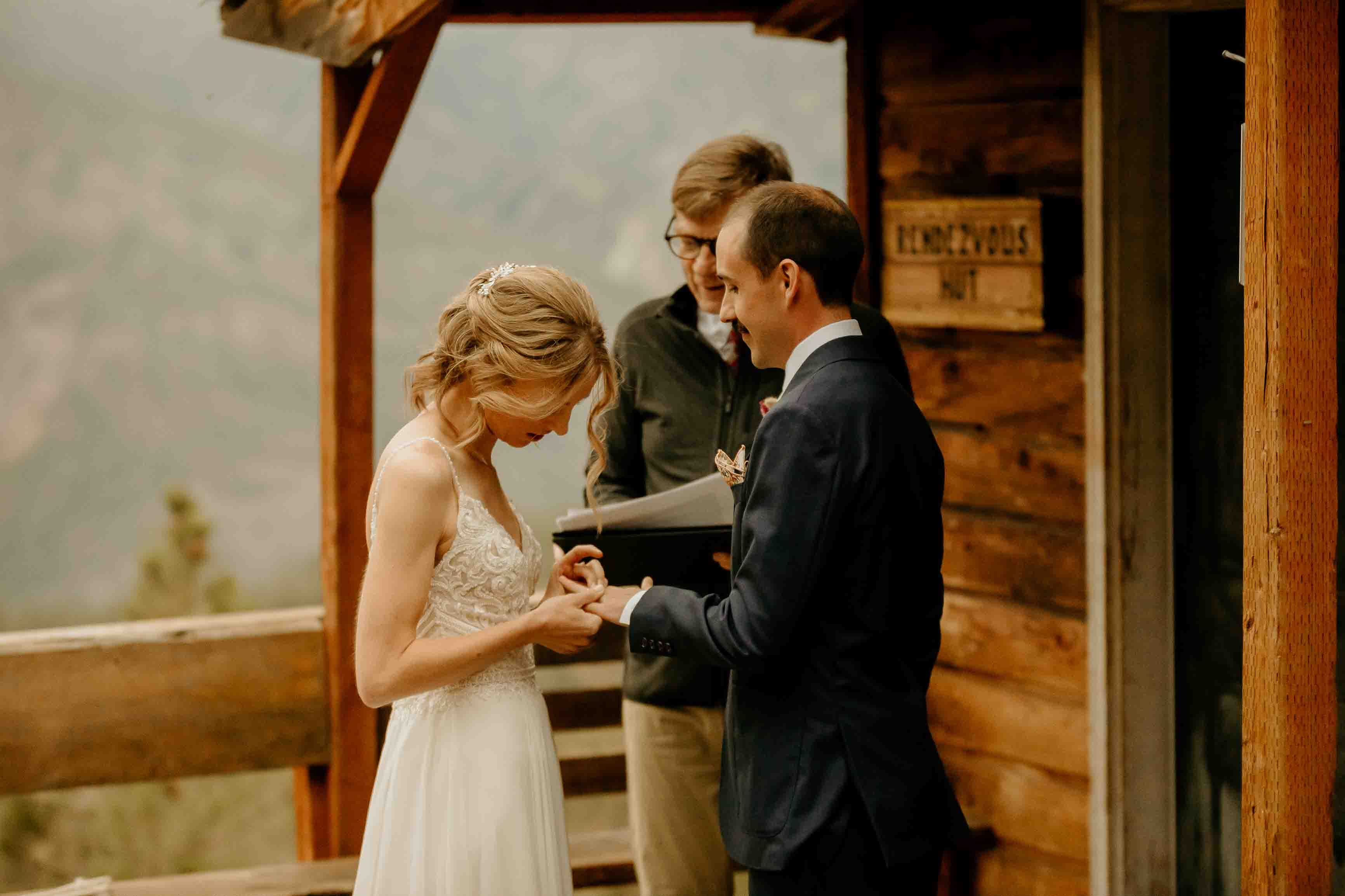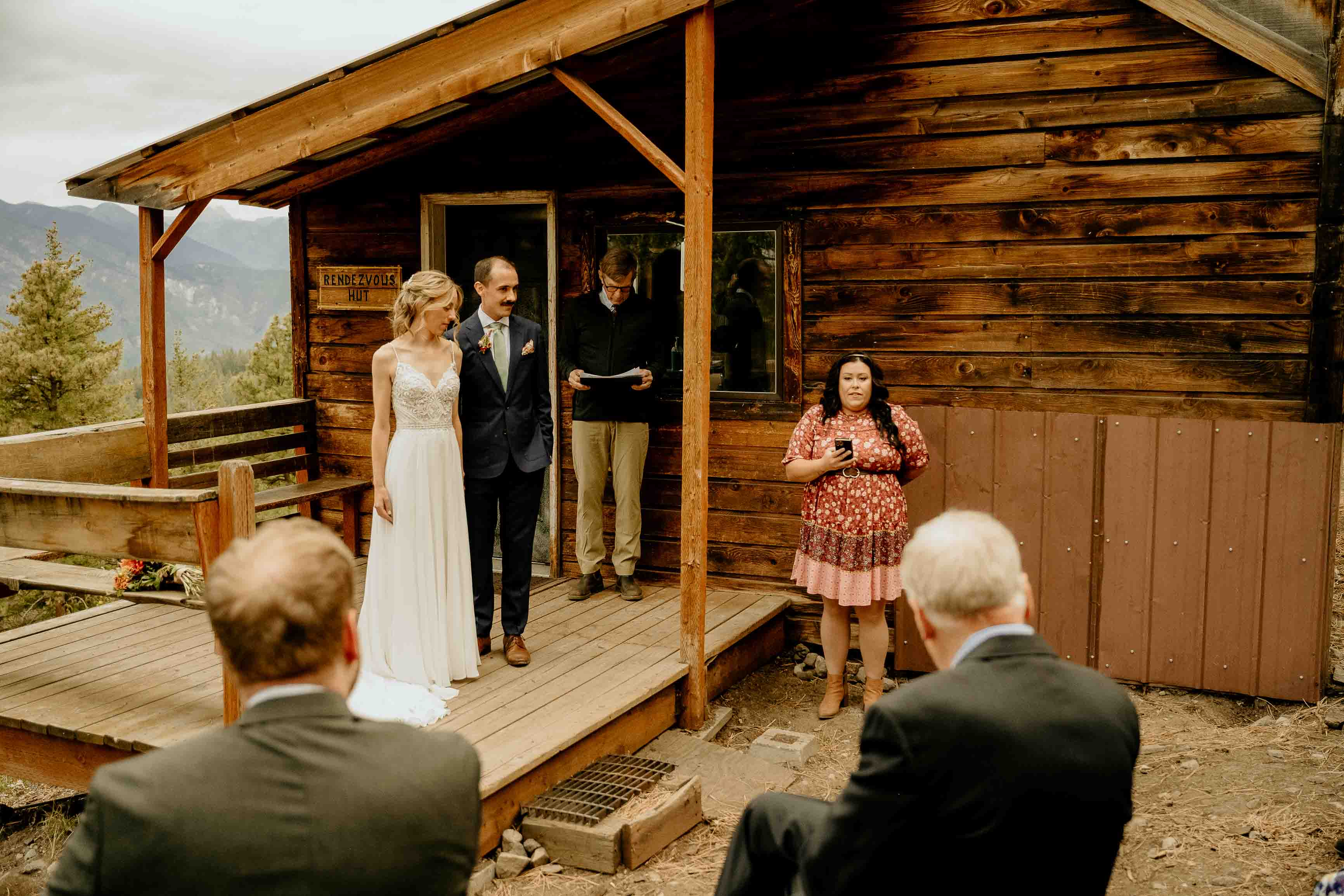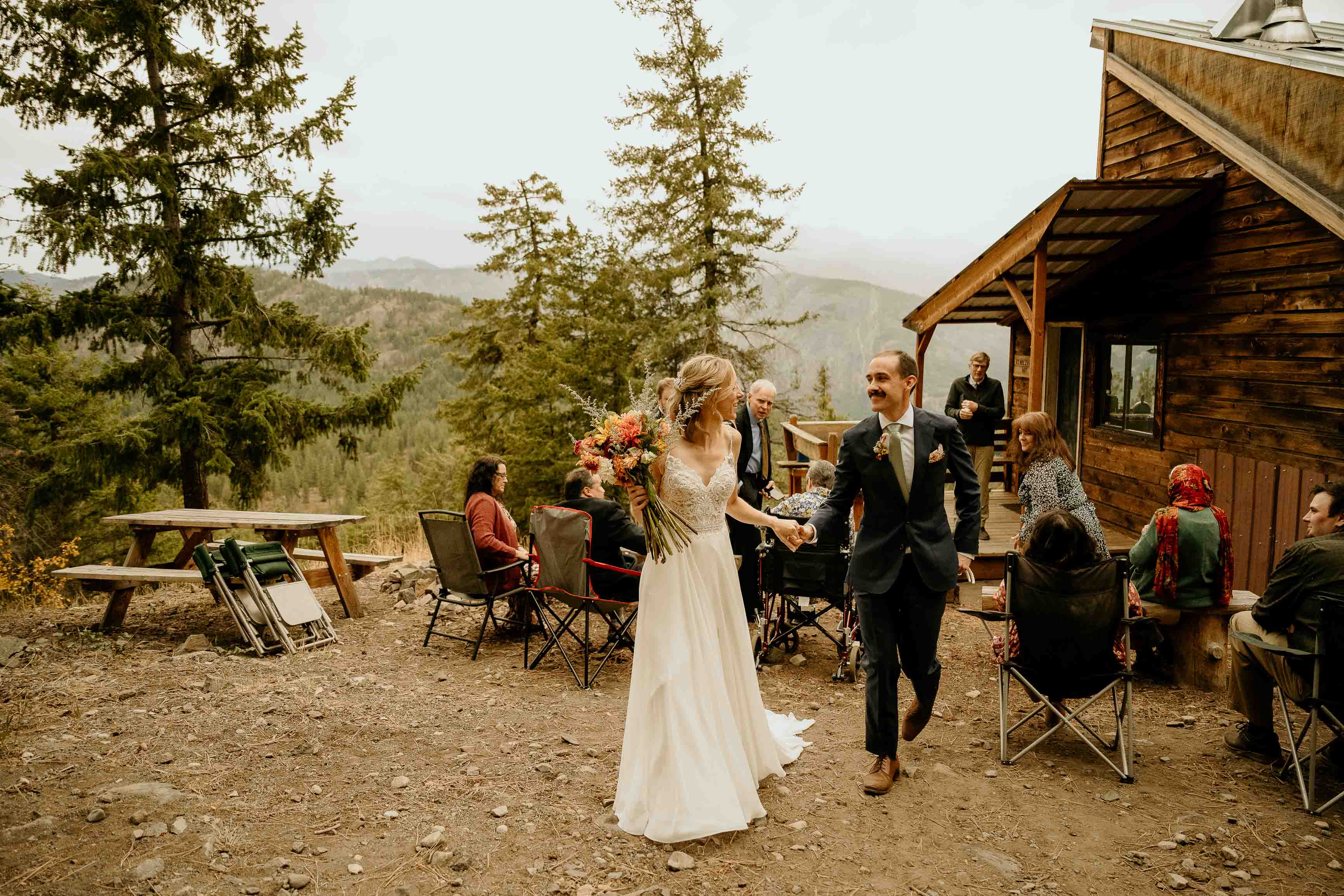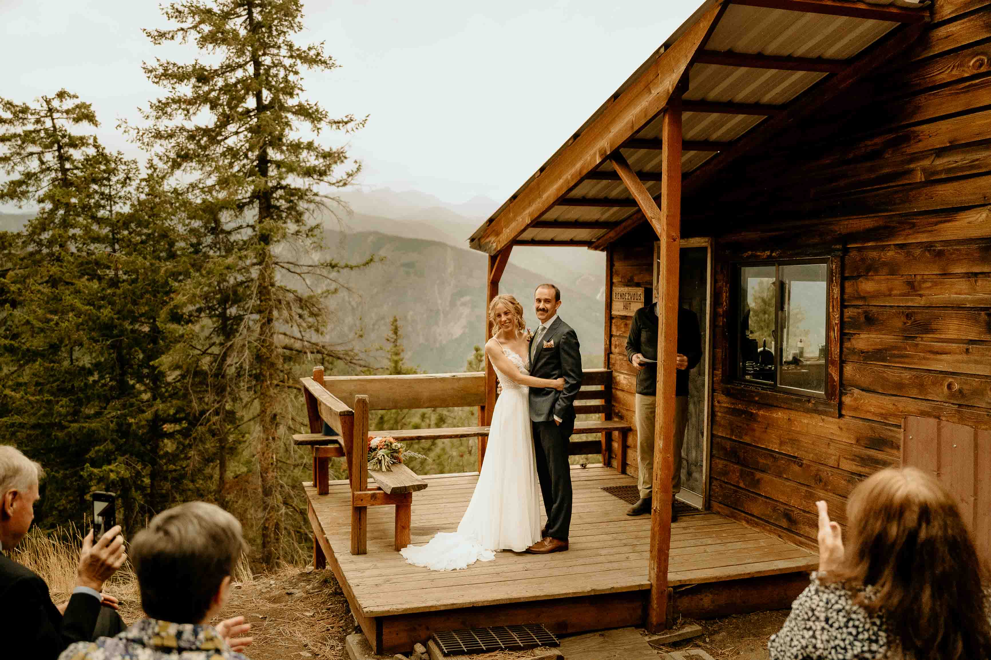 Their ceremony took place at the top of Rendezvous Hut Trail, one of the most scenic locations near Winthrop in the North Cascades. Lizzy and Josh exchanged vows with a small group of their closest family and friends present, keeping the focus on connection and the significance of the moment rather than a large production.