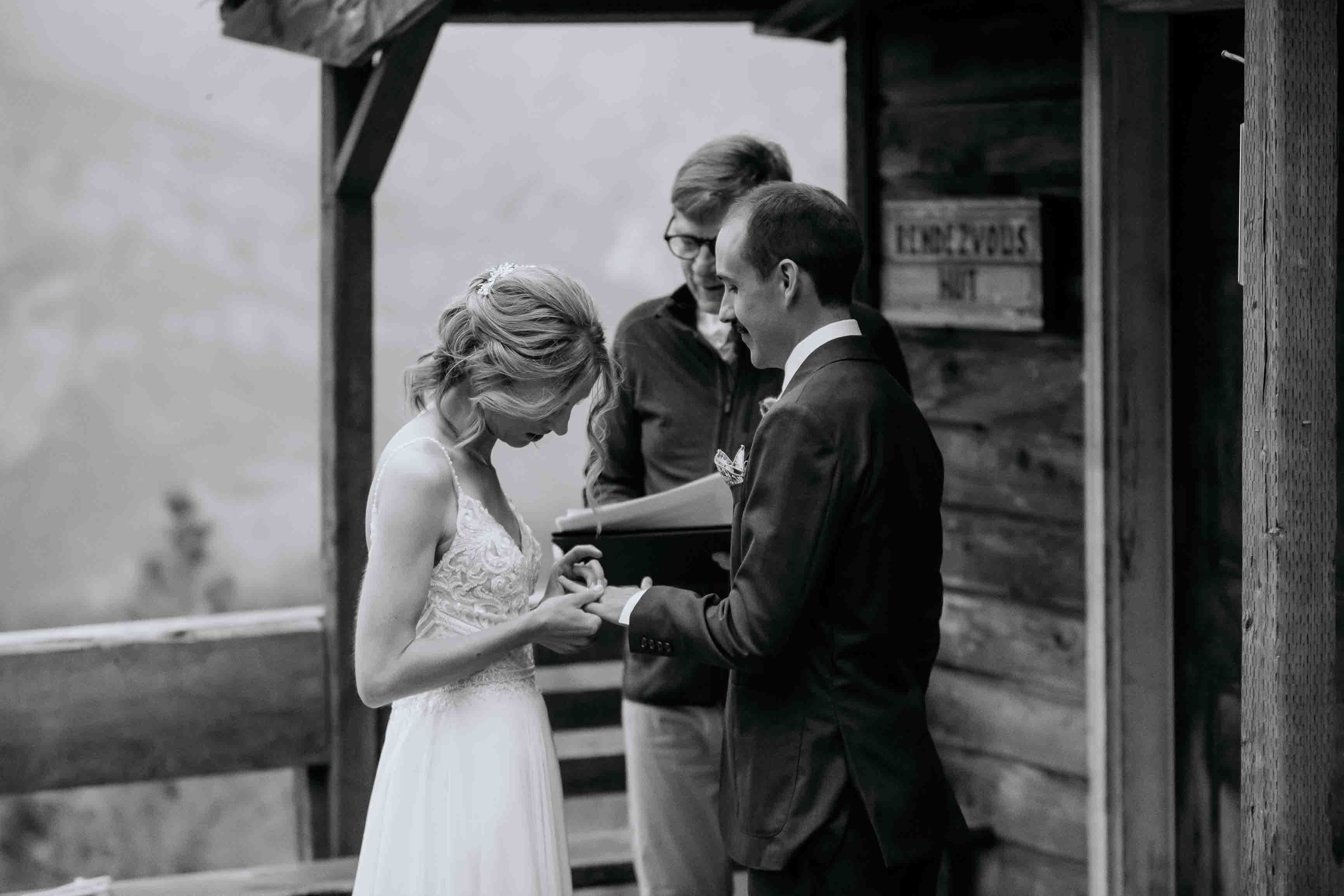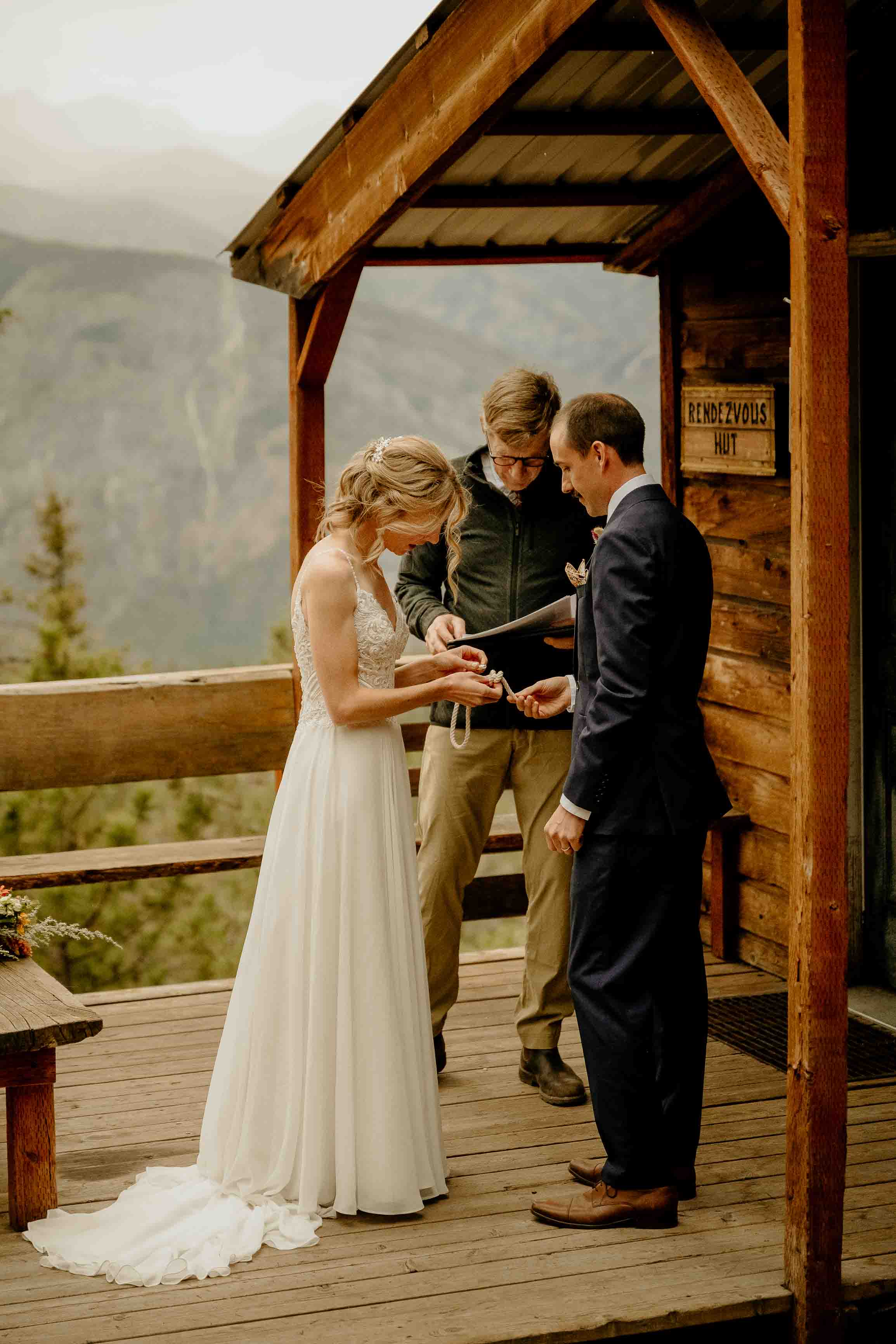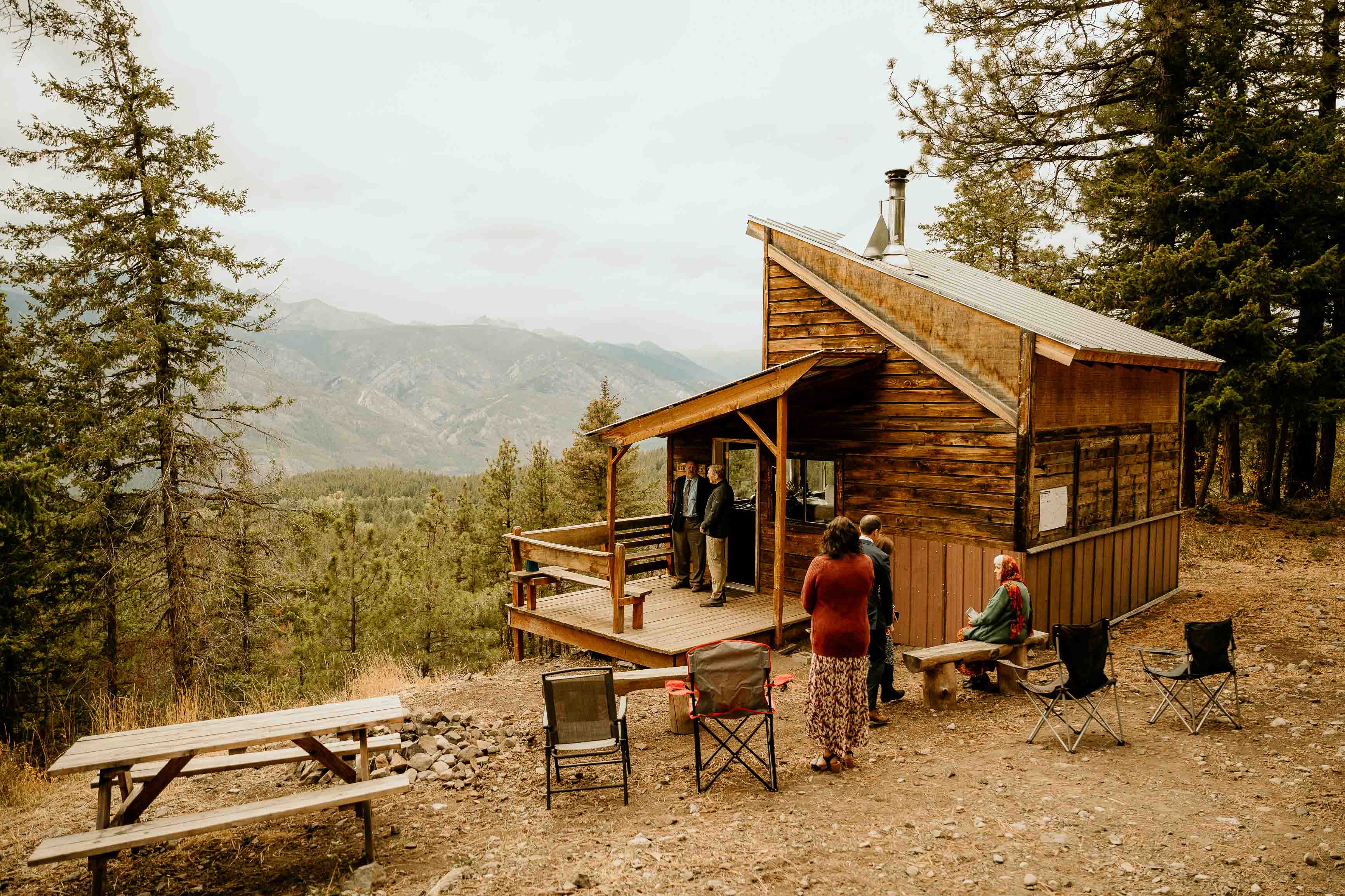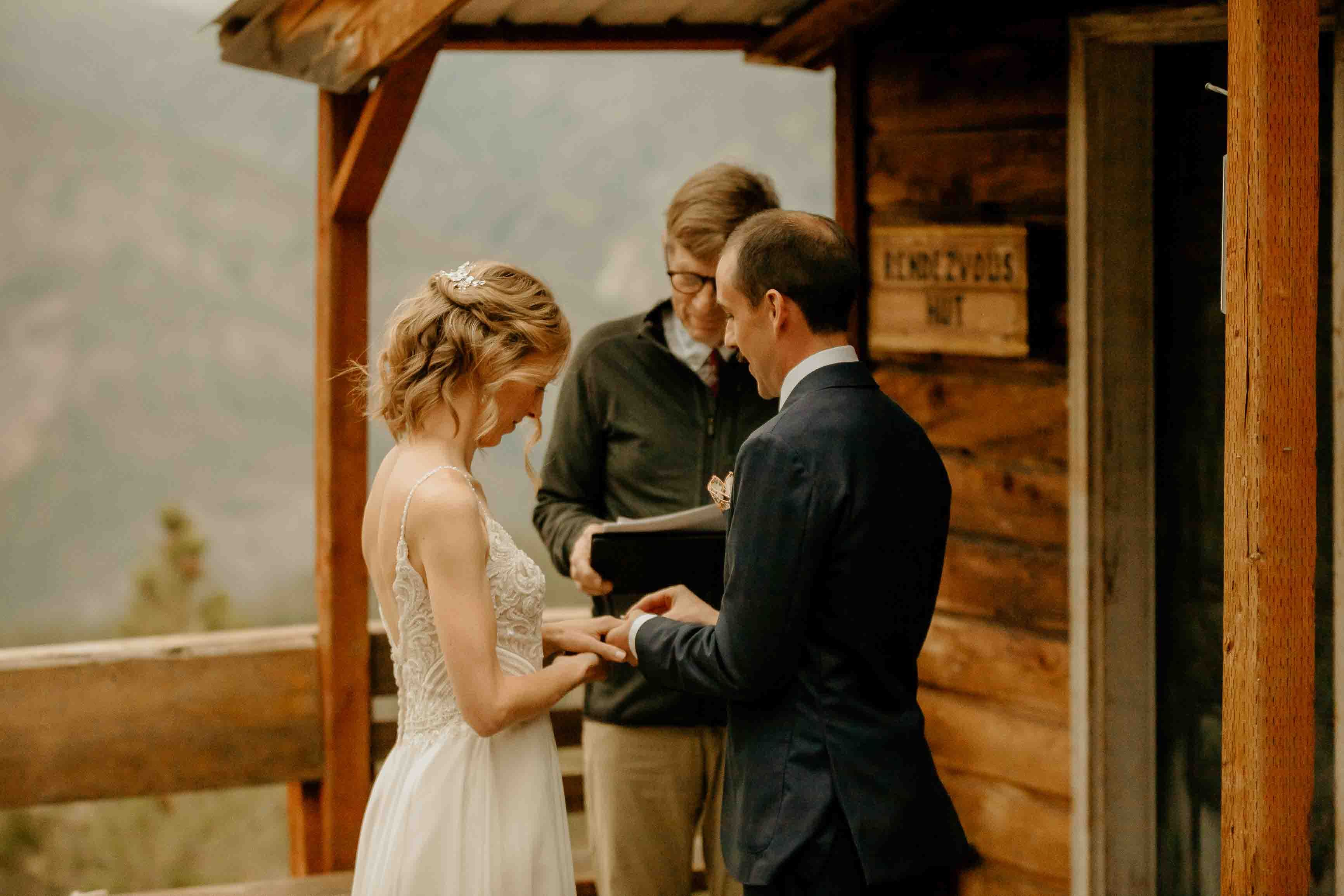 Their ceremony took place at the top of Rendezvous Hut Trail, one of the most scenic locations near Winthrop in the North Cascades. Lizzy and Josh exchanged vows with a small group of their closest family and friends present, keeping the focus on connection and the significance of the moment rather than a large production.